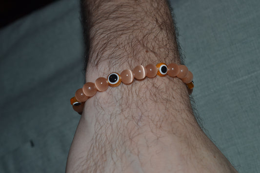 Light Orange Cat’s Eye & Evil Eye Bracelet – Soft Power & Spiritual Protection