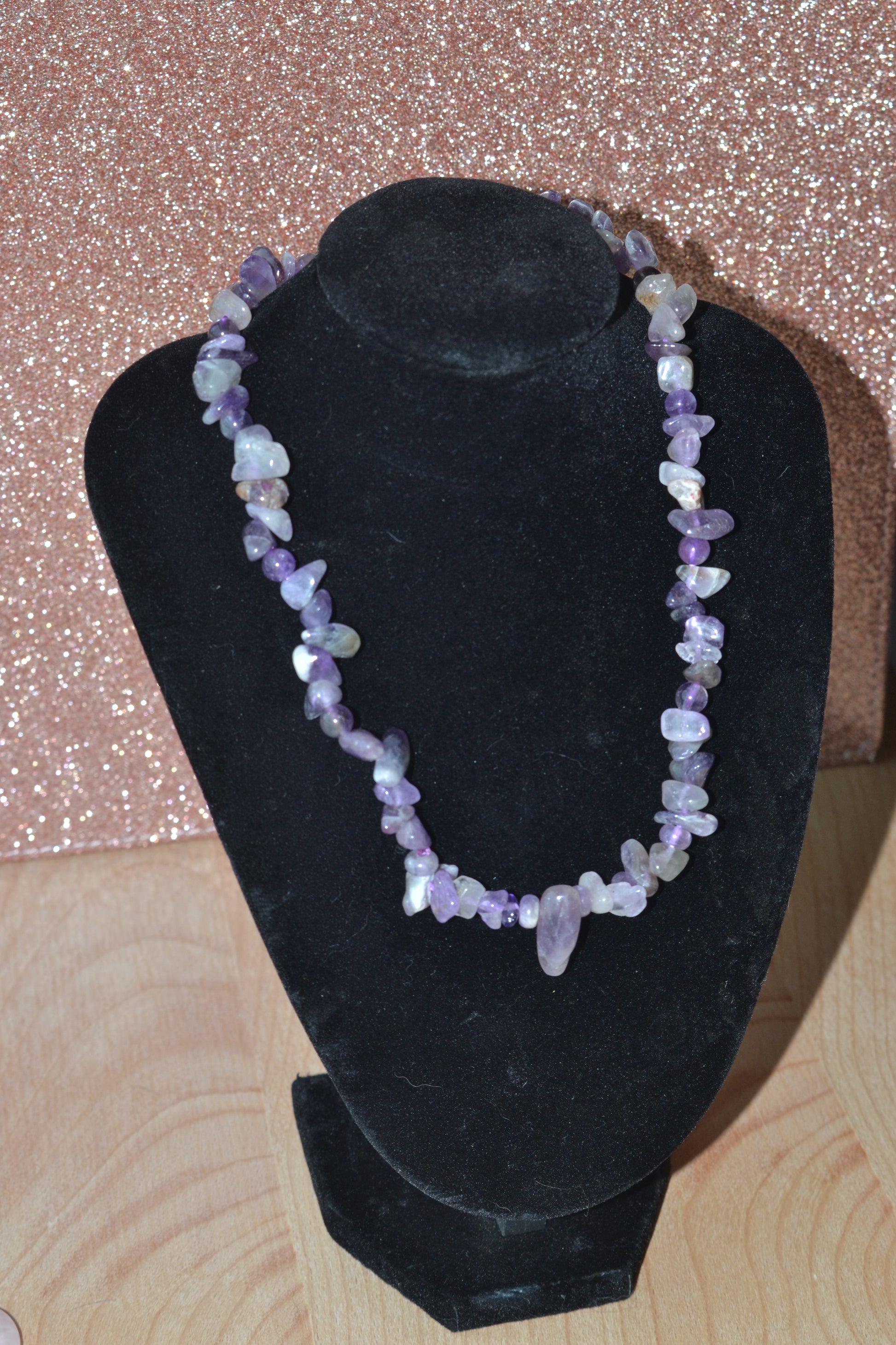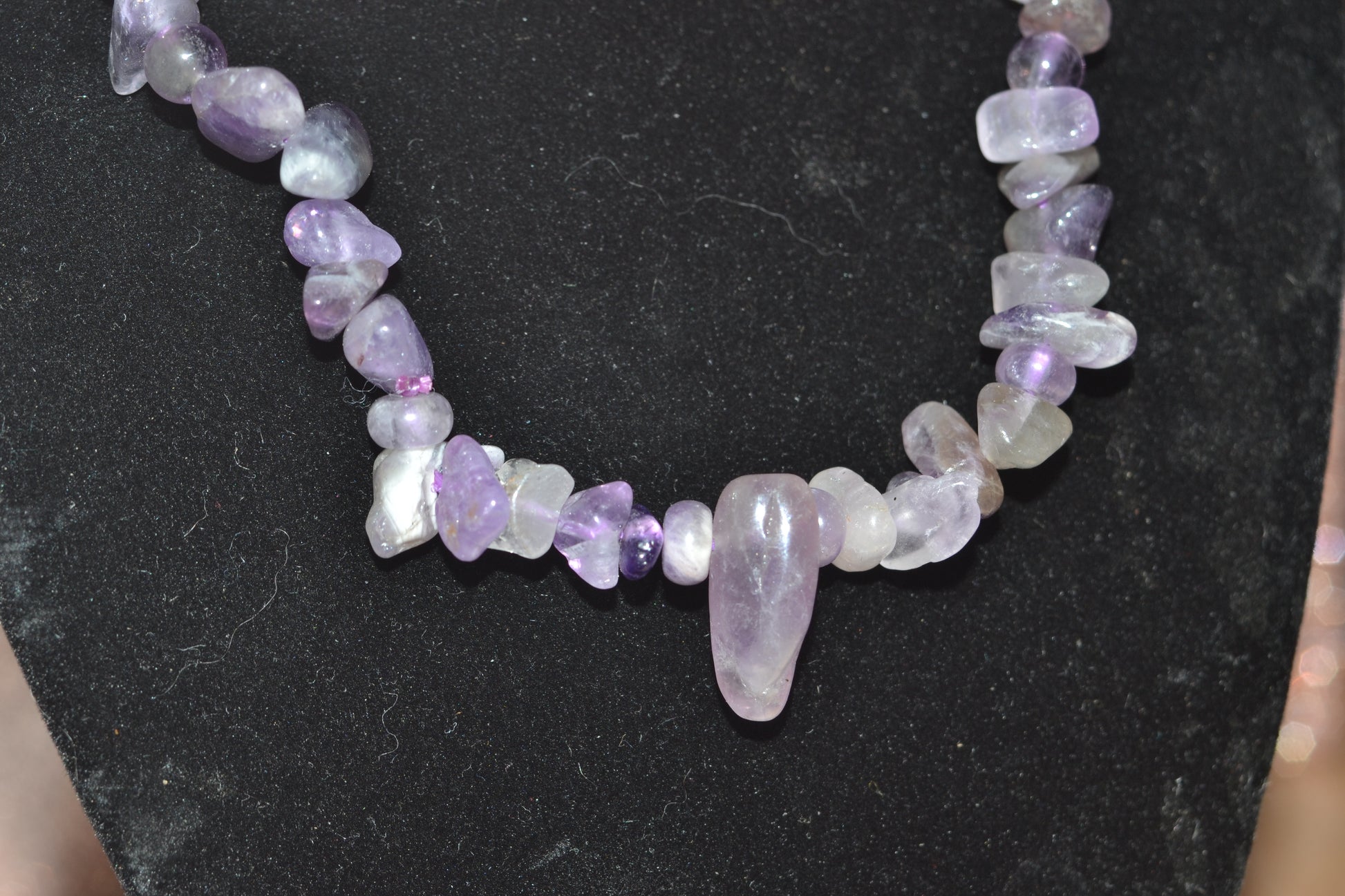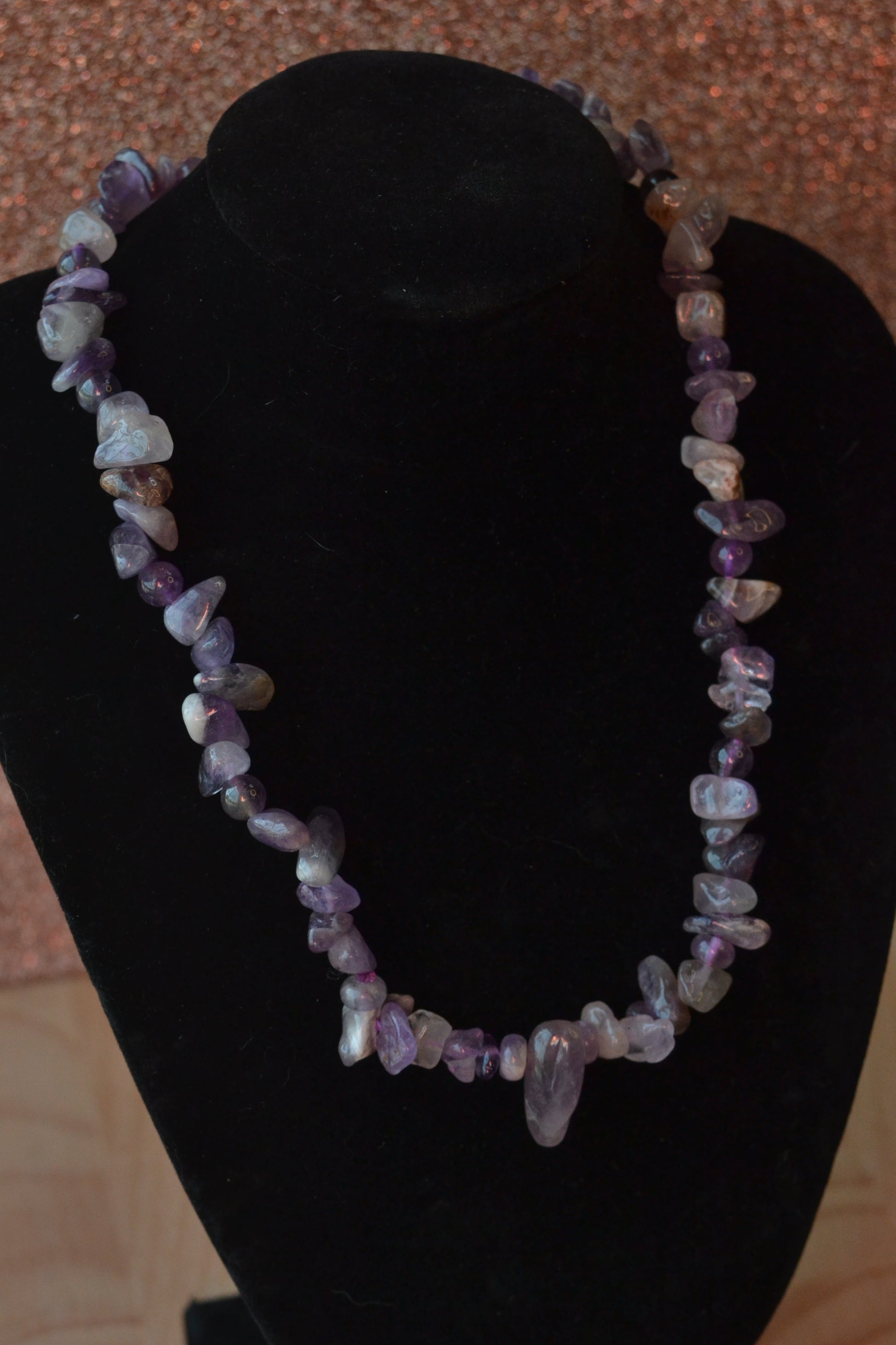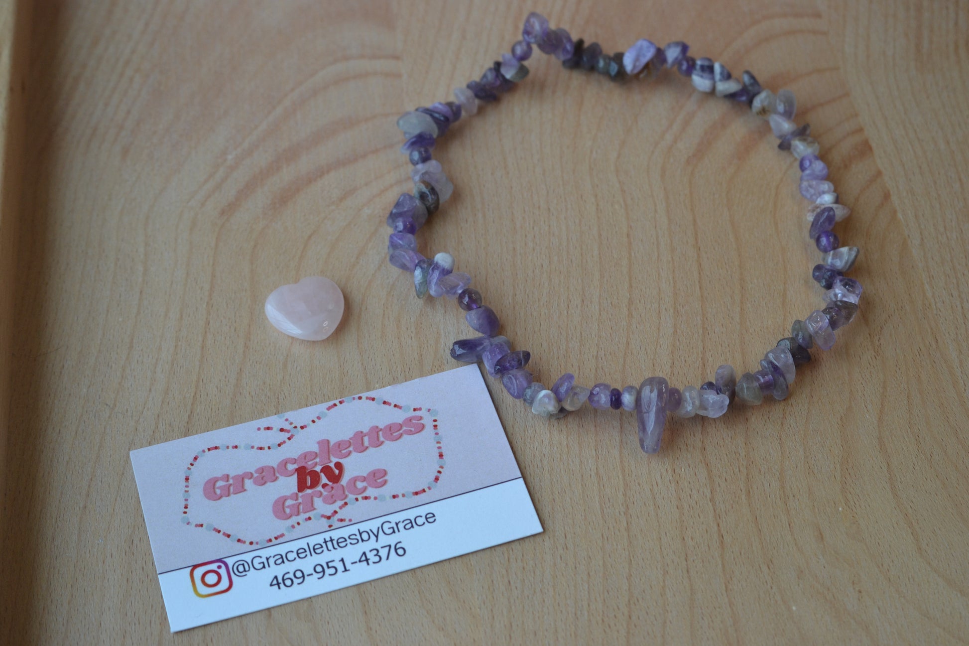 Step into your power with our Raw Radiance choker, handcrafted from bold, natural amethyst chip beads and anchored by a striking 1-inch center crystal. This 15-inch piece sits high on the collarbonesโmaking it perfect for layering or standing alone as a statement of spiritual strength and divine presence. Every angle reflects the raw beauty and intuitive magic of amethyst, encouraging calm, clarity, and deep connection to your higher self.