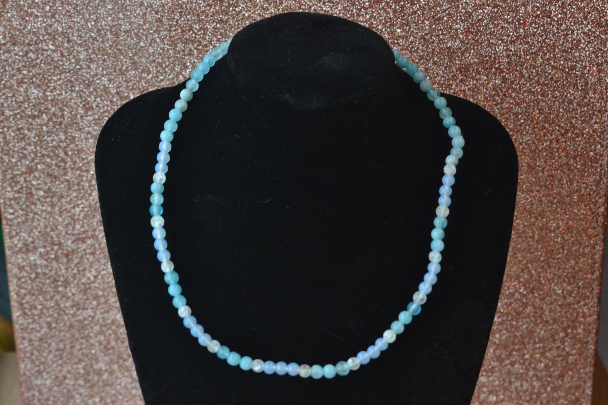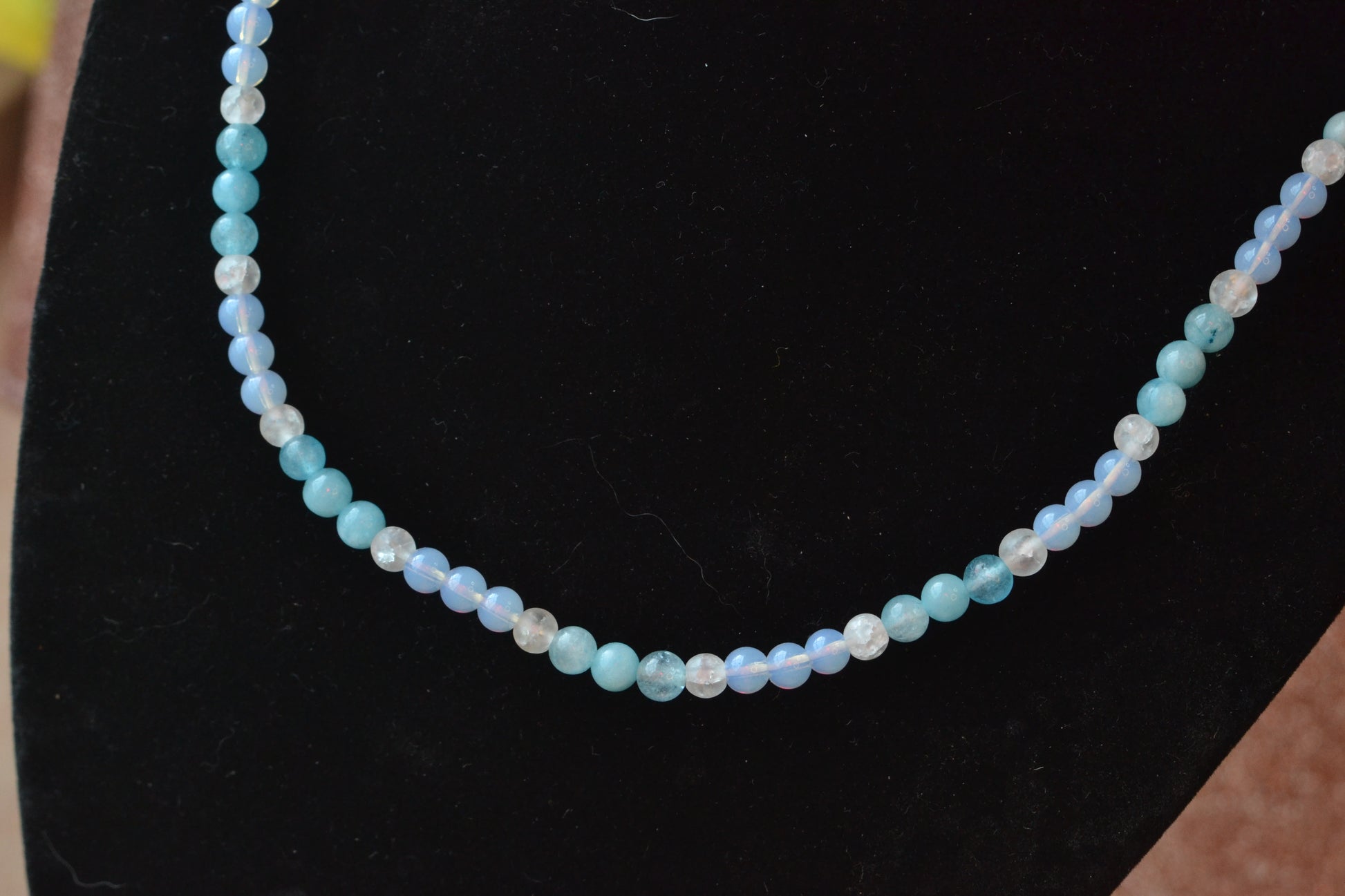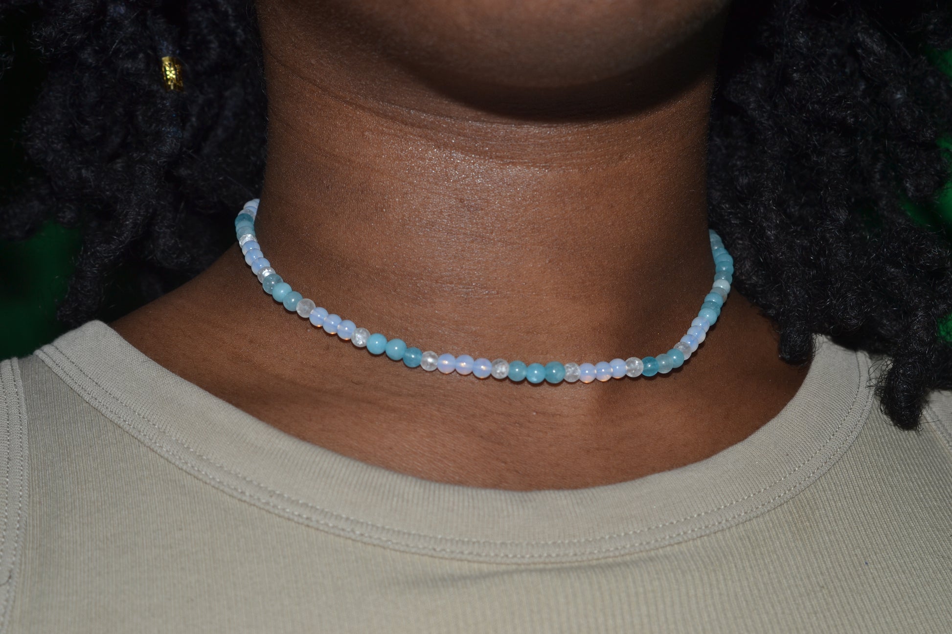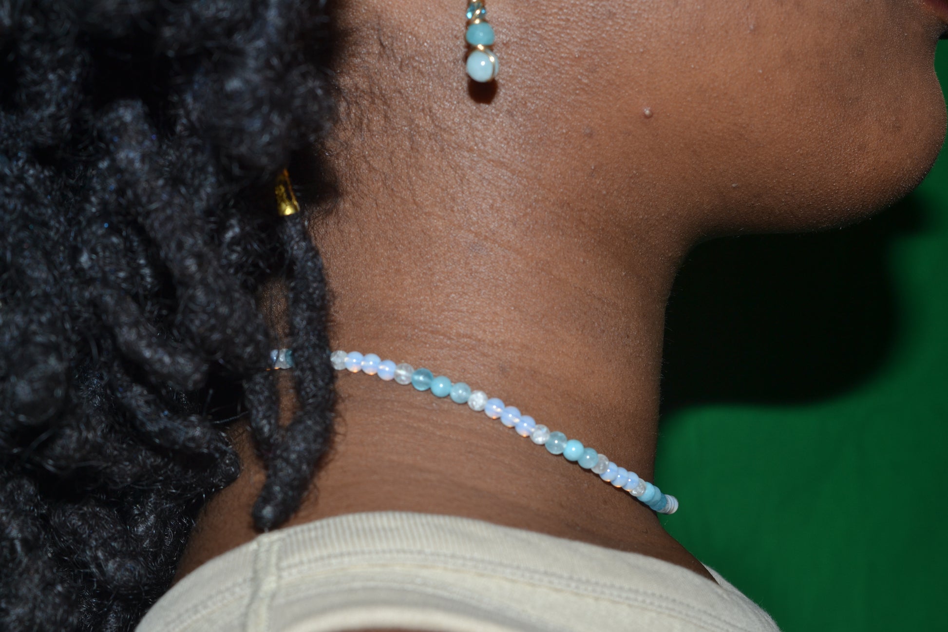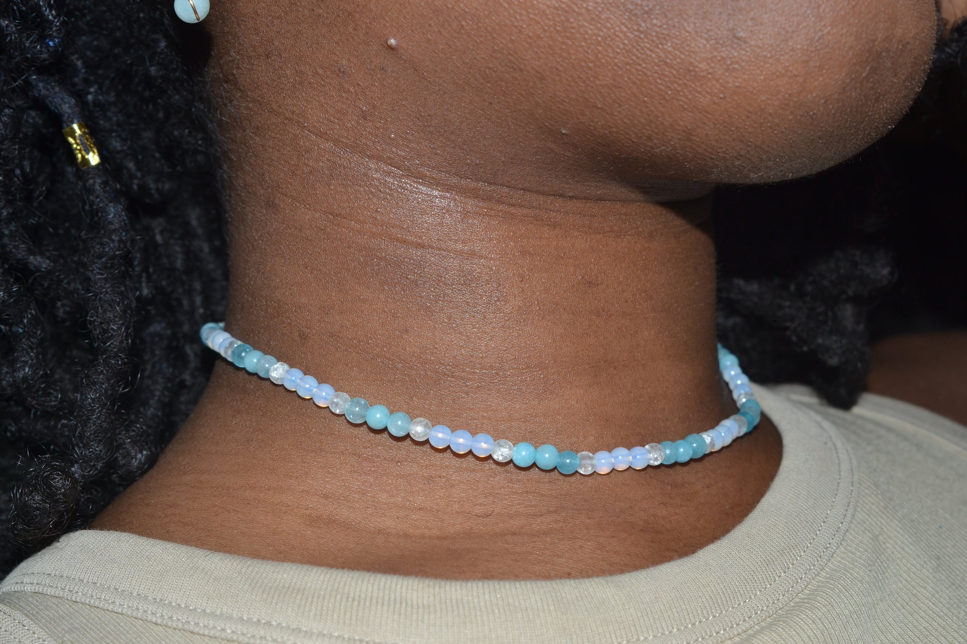Aquamarine, Quartz & Opalite Choker – Soothing Clarity & Flow (14”)