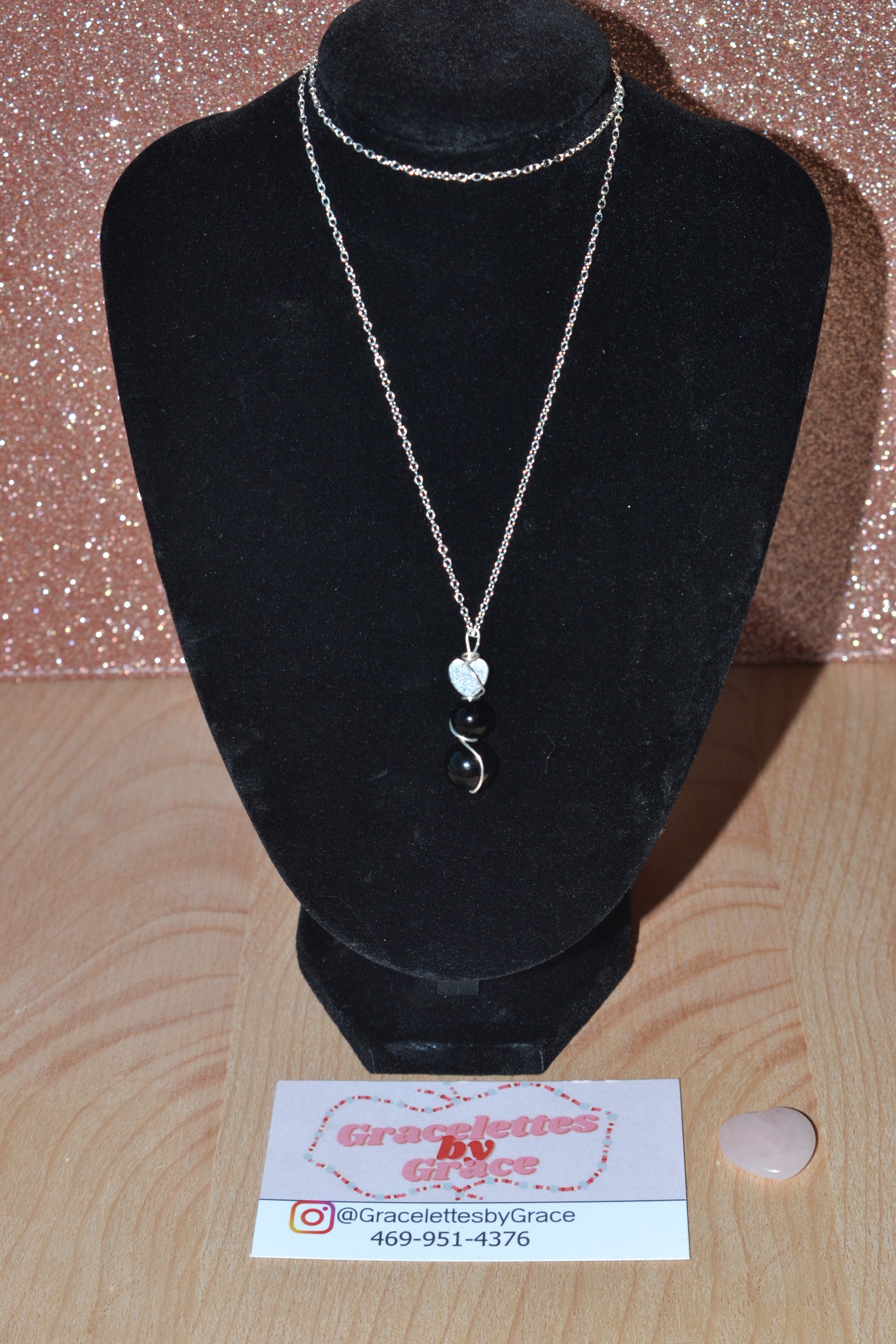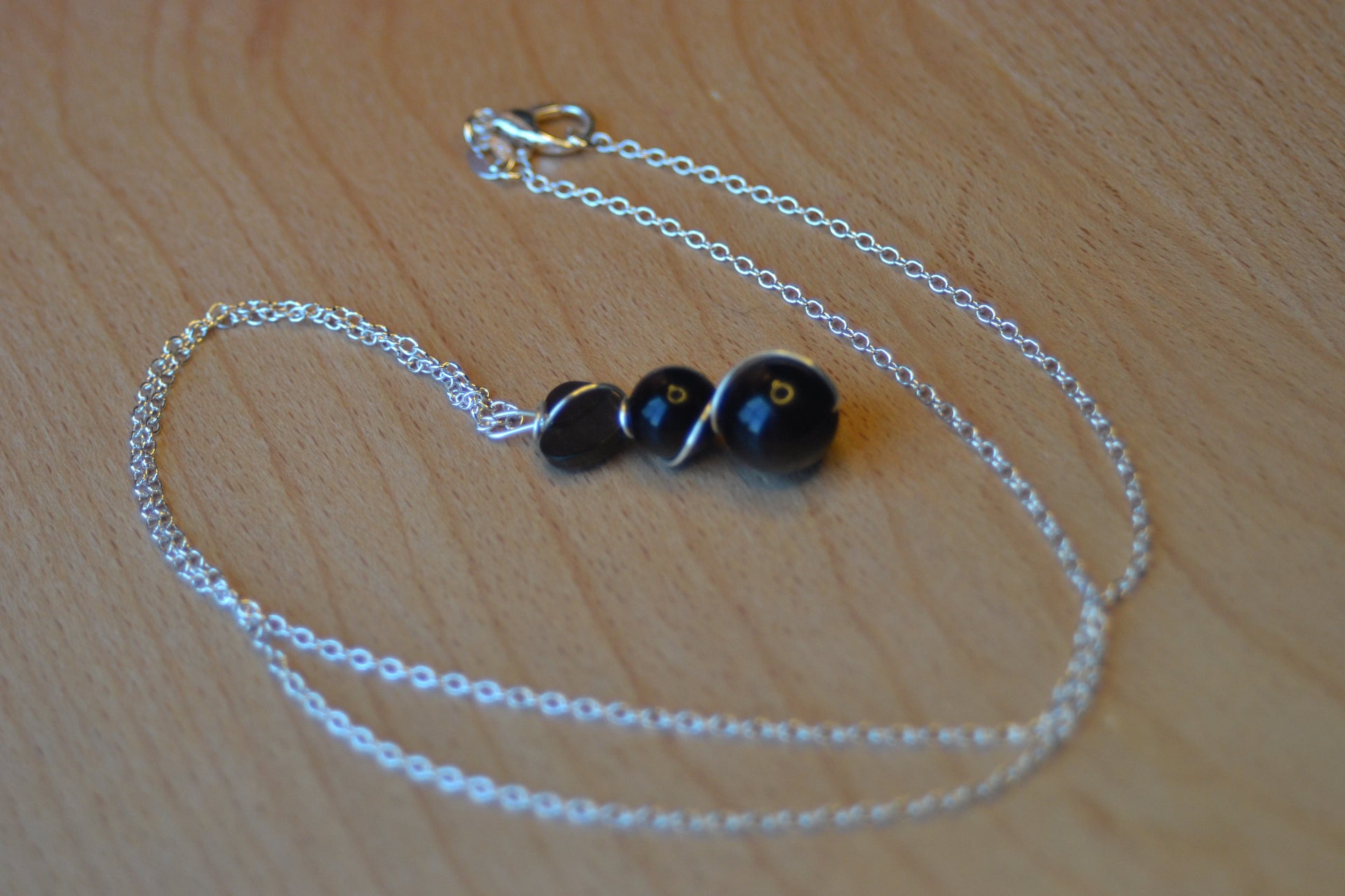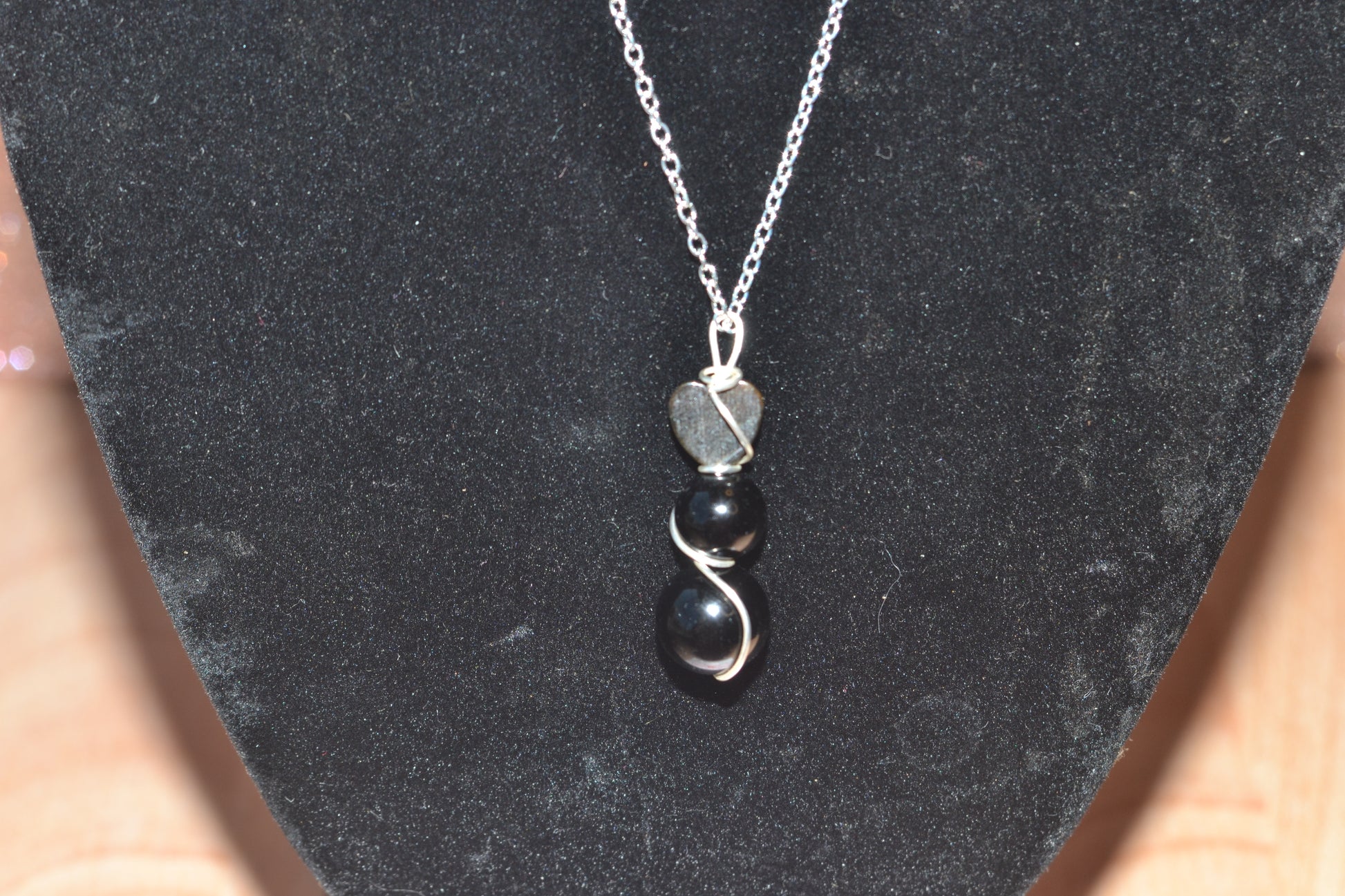 • 1.5" black onyx pendant – 3-tiered, double wire-wrapped in sterling silver wire