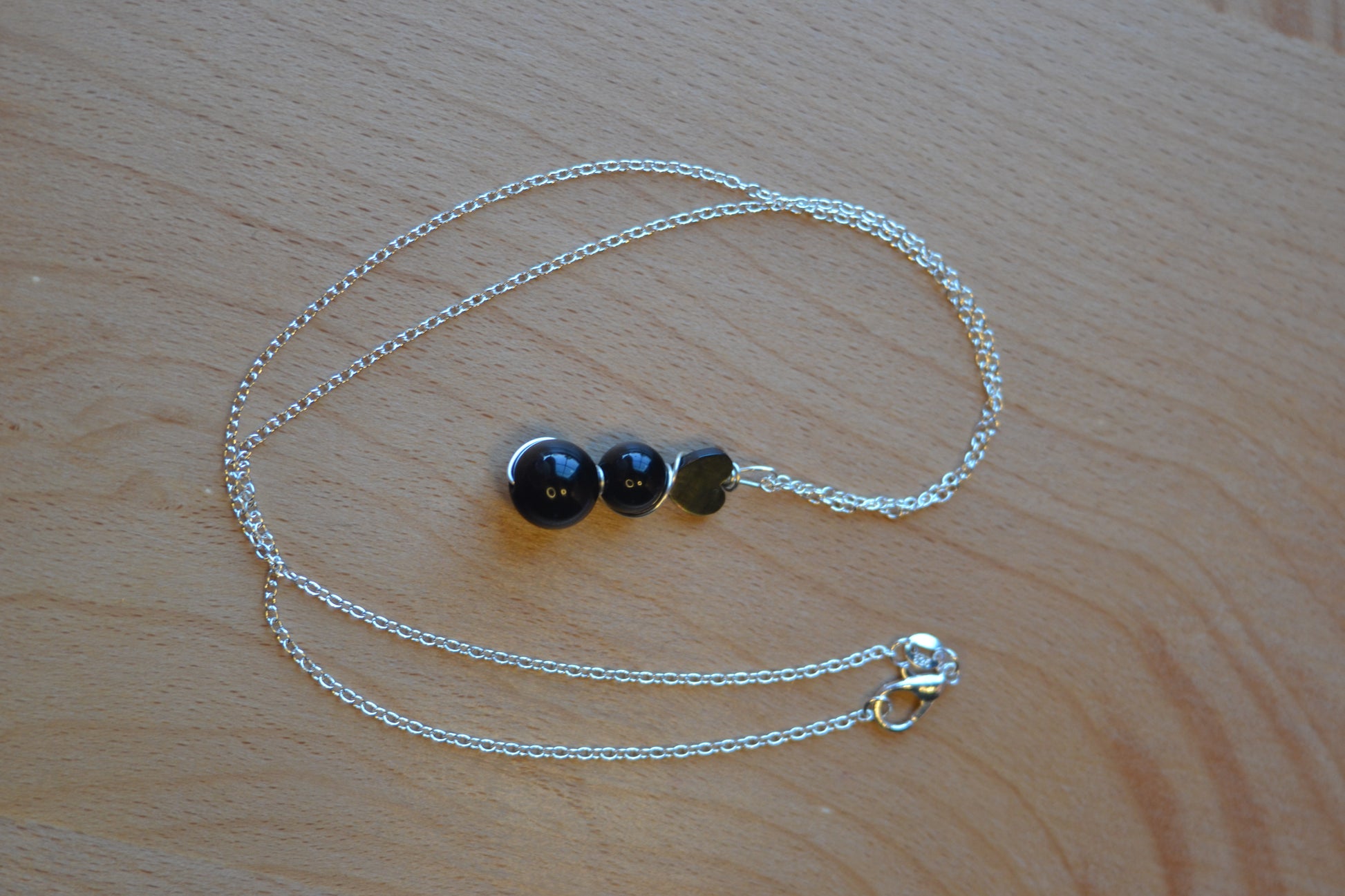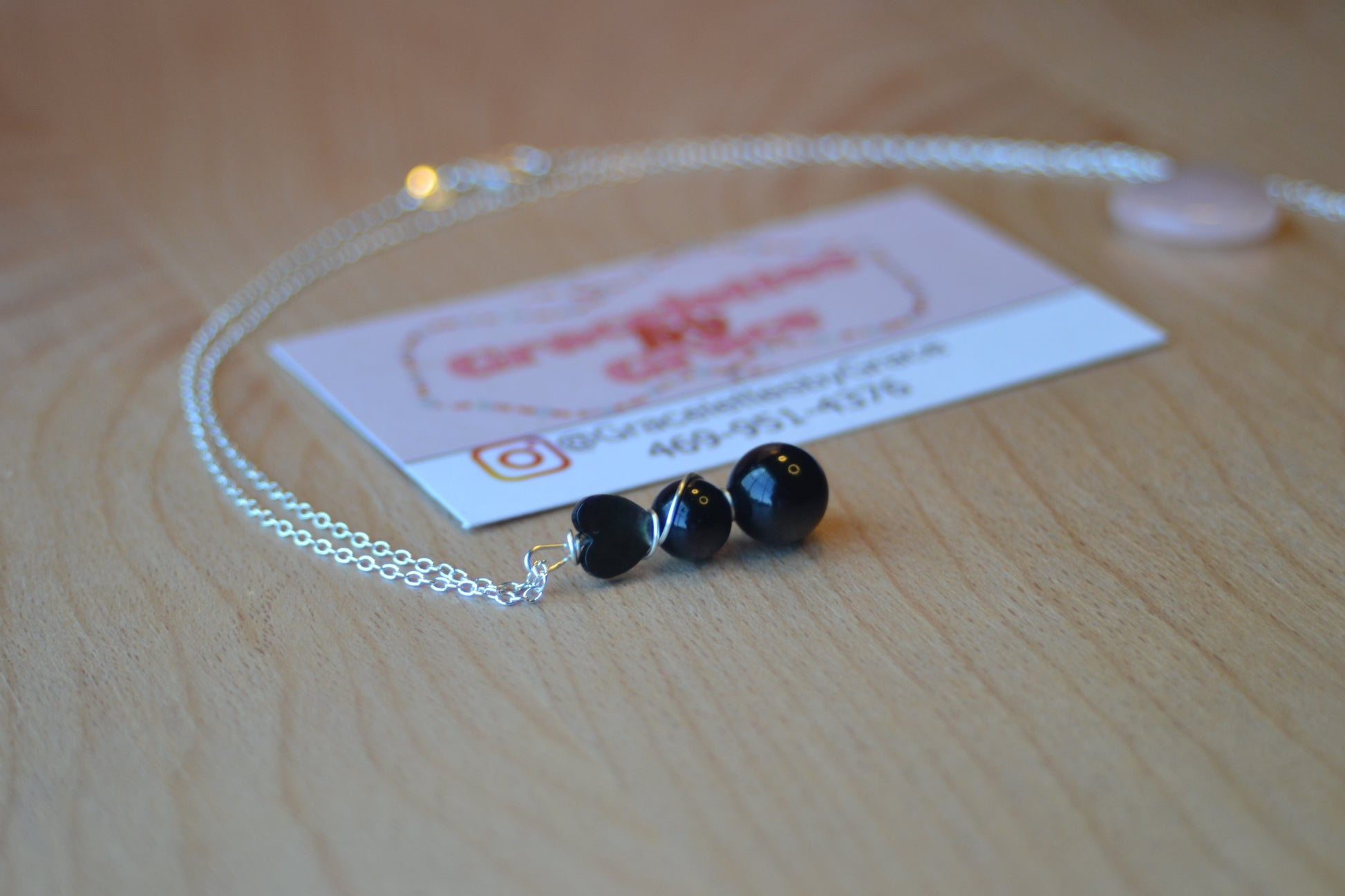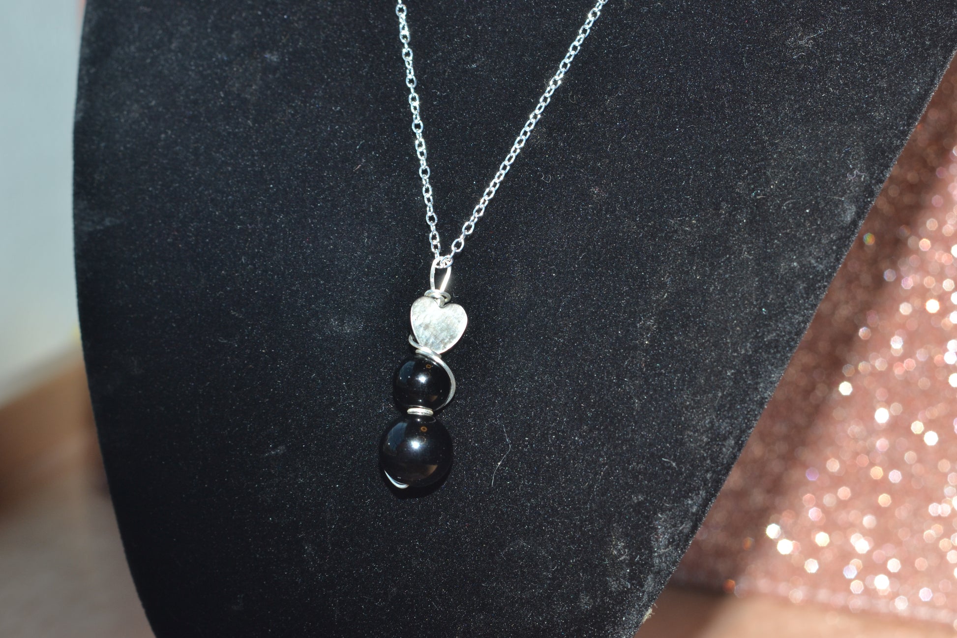 • 1.5" black onyx pendant – 3-tiered, double wire-wrapped in sterling silver wire