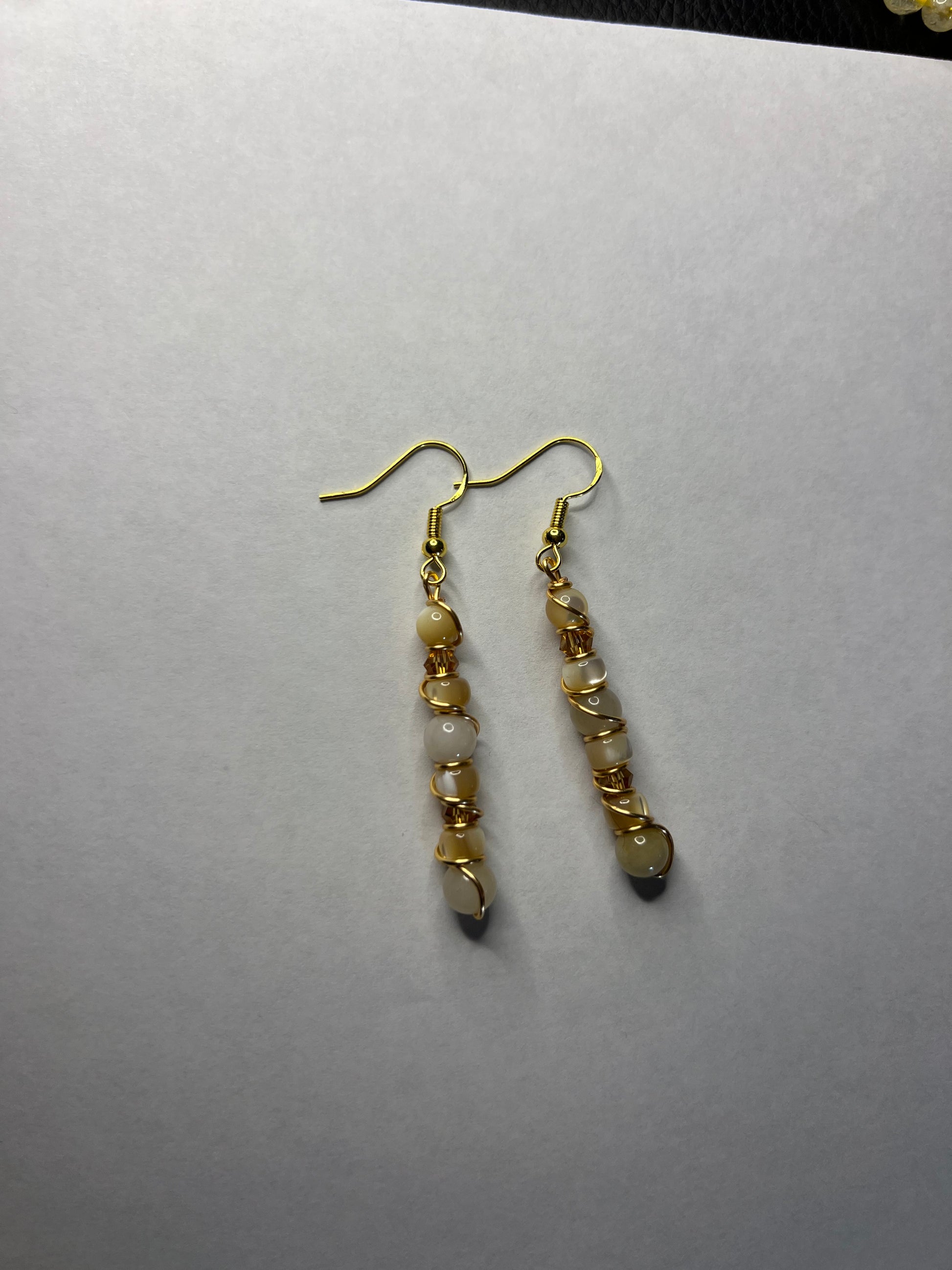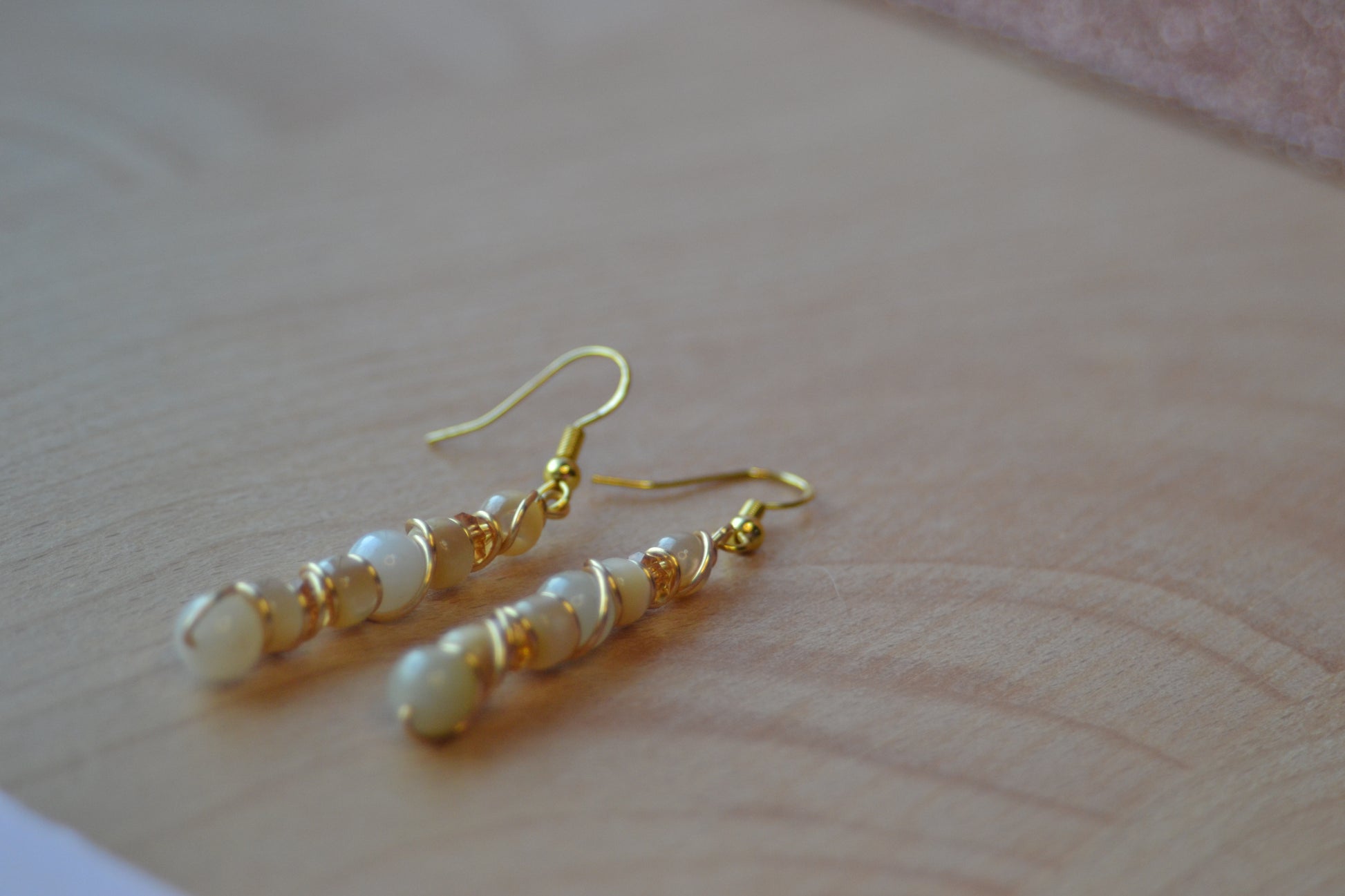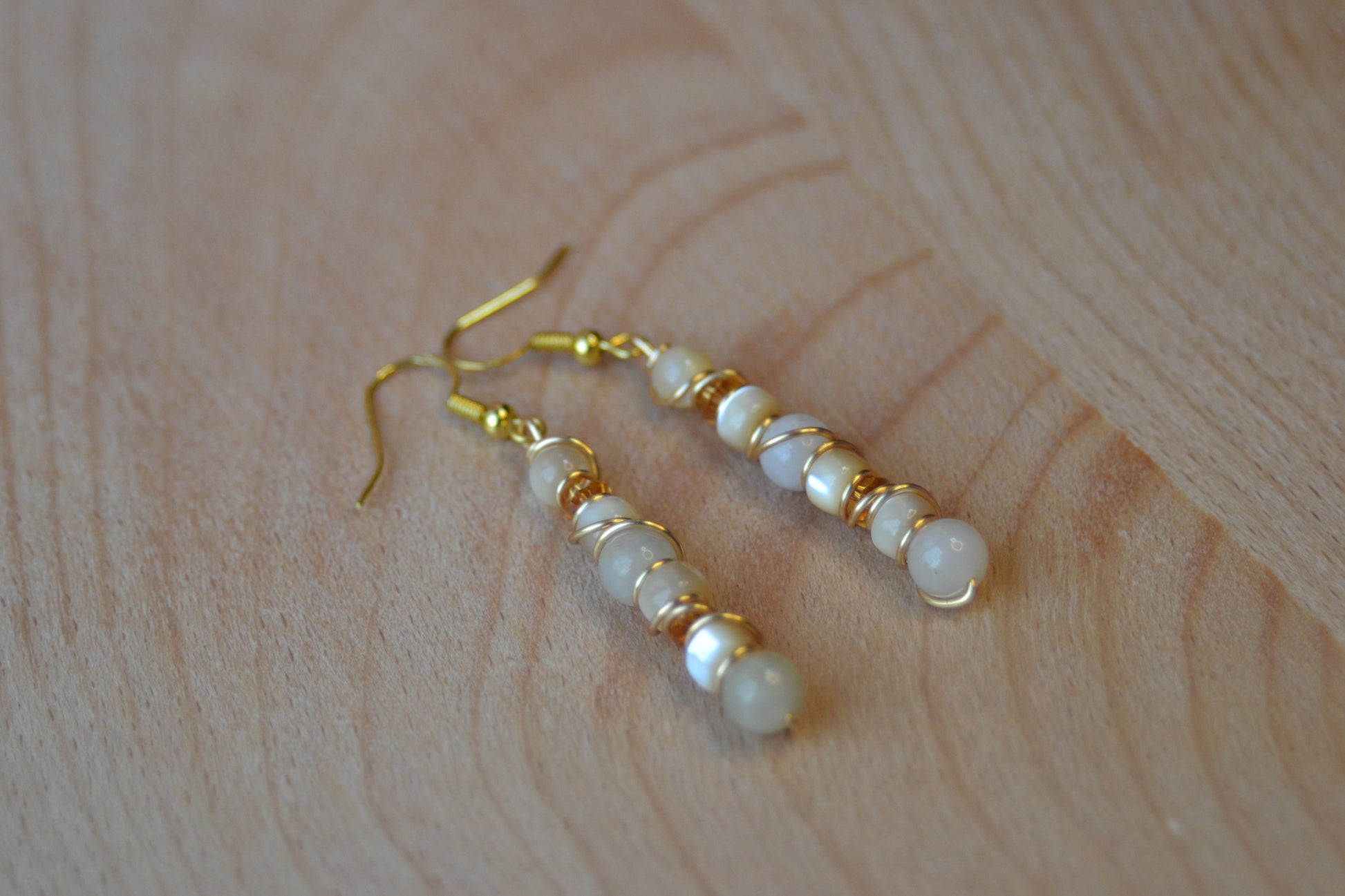 Earrings: Elegant 2-inch citrine drops accented with luminous mother of pearl, hung on hypoallergenic 925 sterling silver hooks