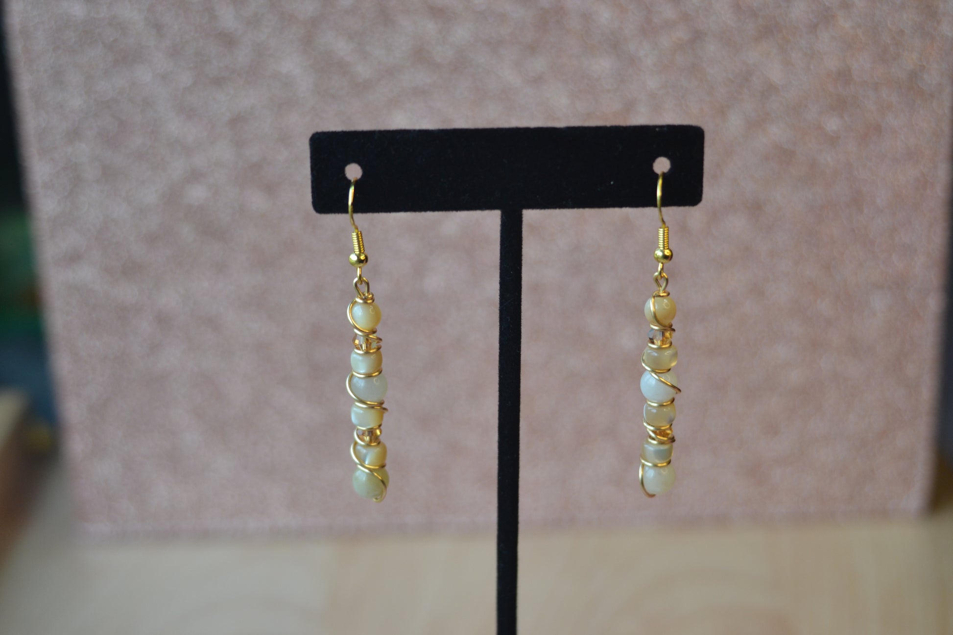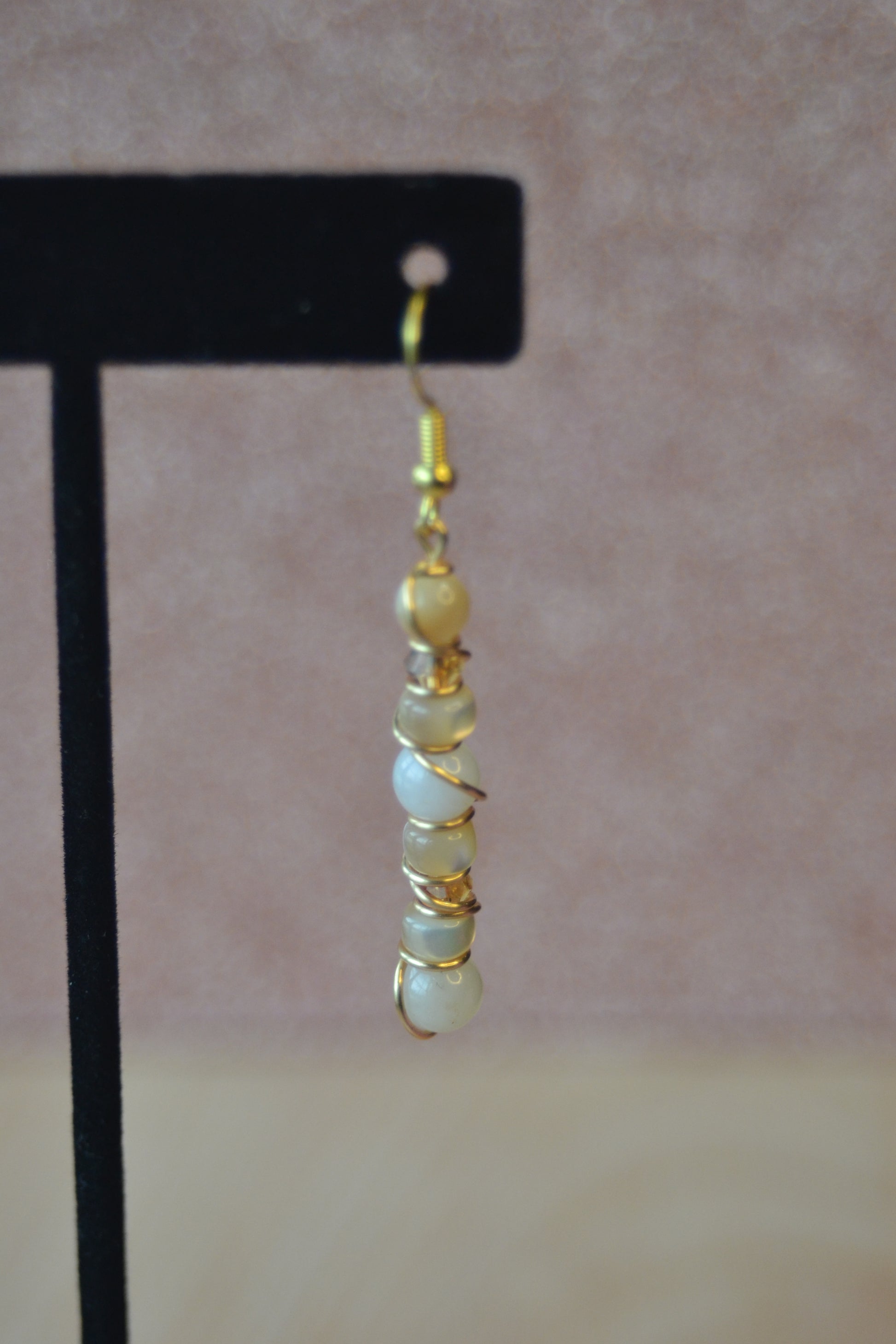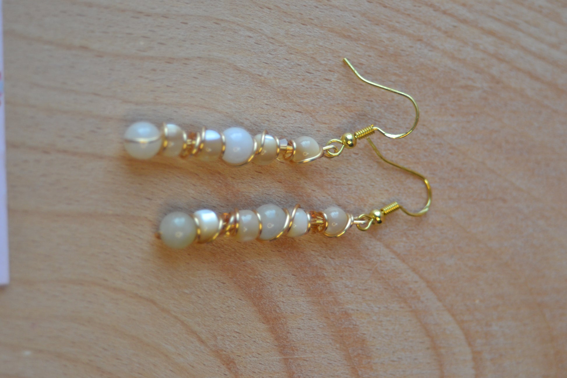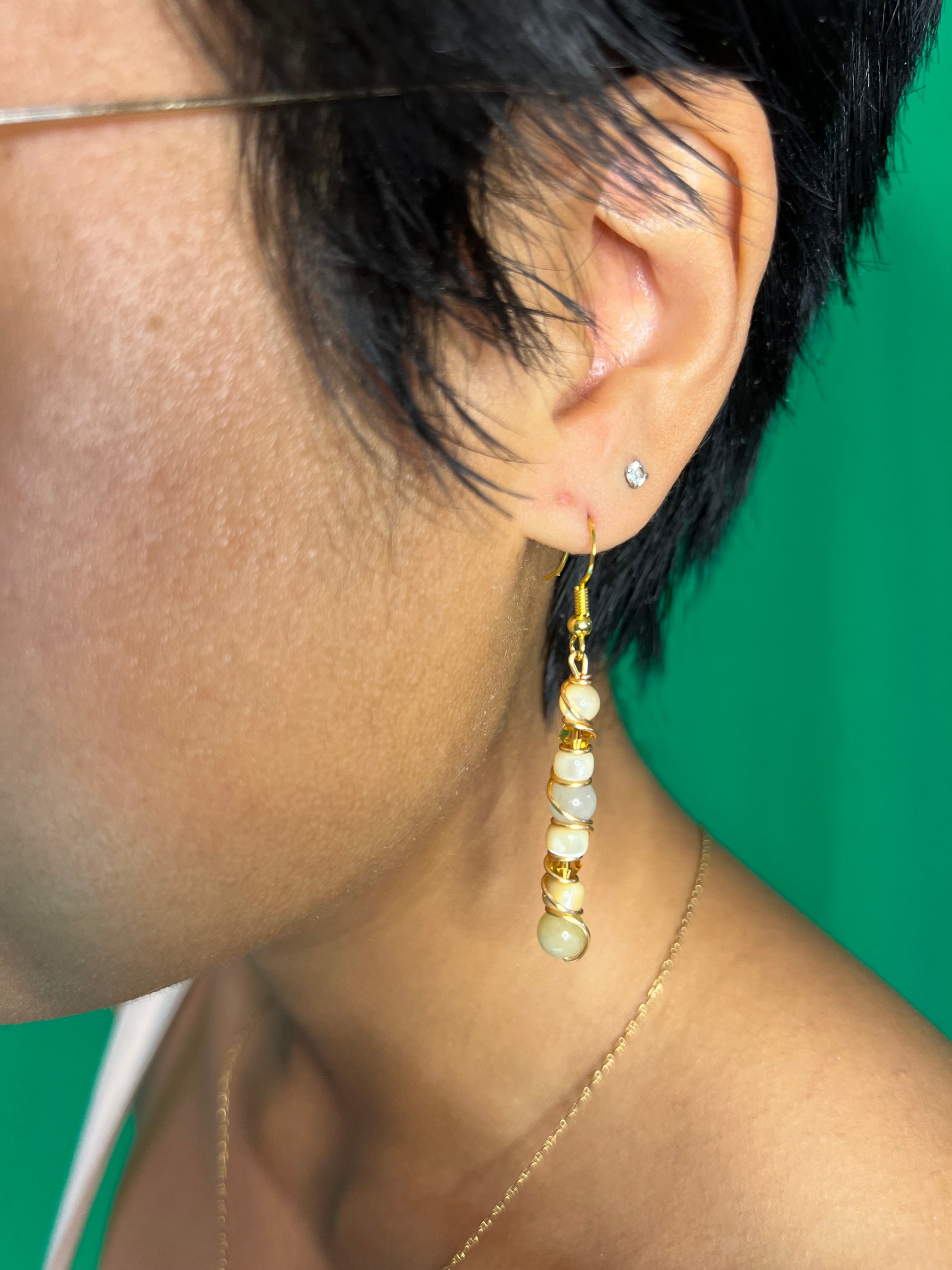 Earrings: Elegant 2-inch citrine drops accented with luminous mother of pearl, hung on hypoallergenic 925 sterling silver hooks