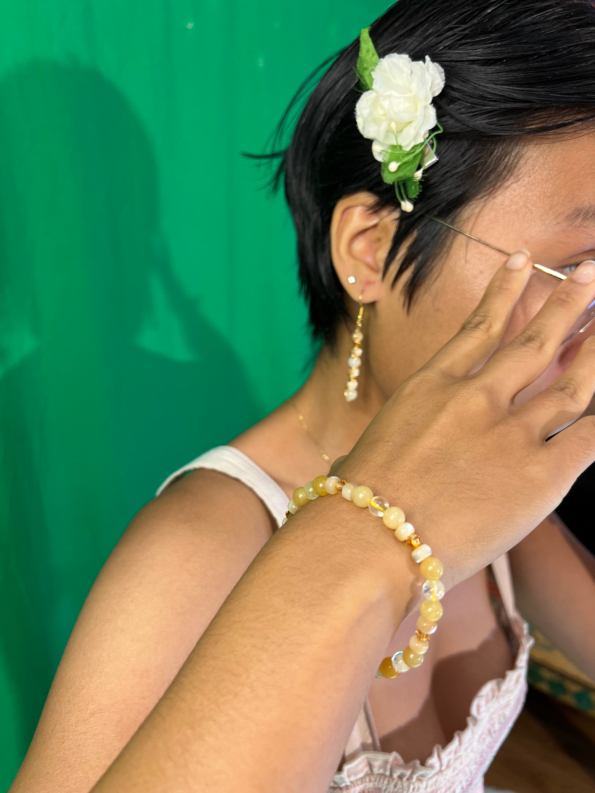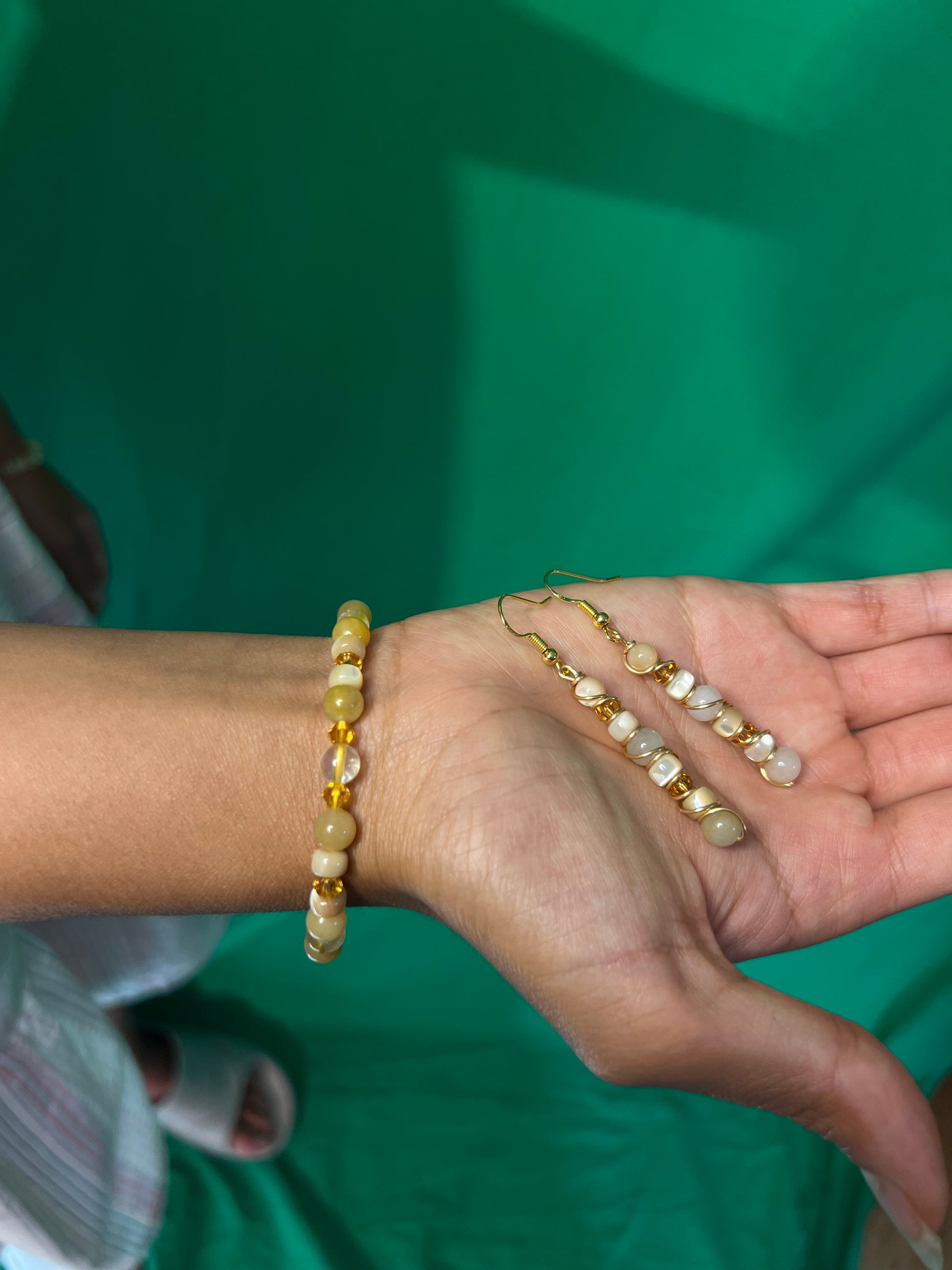 🌞 Citrine & Mother of Pearl Gracelettes Set – “Sunlit Serenity”