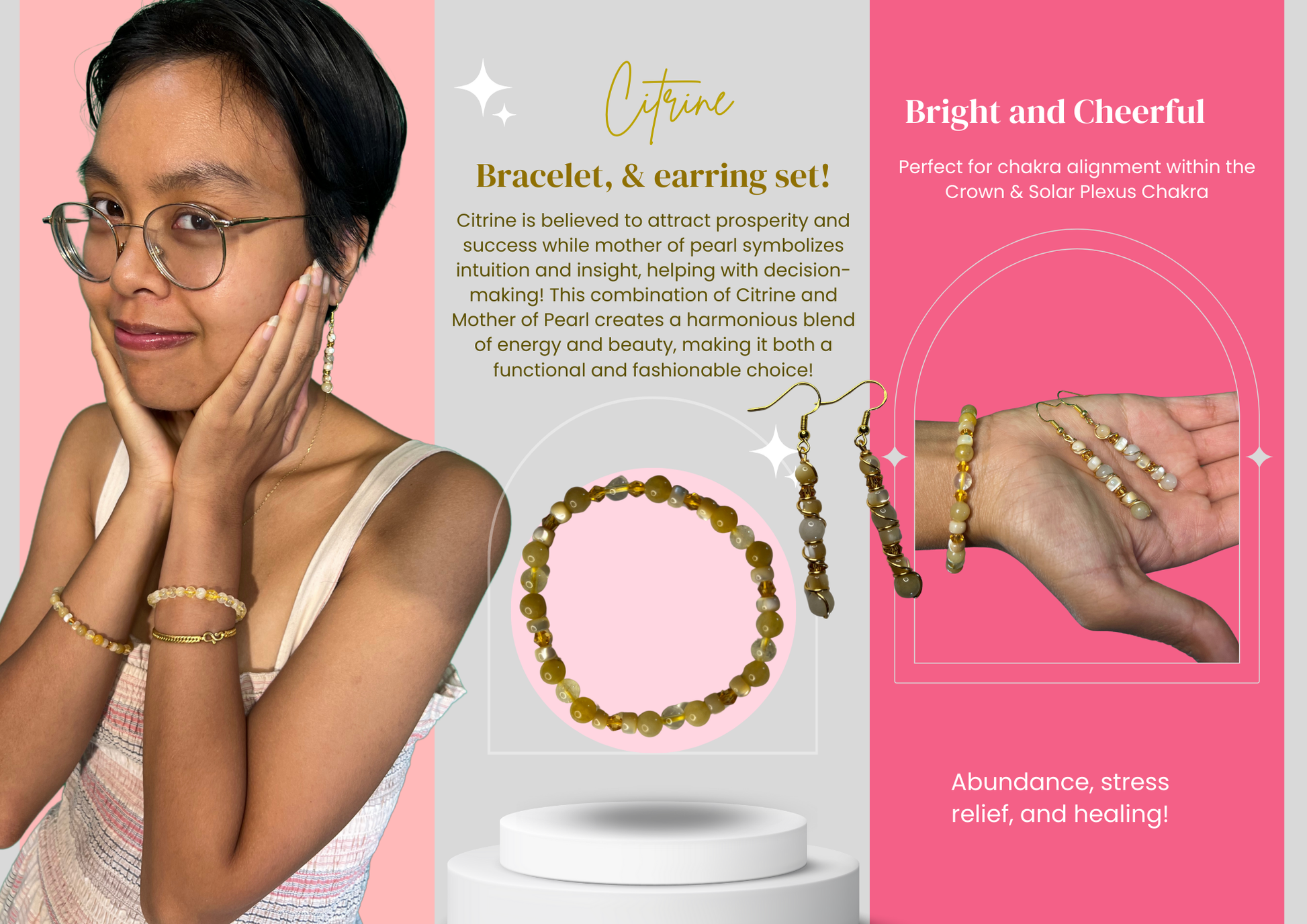 Step into your light with the Sunlit Serenity set—a graceful pairing of faceted Citrine and luminous Mother of Pearl, handcrafted to help you glow from the inside out. Designed to radiate warmth, optimism, and soft strength, this set is perfect for anyone who leads with heart and moves with intention.
