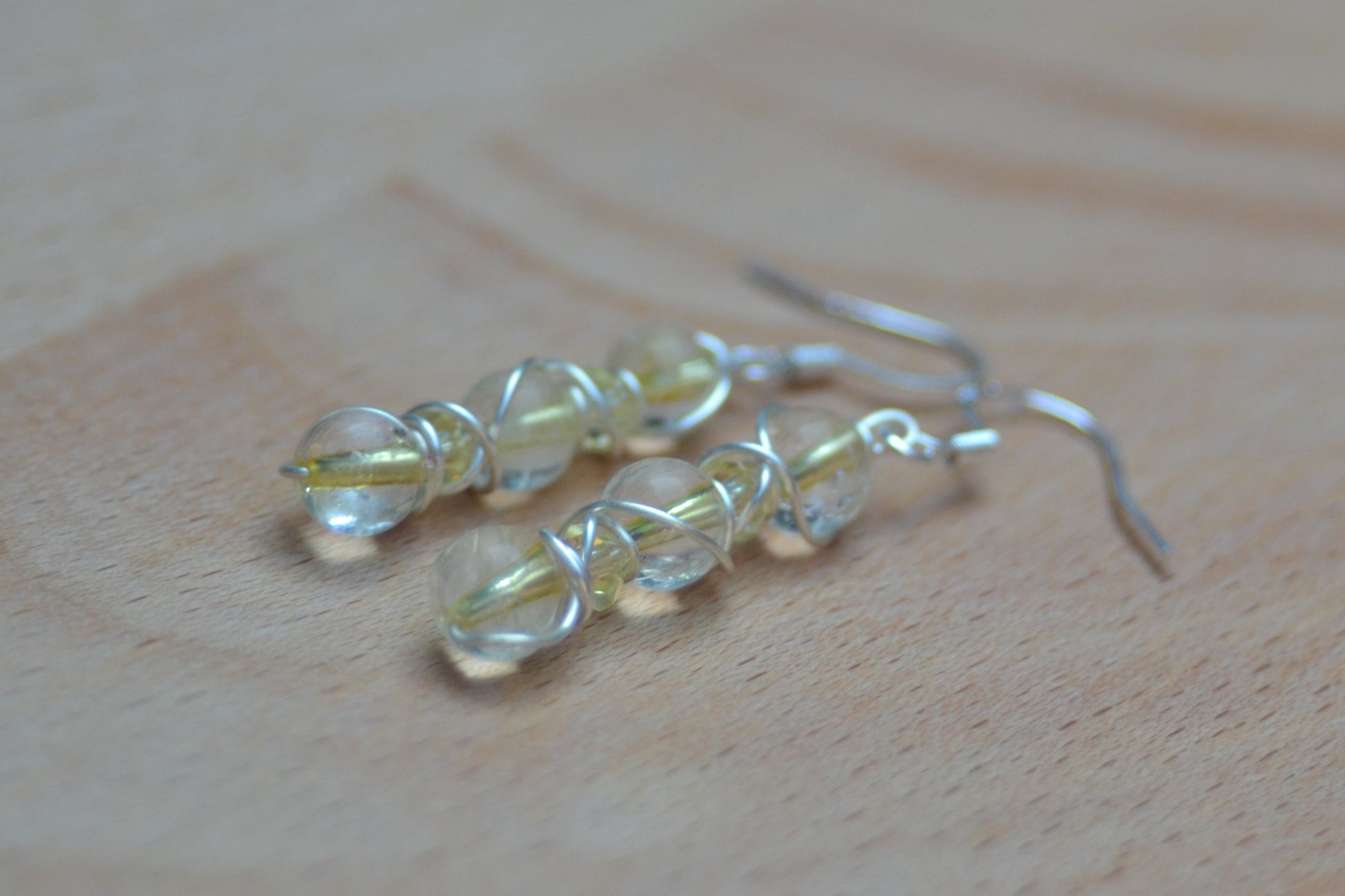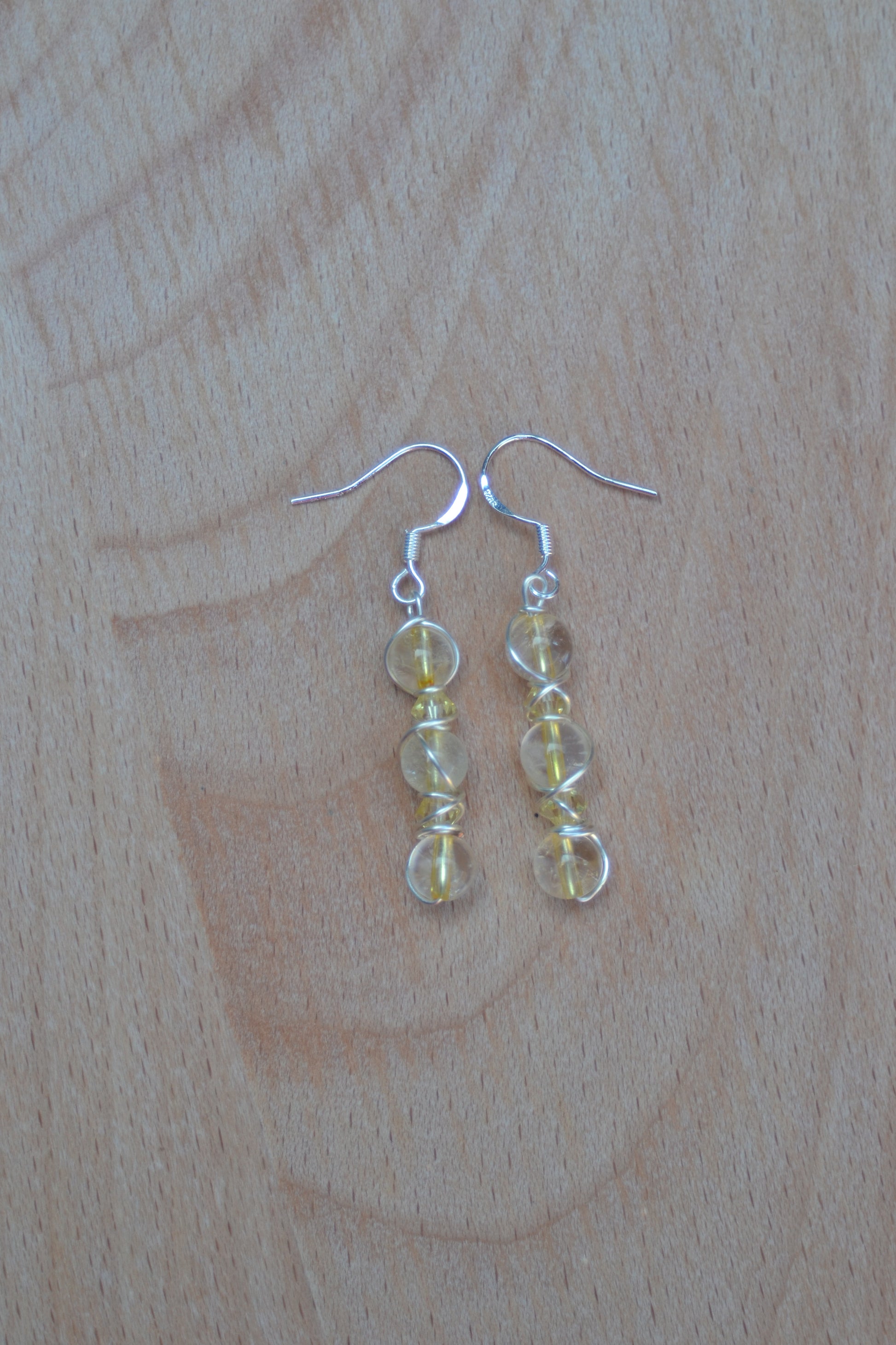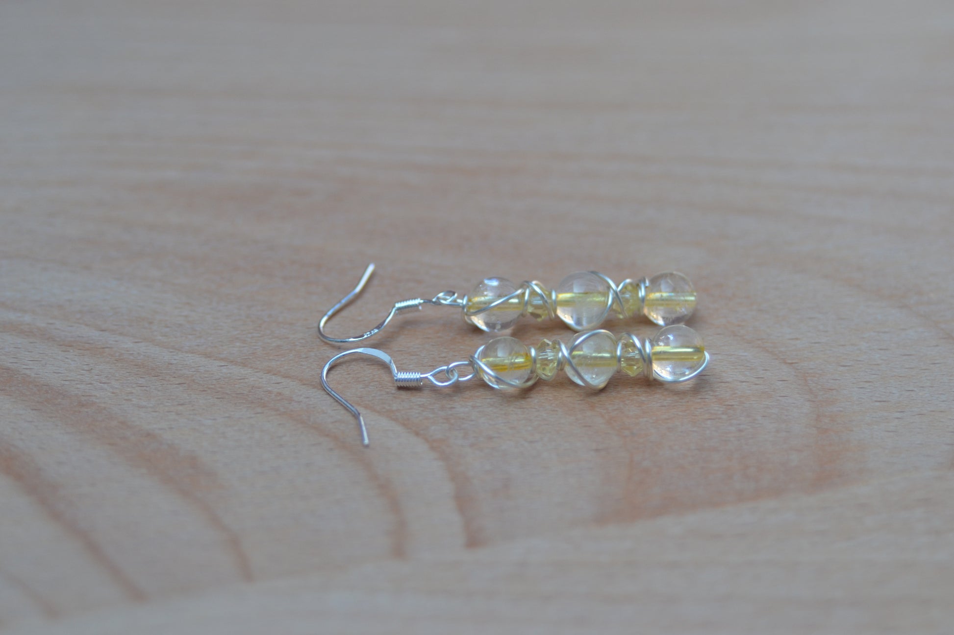 Bring warmth, positivity, and sparkle to your look with these five-tier Citrine earrings. Measuring 1.75 inches long, each earring features three 6mm Citrine beads separated by yellow faceted crystal spacers, double wire wrapped in silver-plated copper for durability and finished with sterling silver hooks.