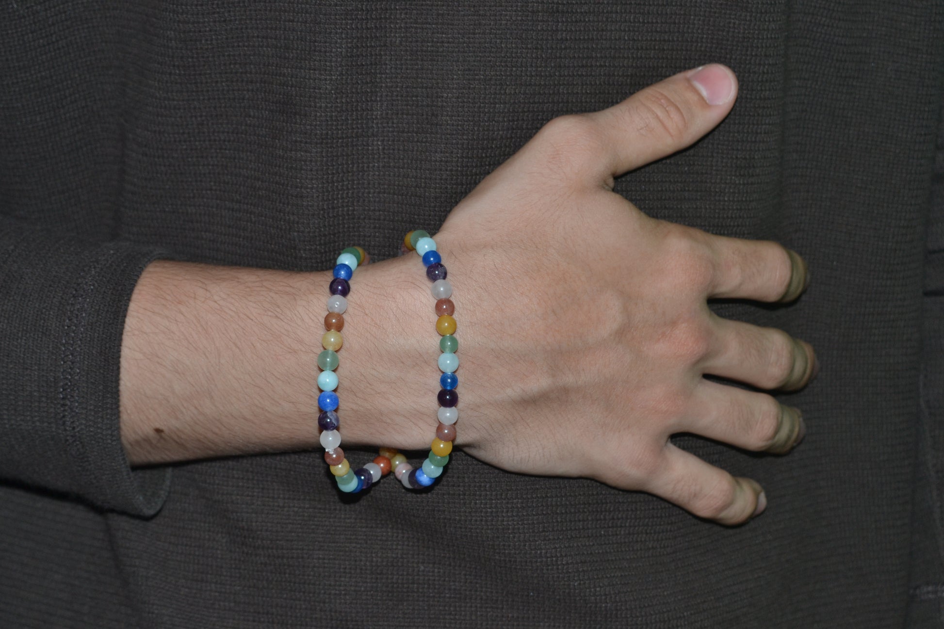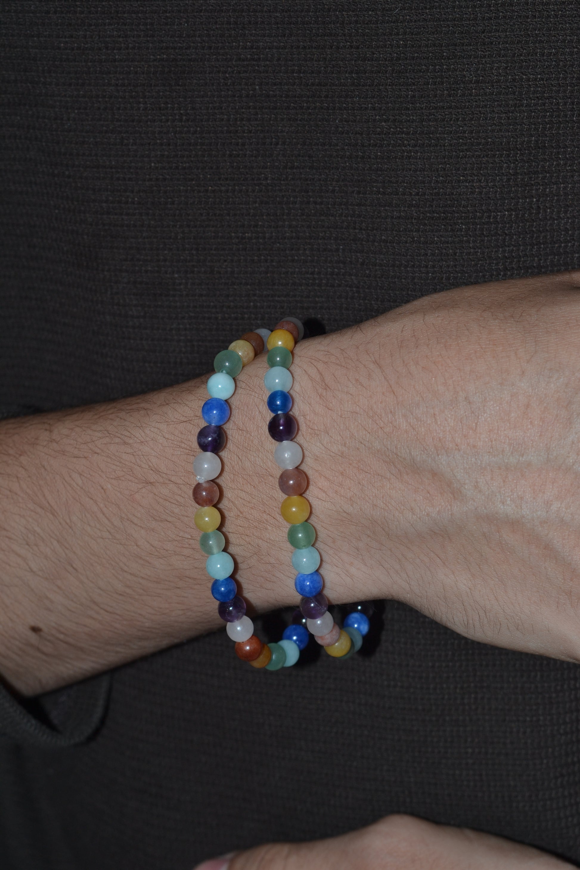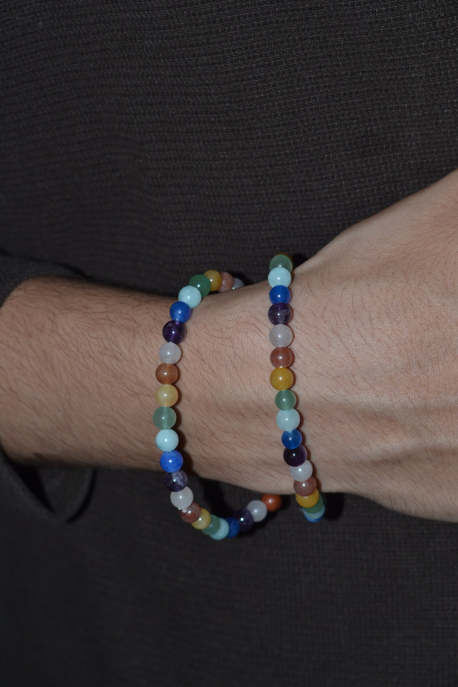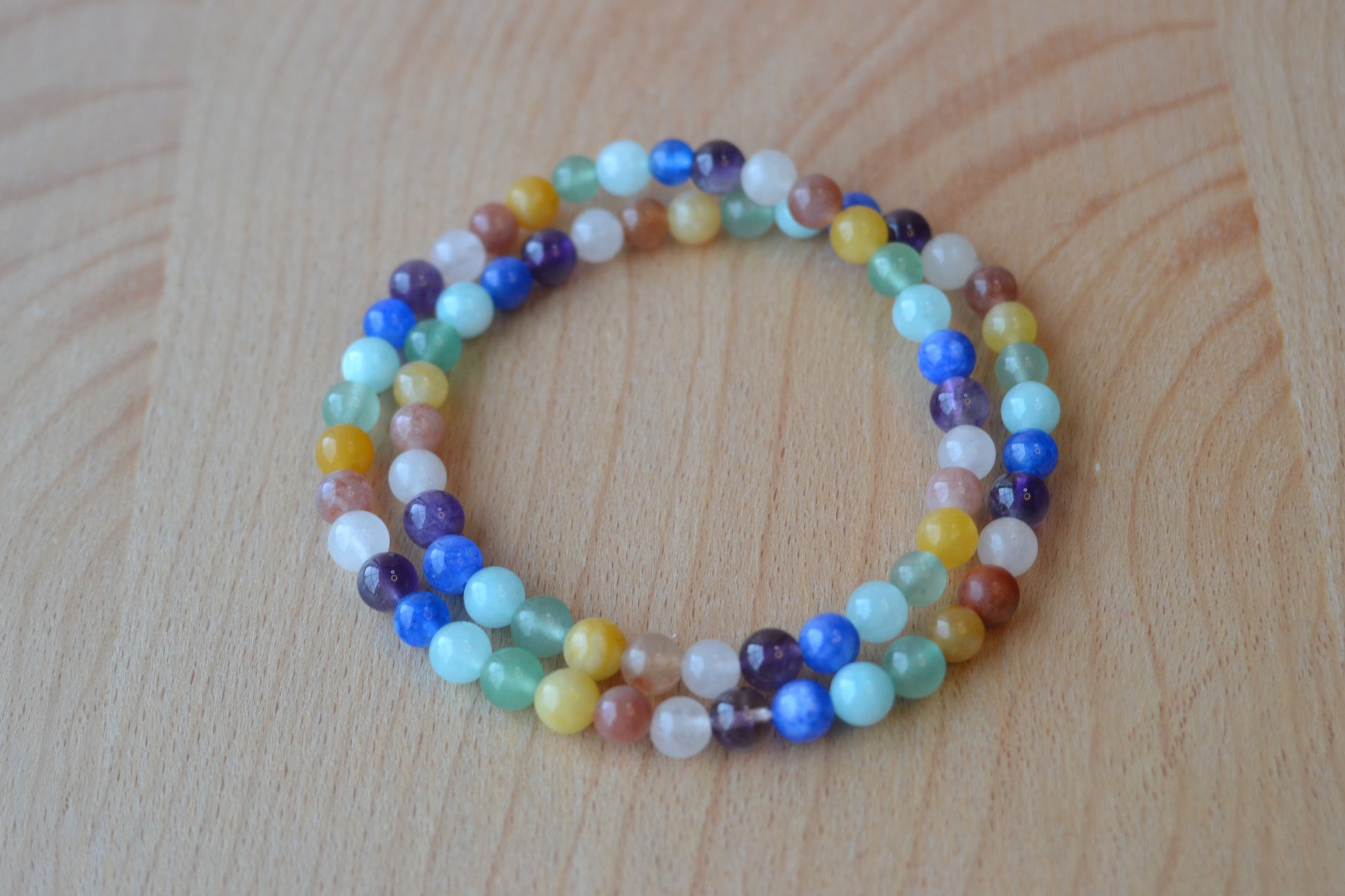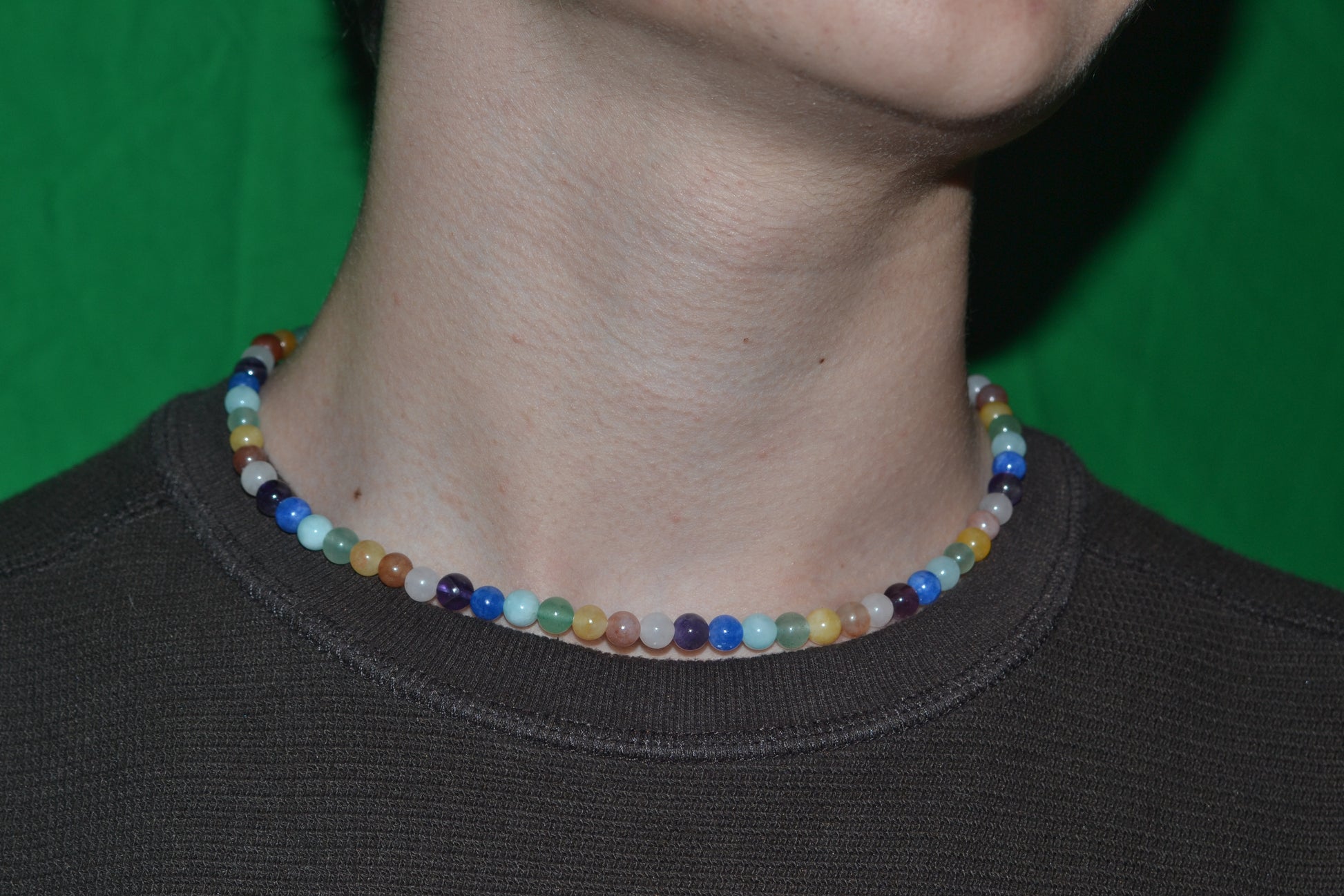 This soft and radiant 16-inch rainbow choker is made with smooth 4mm natural gemstone beads, creating a subtle gradient of healing energy across the chakras. Featuring Rose Quartz, Fire Agate, Yellow Jade, Green Aventurine, Aquamarine, Druzy Jasper, and Amethyst, this piece is perfect for daily wear, layering, or as a meaningful gift for someone walking their healing path.