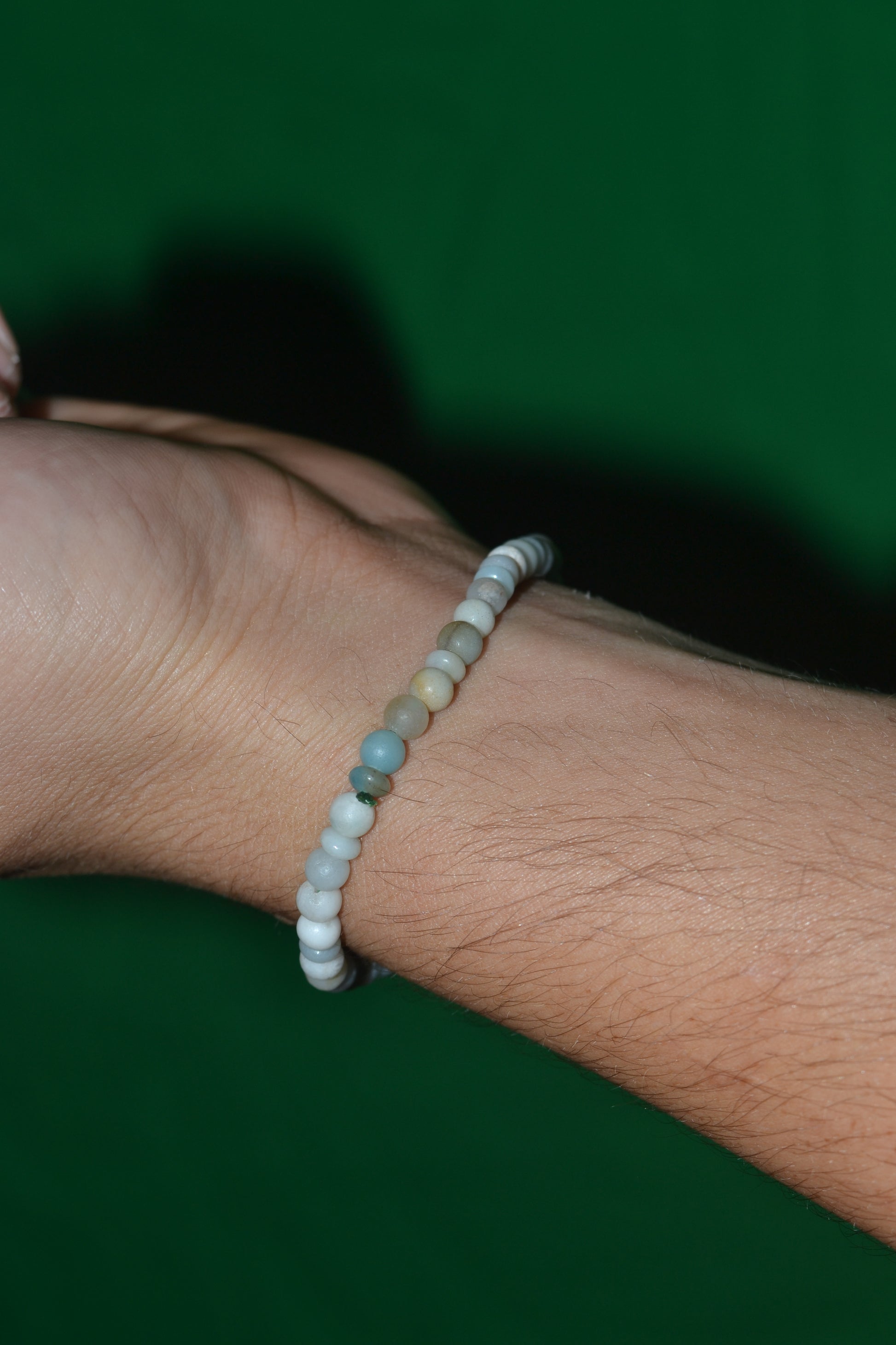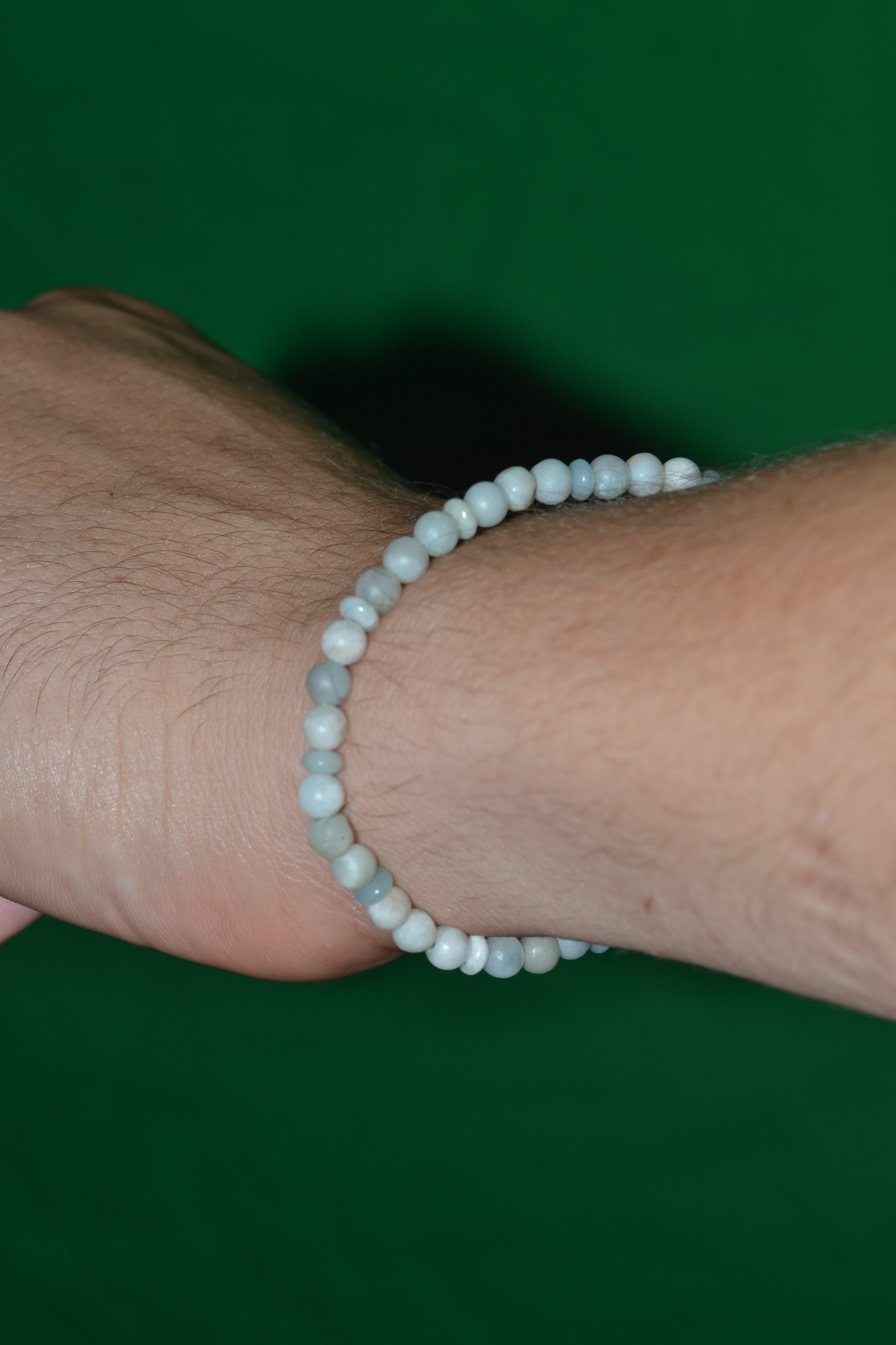 This handmade bracelet features raw, unpolished 3mm amazonite beads that bring a natural, textured beauty to your jewelry collection. Amazonite, known as the “Stone of Courage and Truth,” promotes calm, emotional balance, and clear communication.