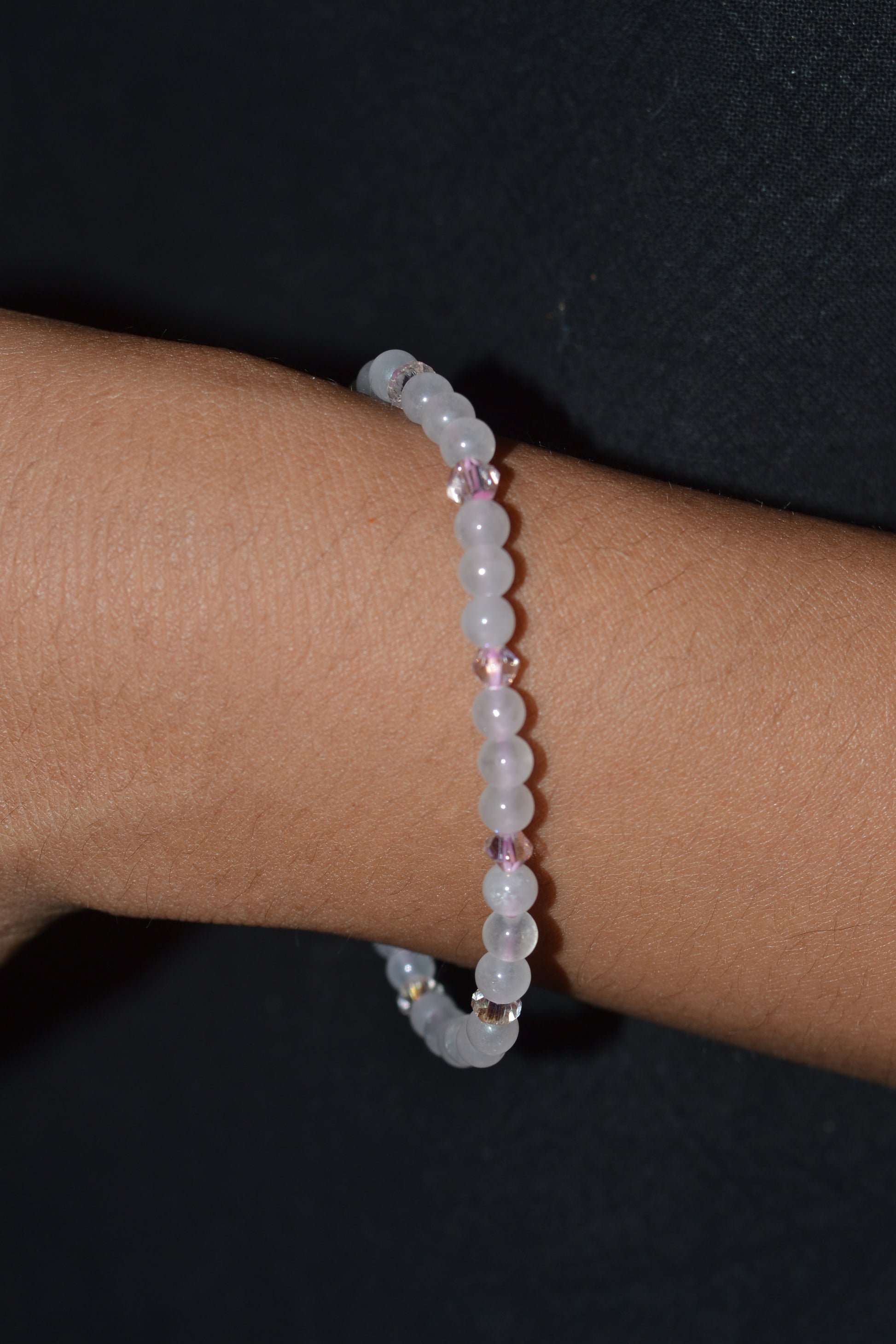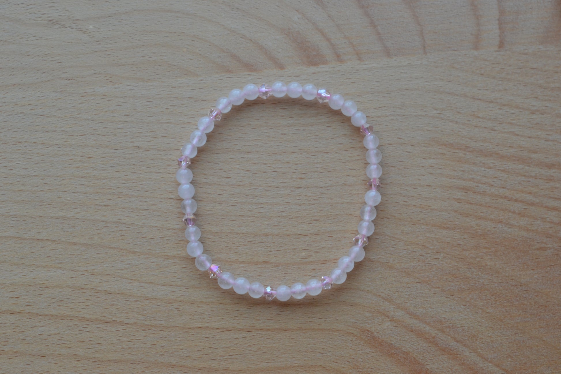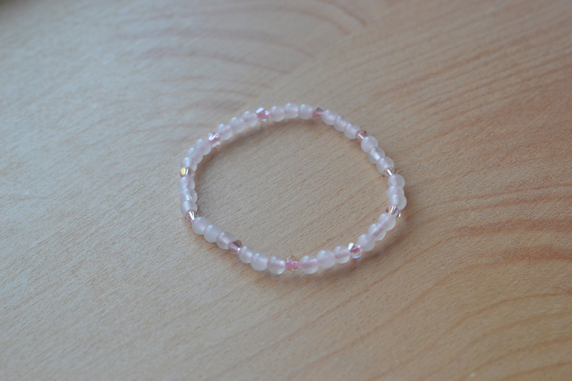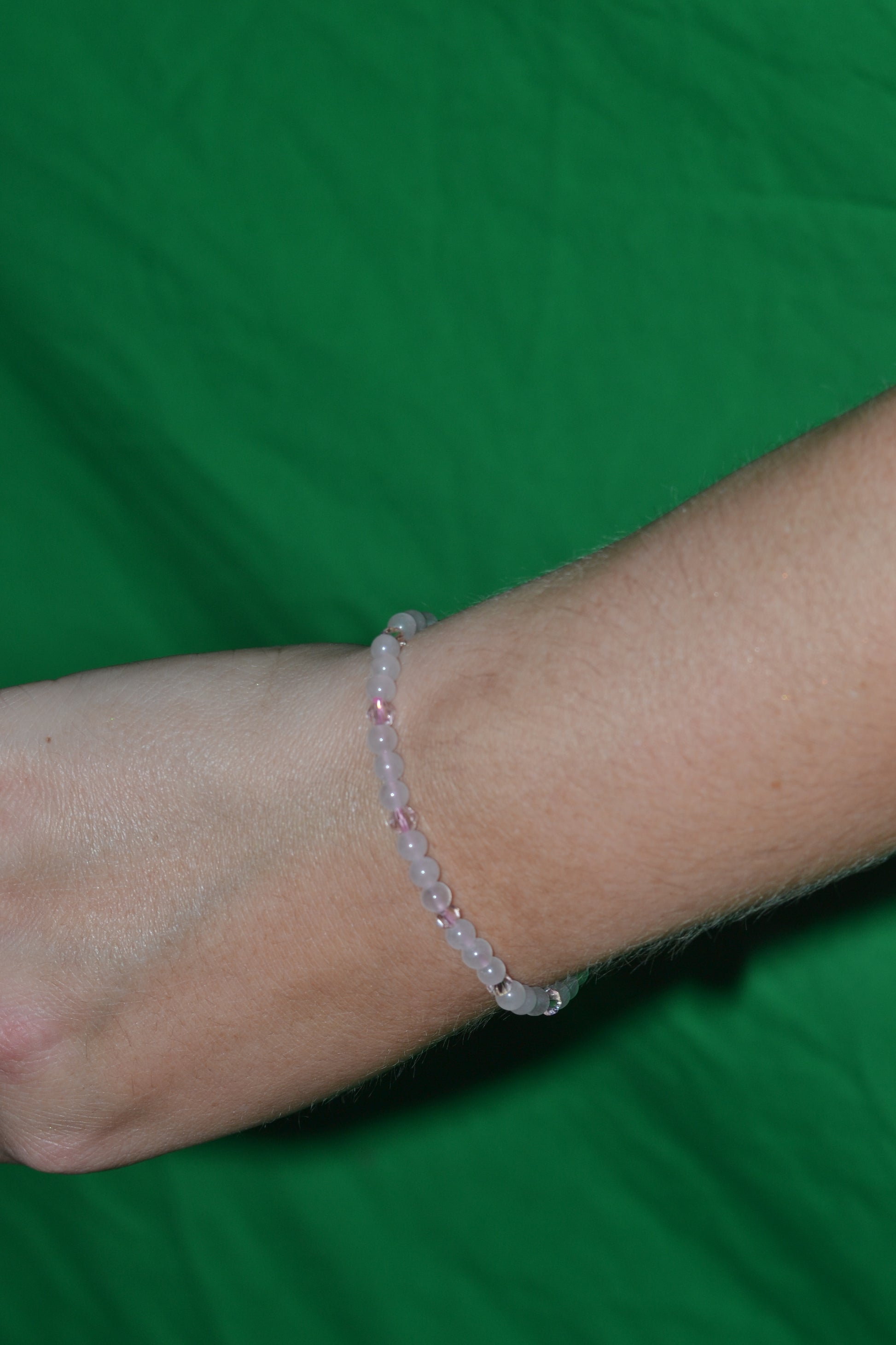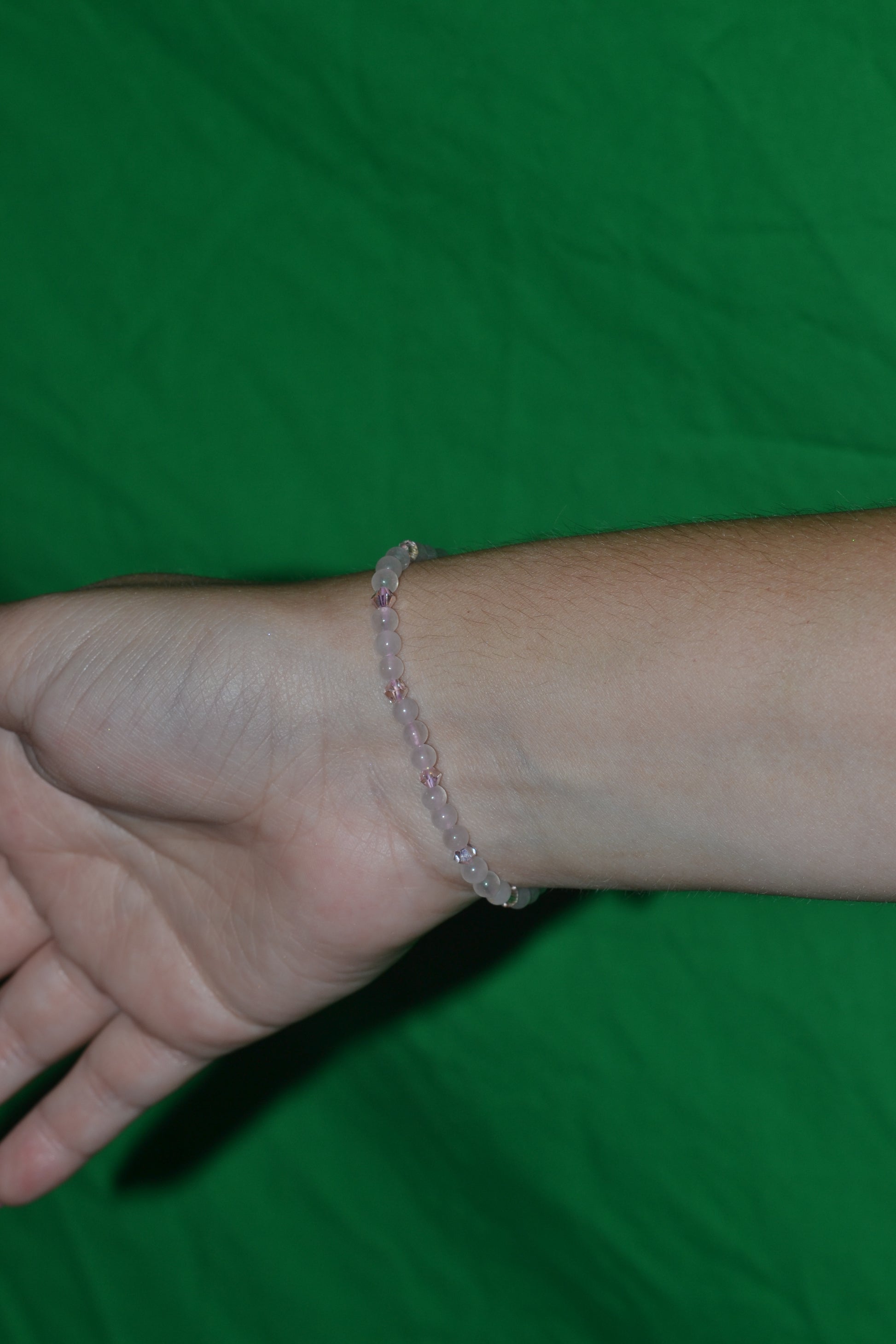 Materials: 2mm rose quartz beads, Swarovski crystal spacers