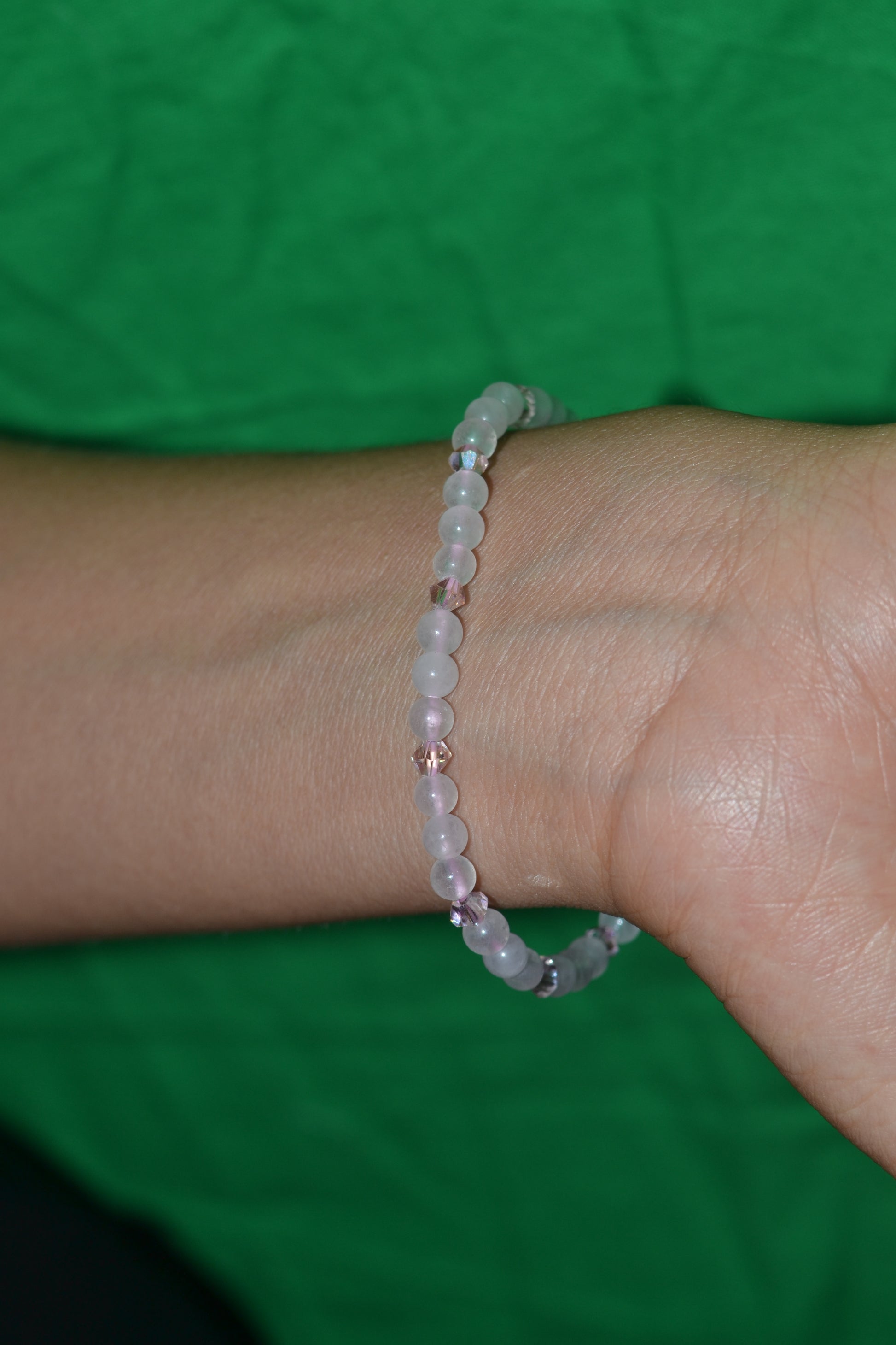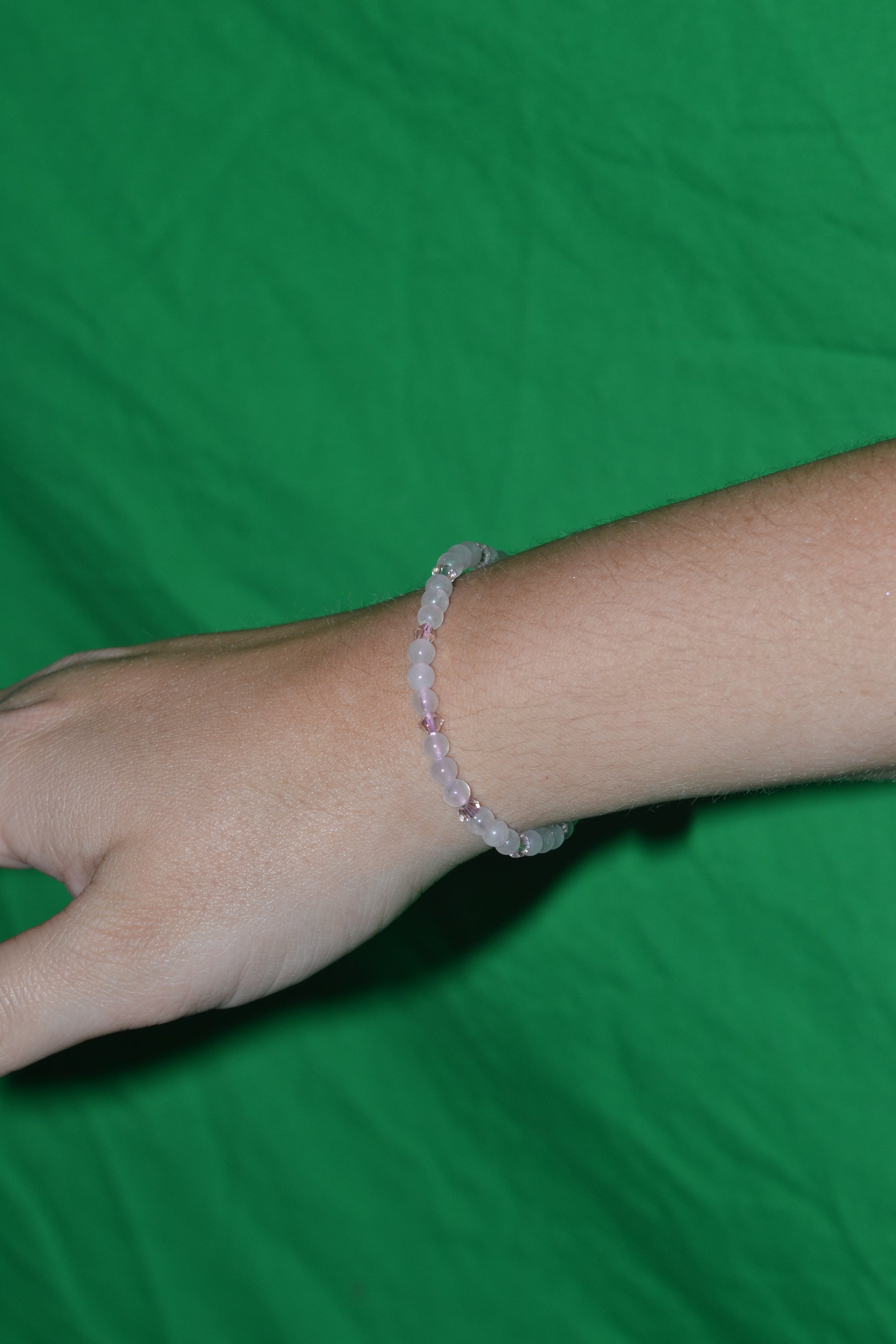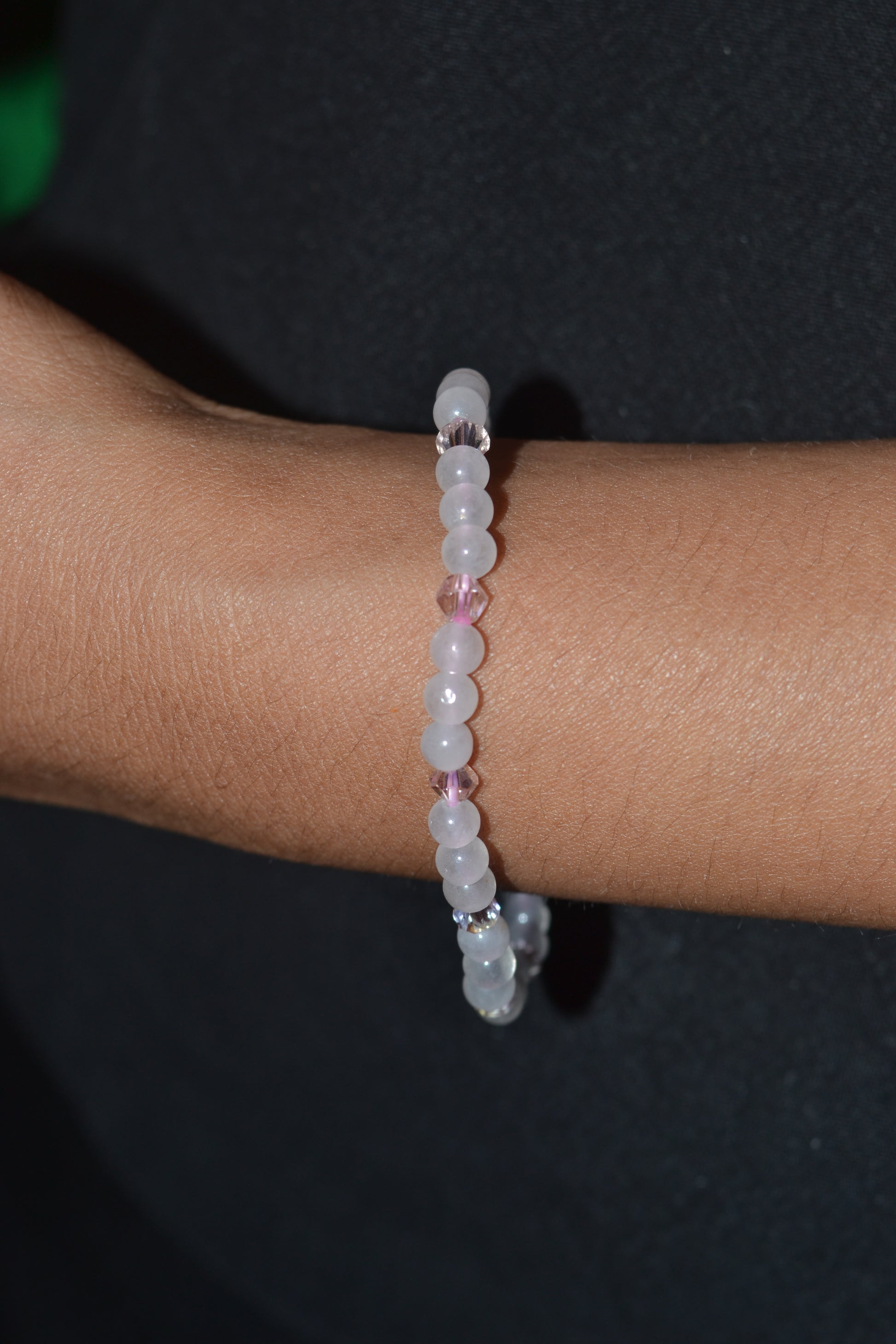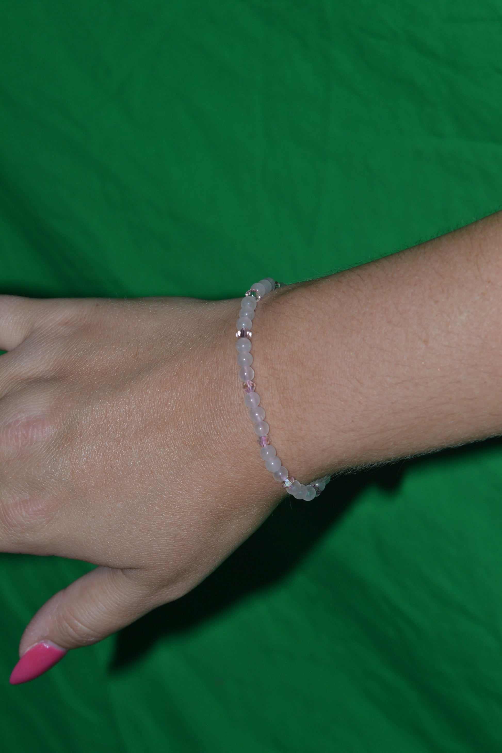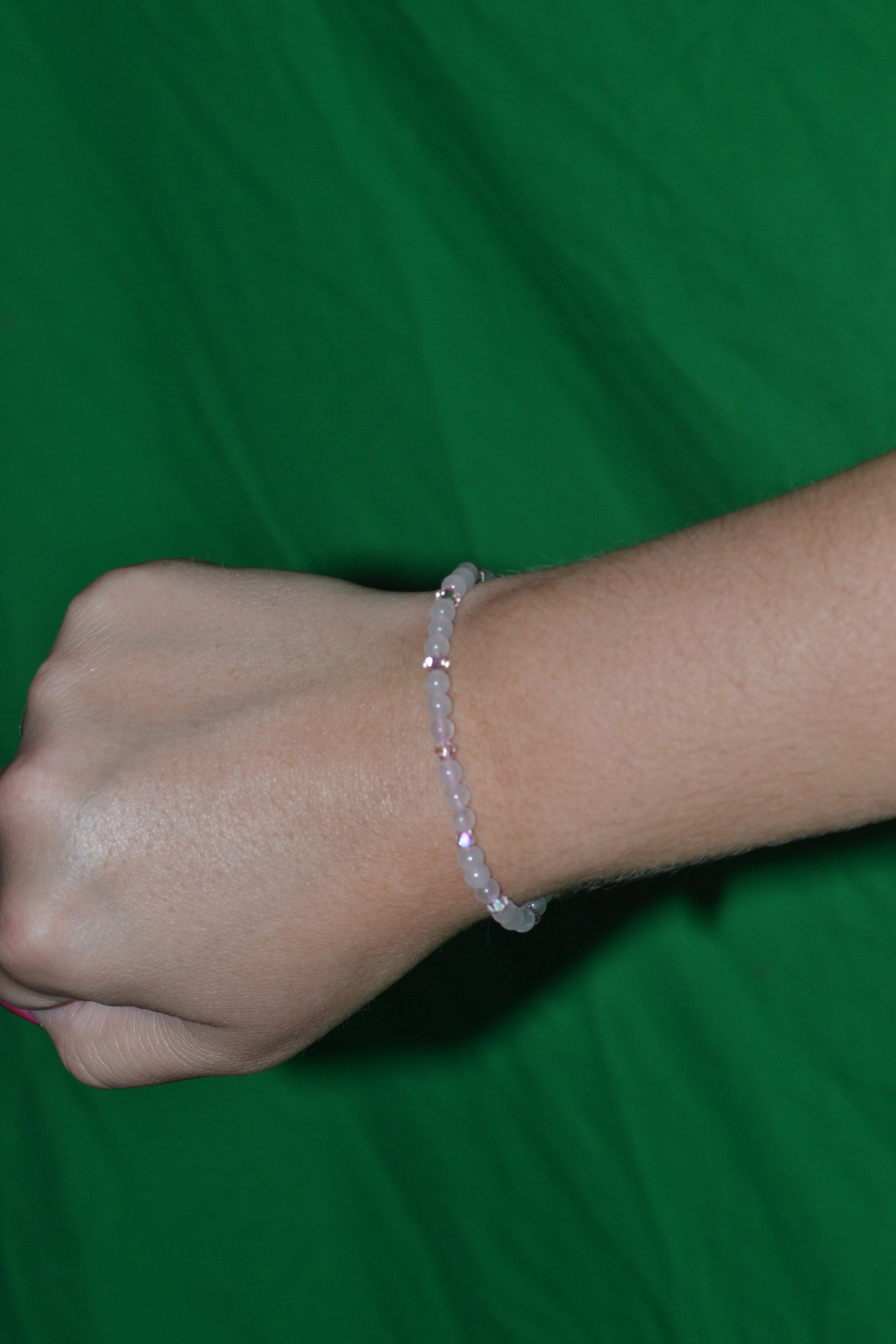 Materials: 2mm rose quartz beads, Swarovski crystal spacers