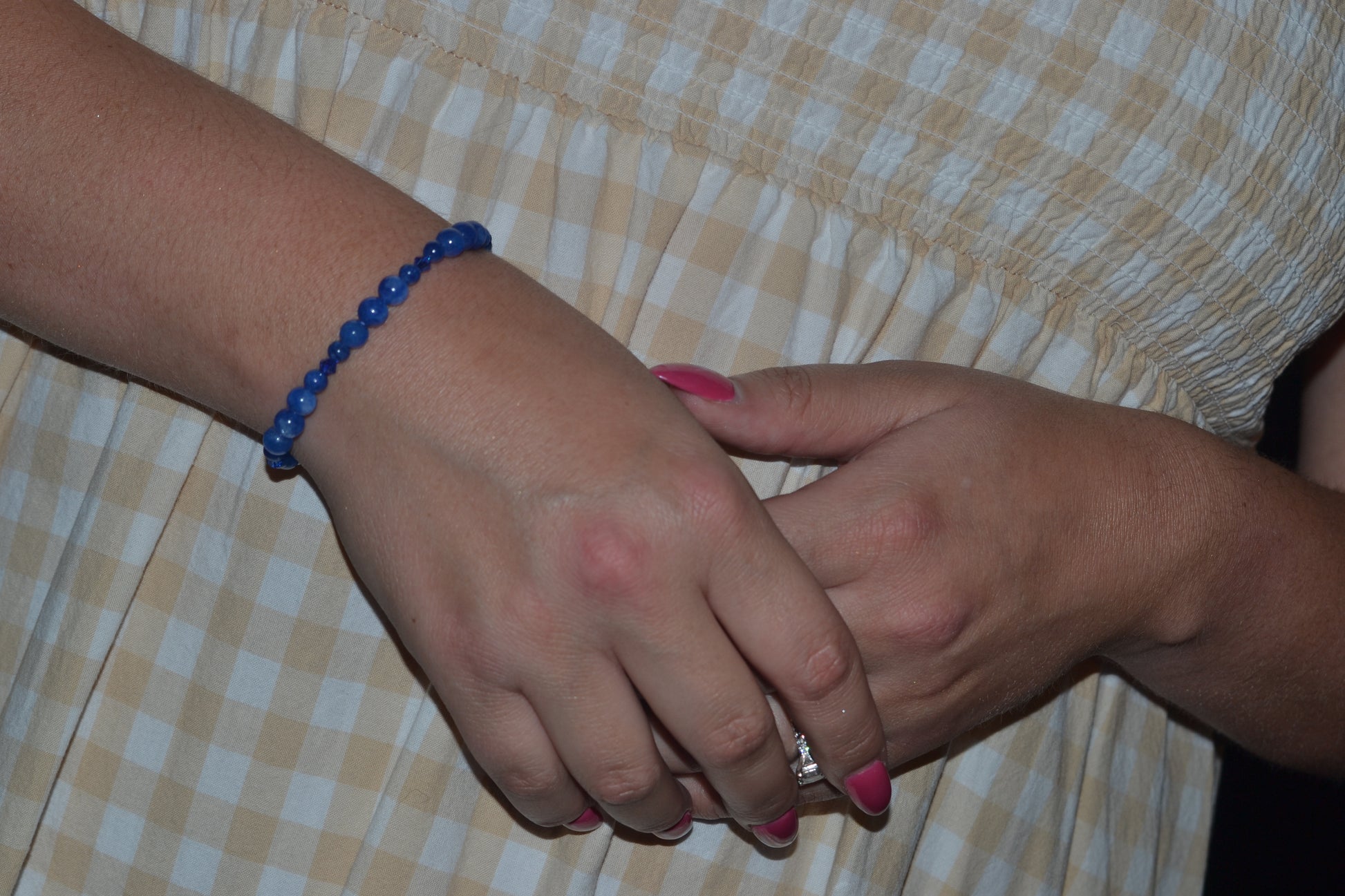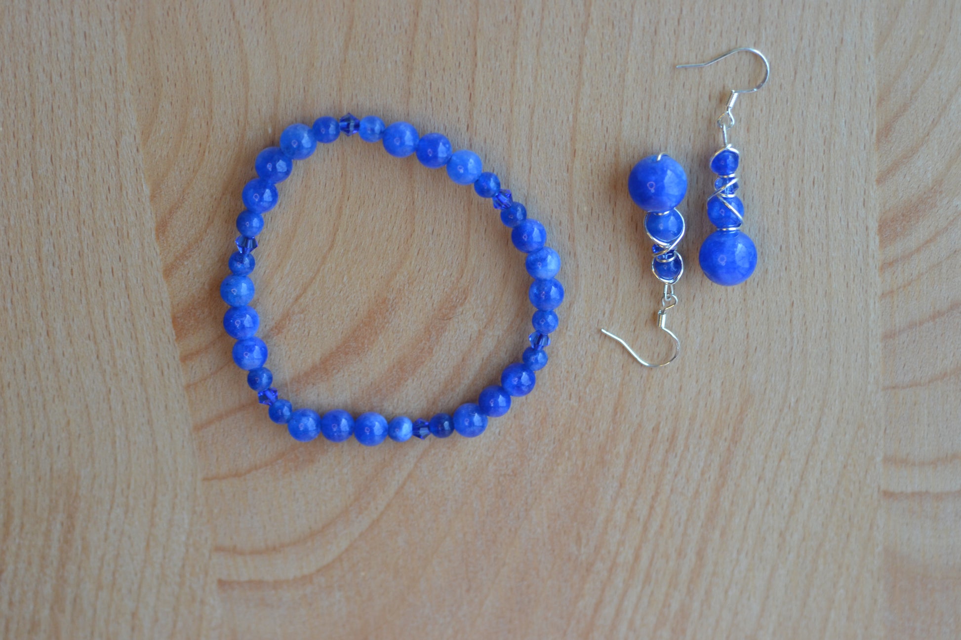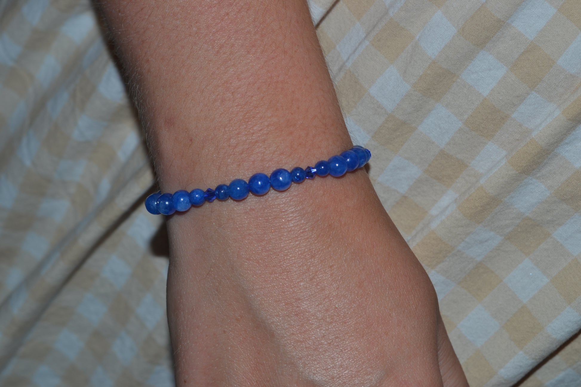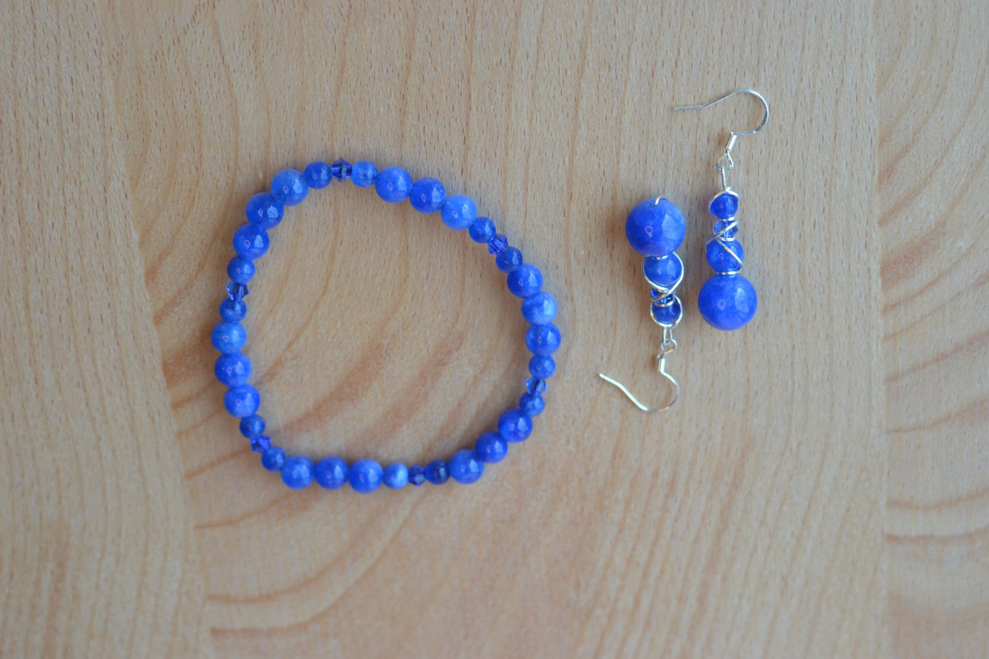 The matching bracelet is made with 4mm and 2mm blue jasper beads, spaced with subtle blue crystal accents, making it lightweight, stackable, and energetically aligned.