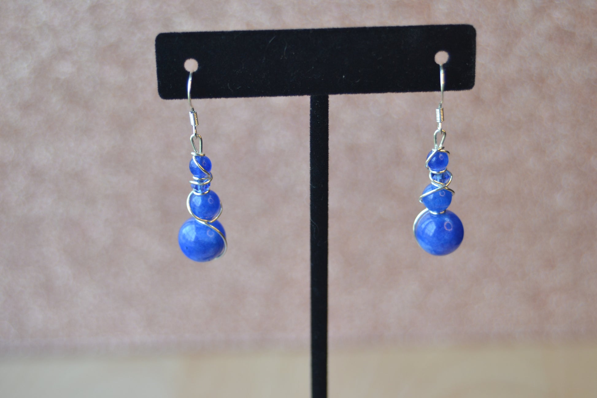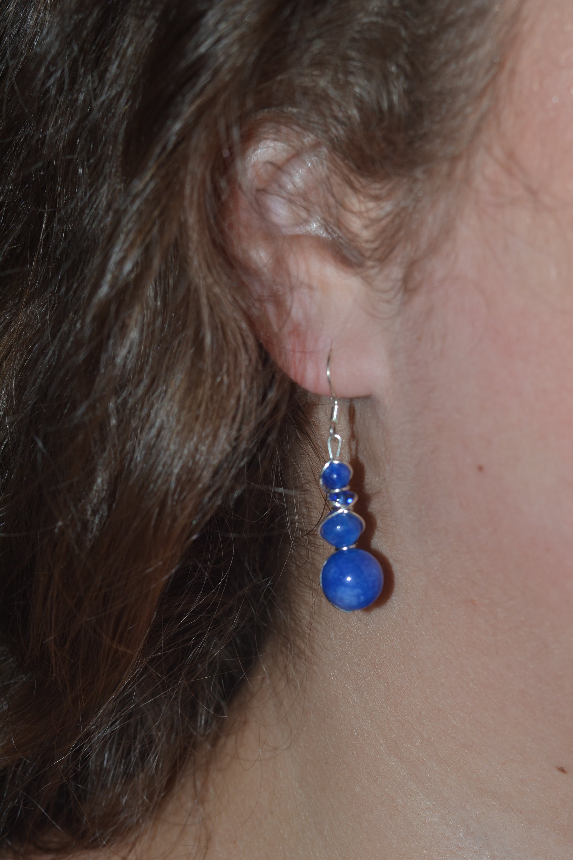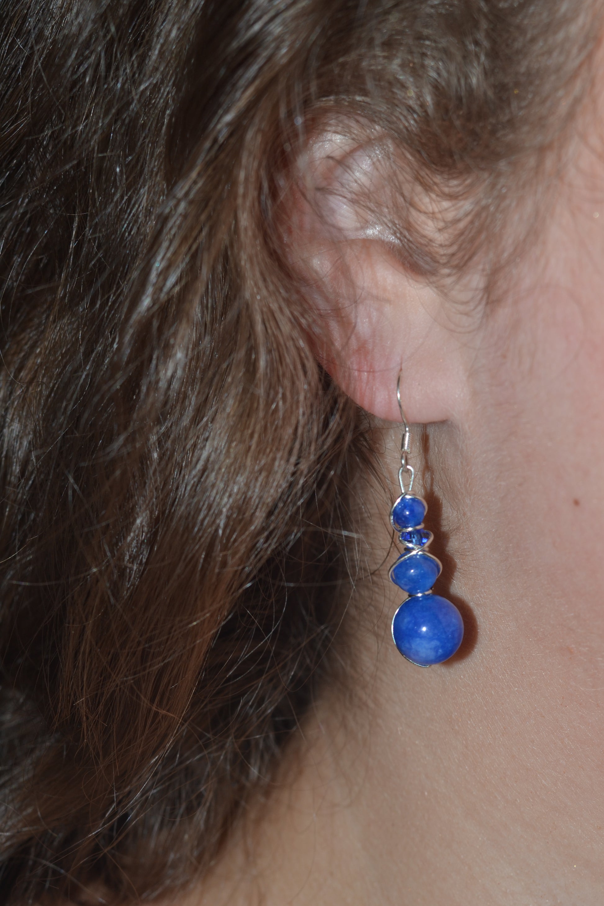 • Silver wire-wrapped with 4-tiered druzy blue jasper