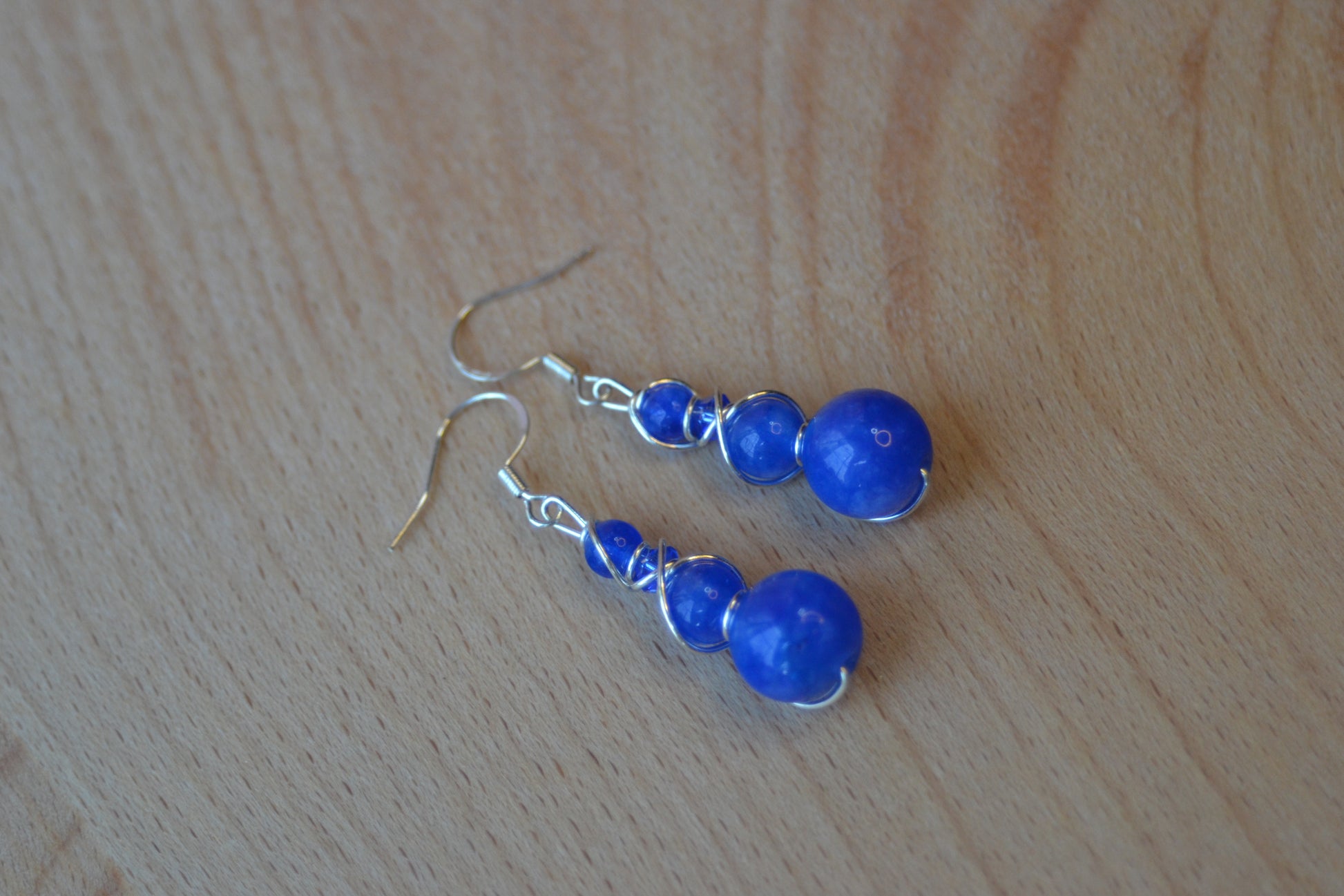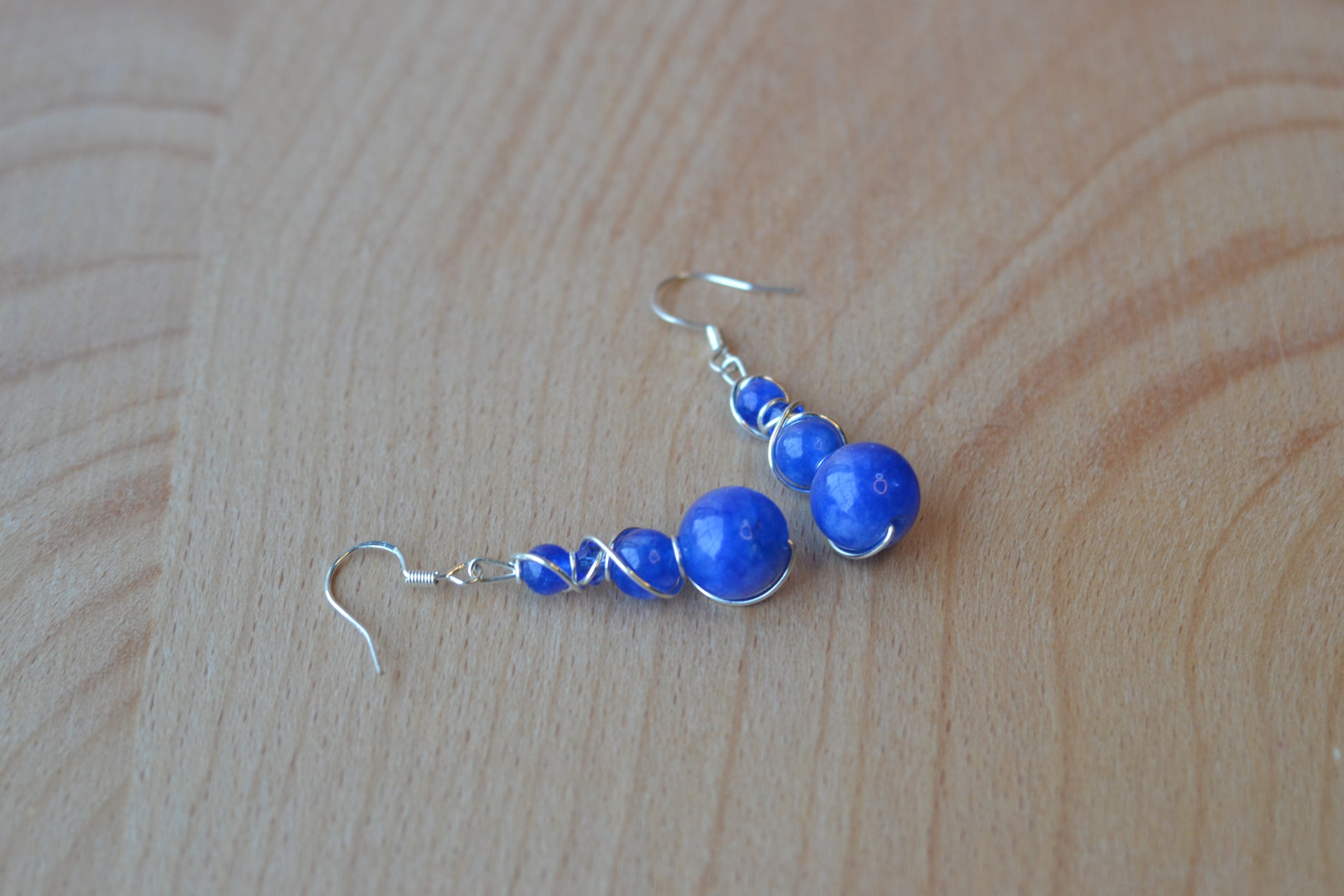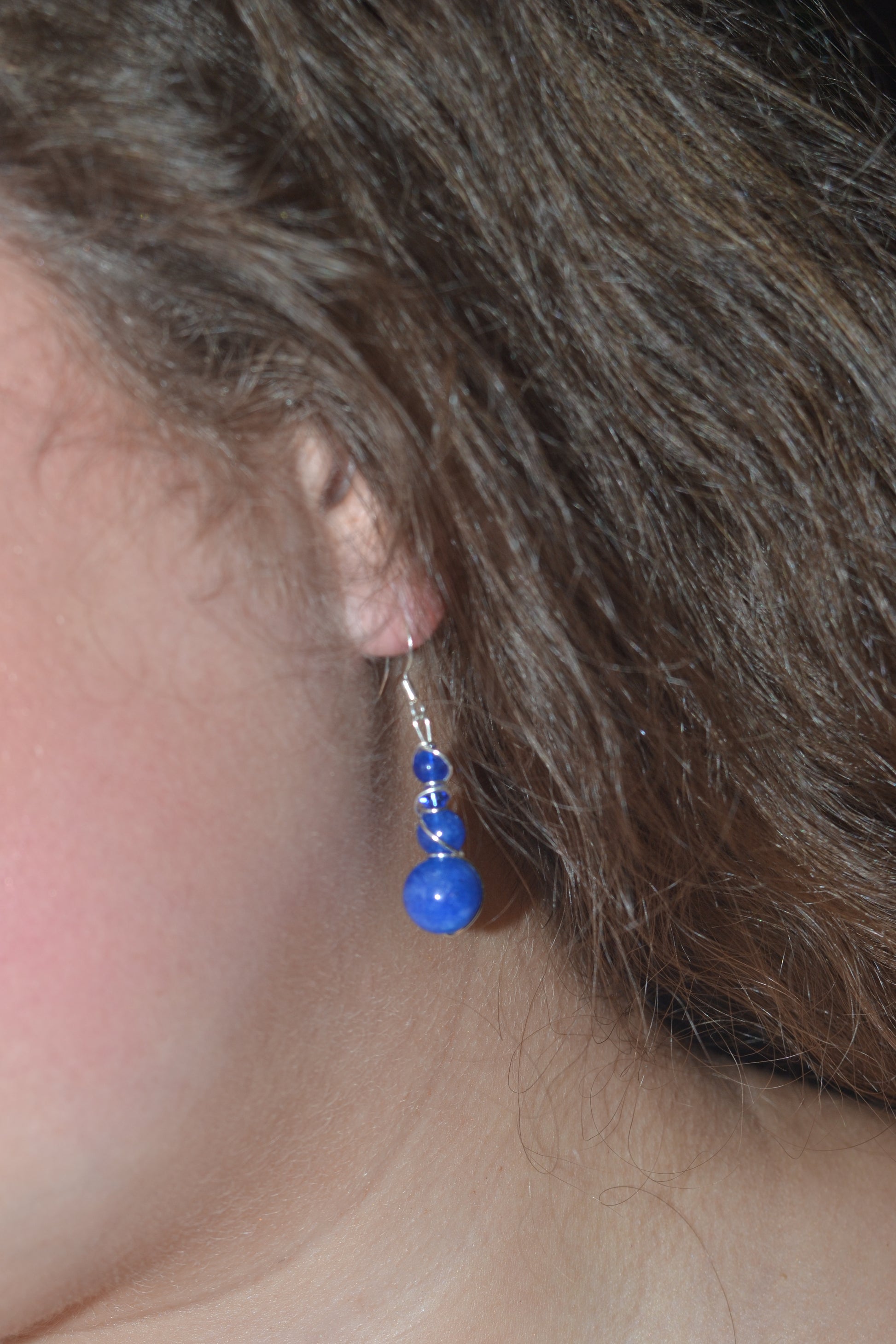 • Silver wire-wrapped with 4-tiered druzy blue jasper