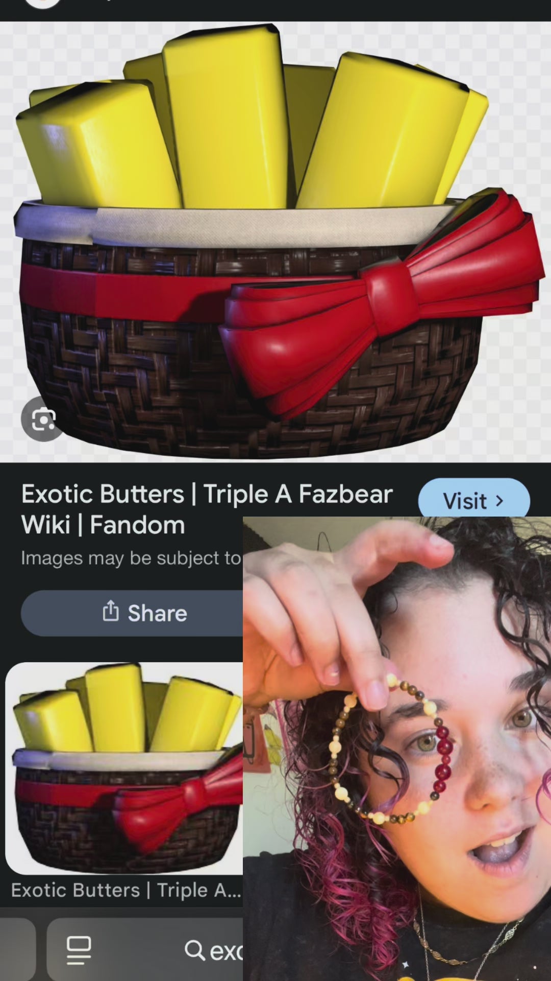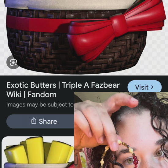 Inspired by the unforgettable Exotic Butters moment from Five Nights at Freddy’s, this handmade bracelet blends humor, nostalgia, and healing energy into one buttery-smooth design.