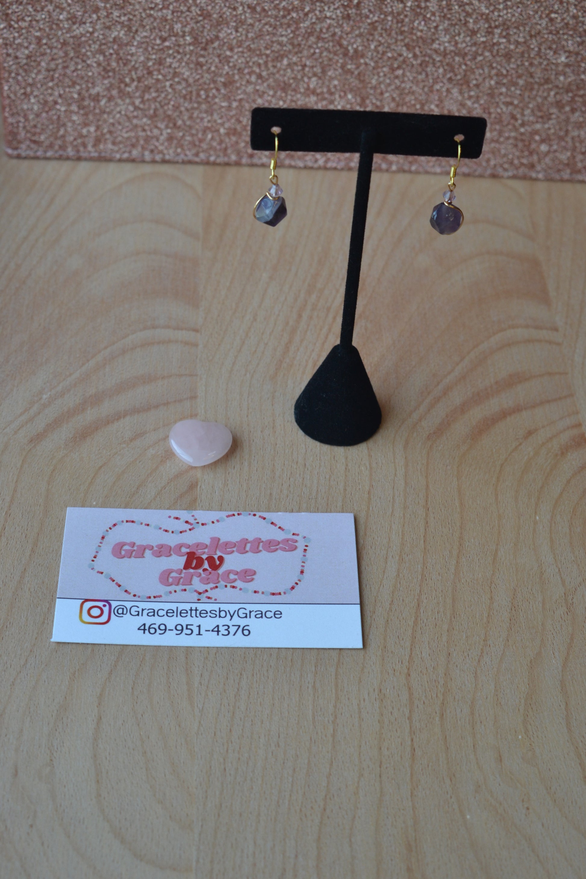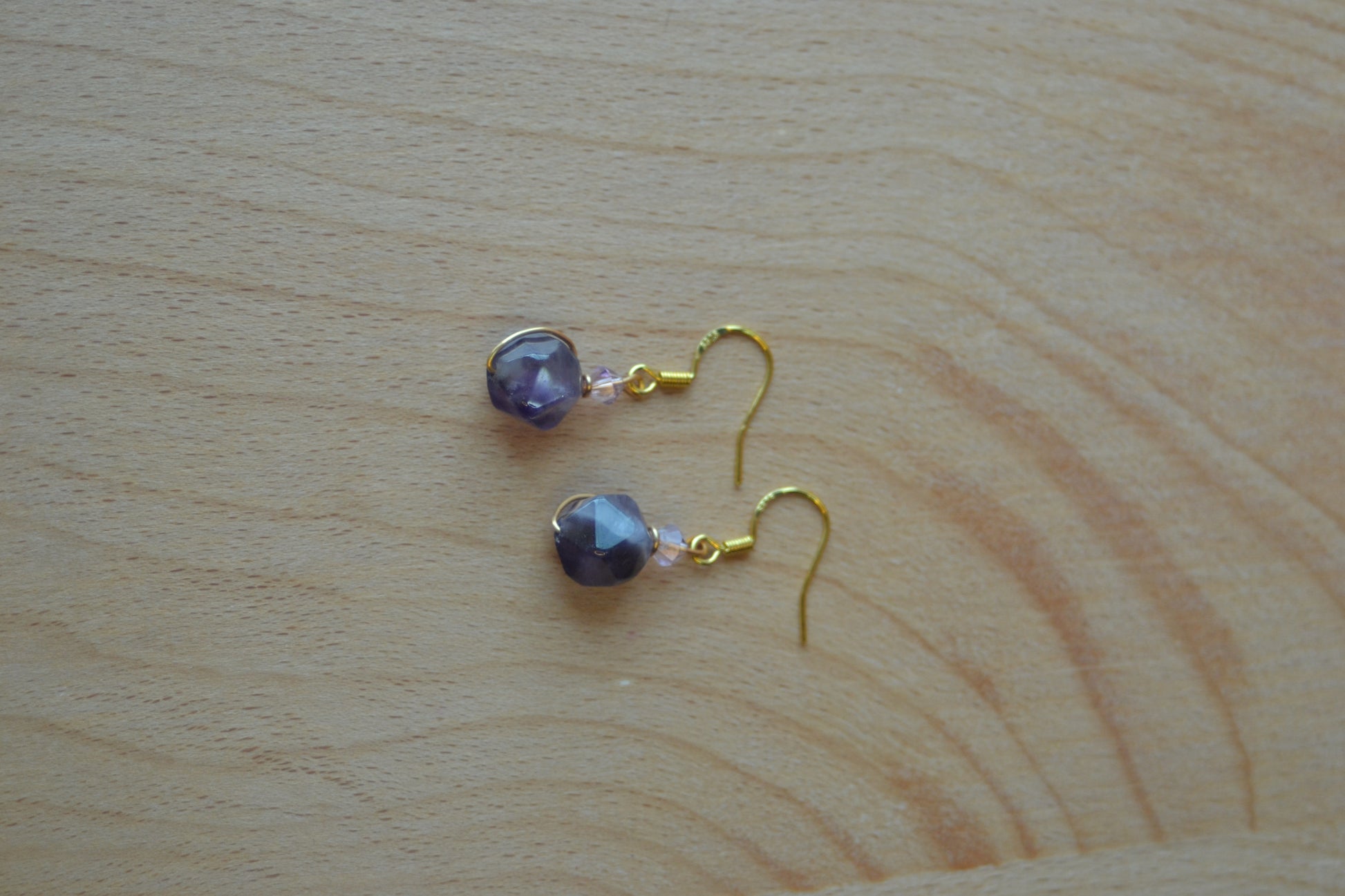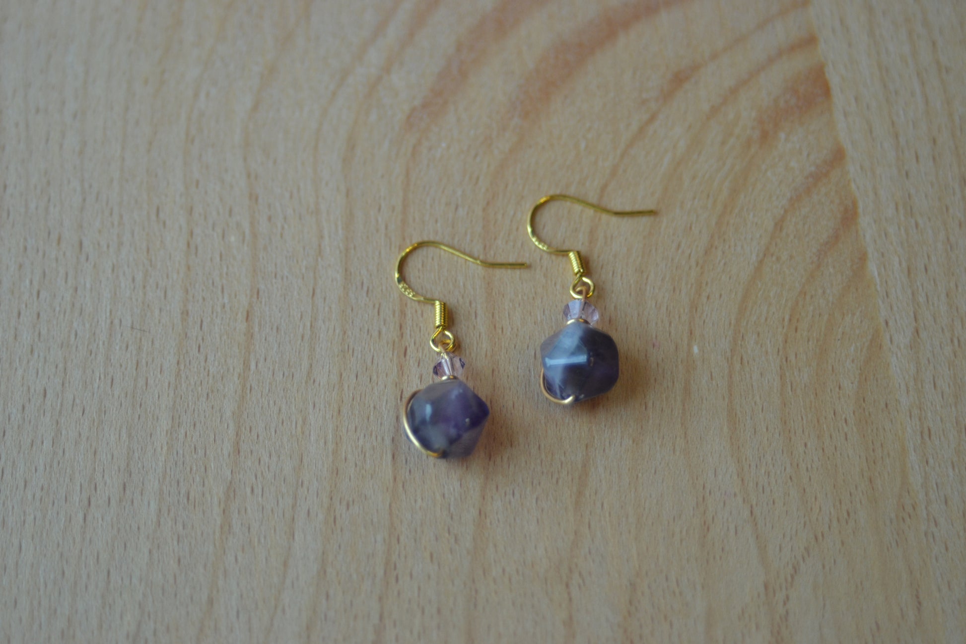 Faceted Amethyst & Light Purple Crystal Gold Wrapped Earrings – 1 Inch Drop