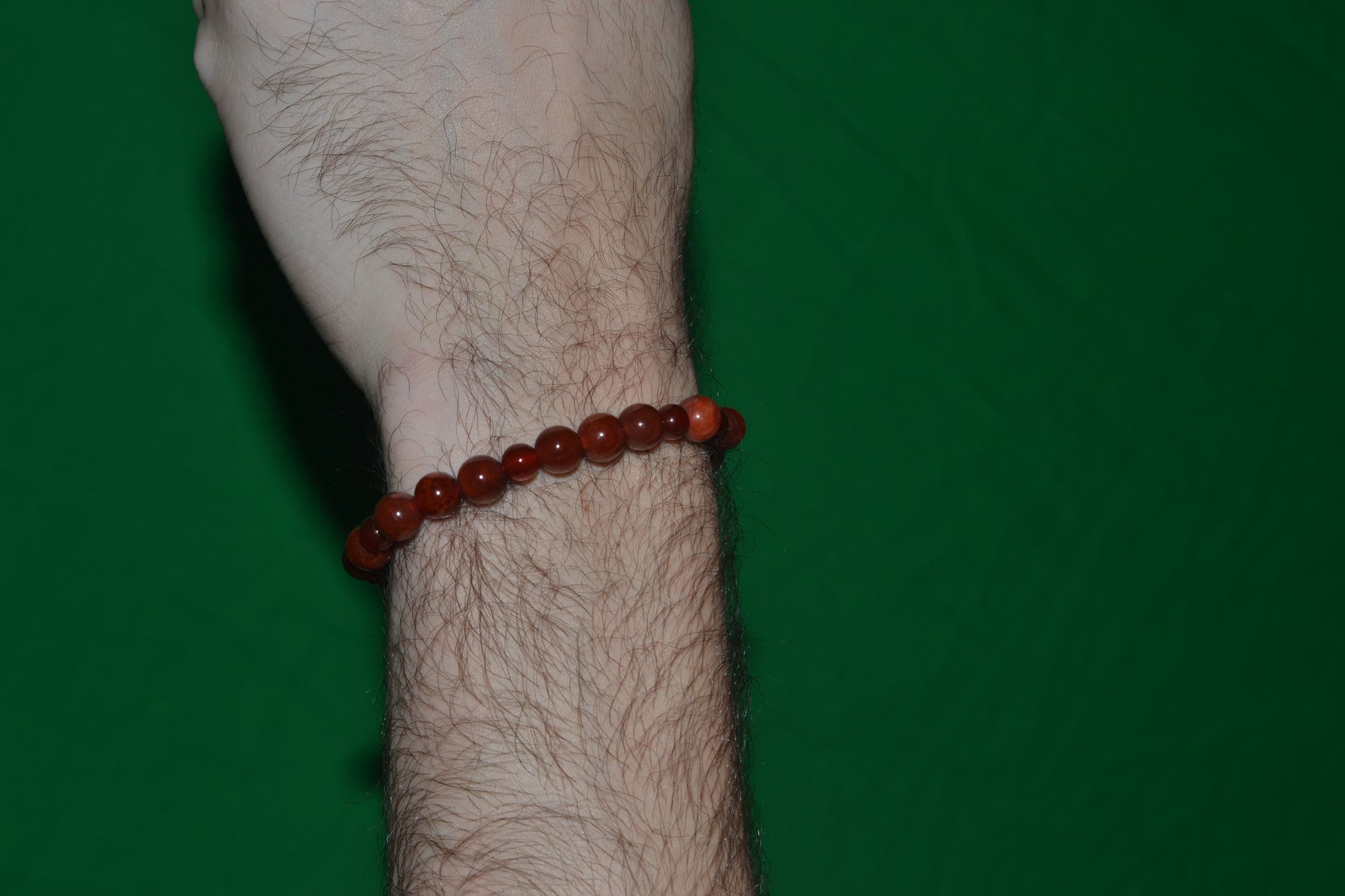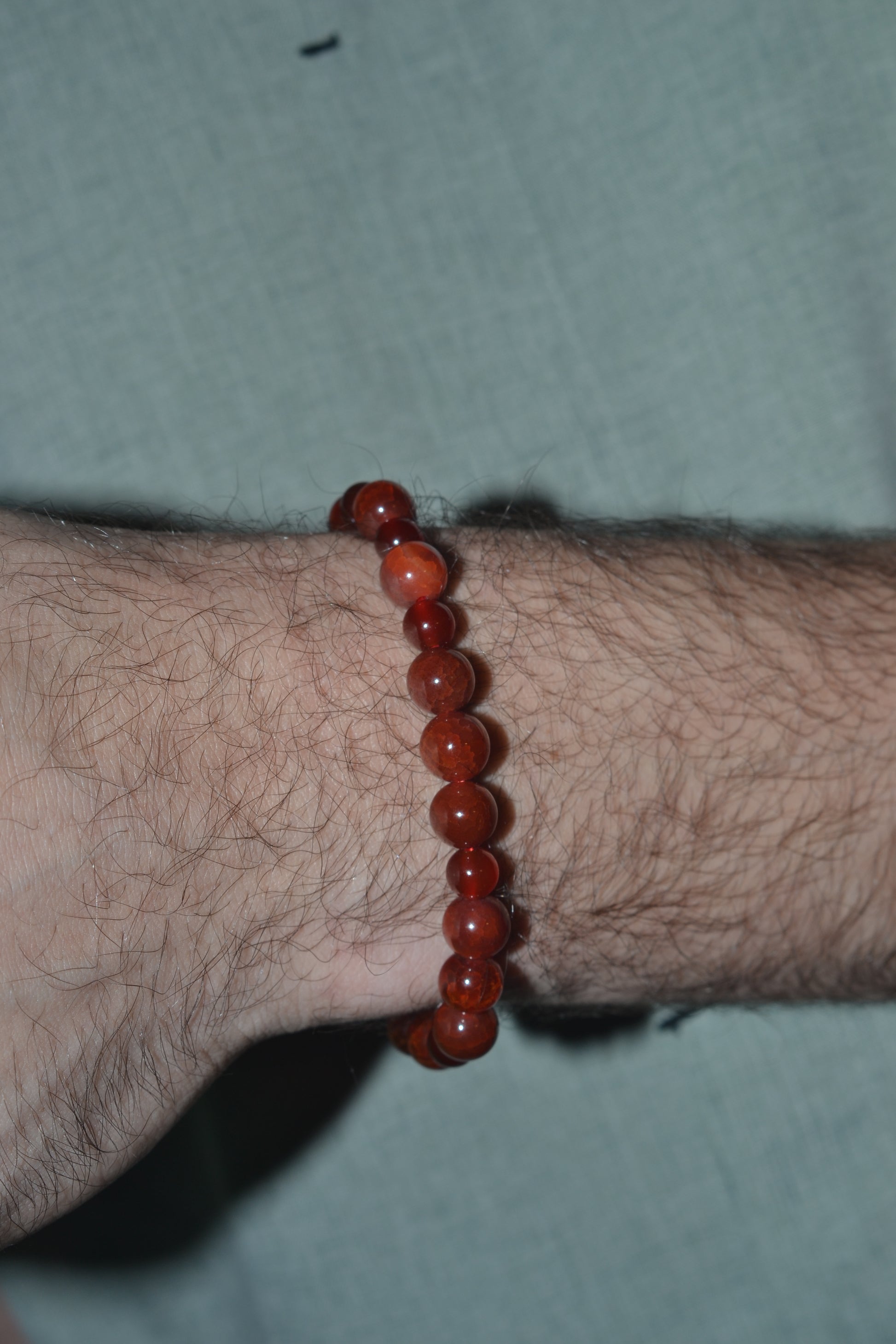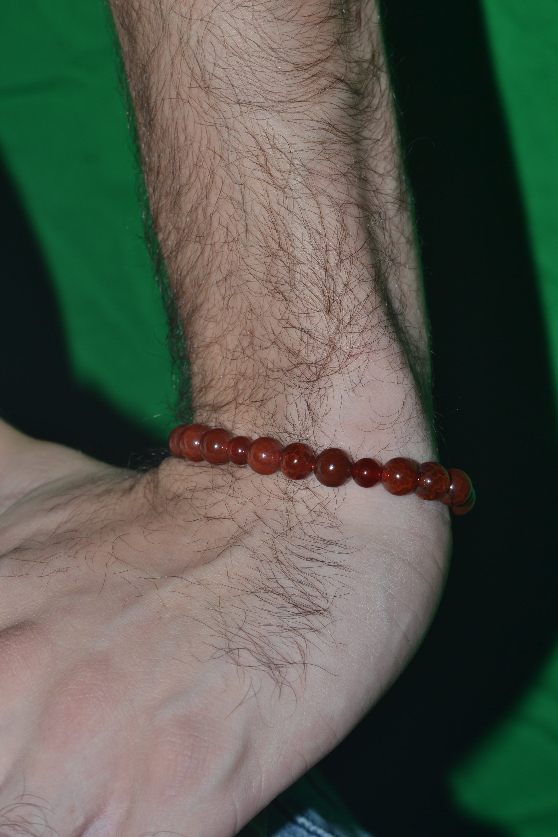 Harness the protective power of fire agate combined with the energizing vitality of carnelian in this handcrafted bracelet designed for grounded masculine strength.