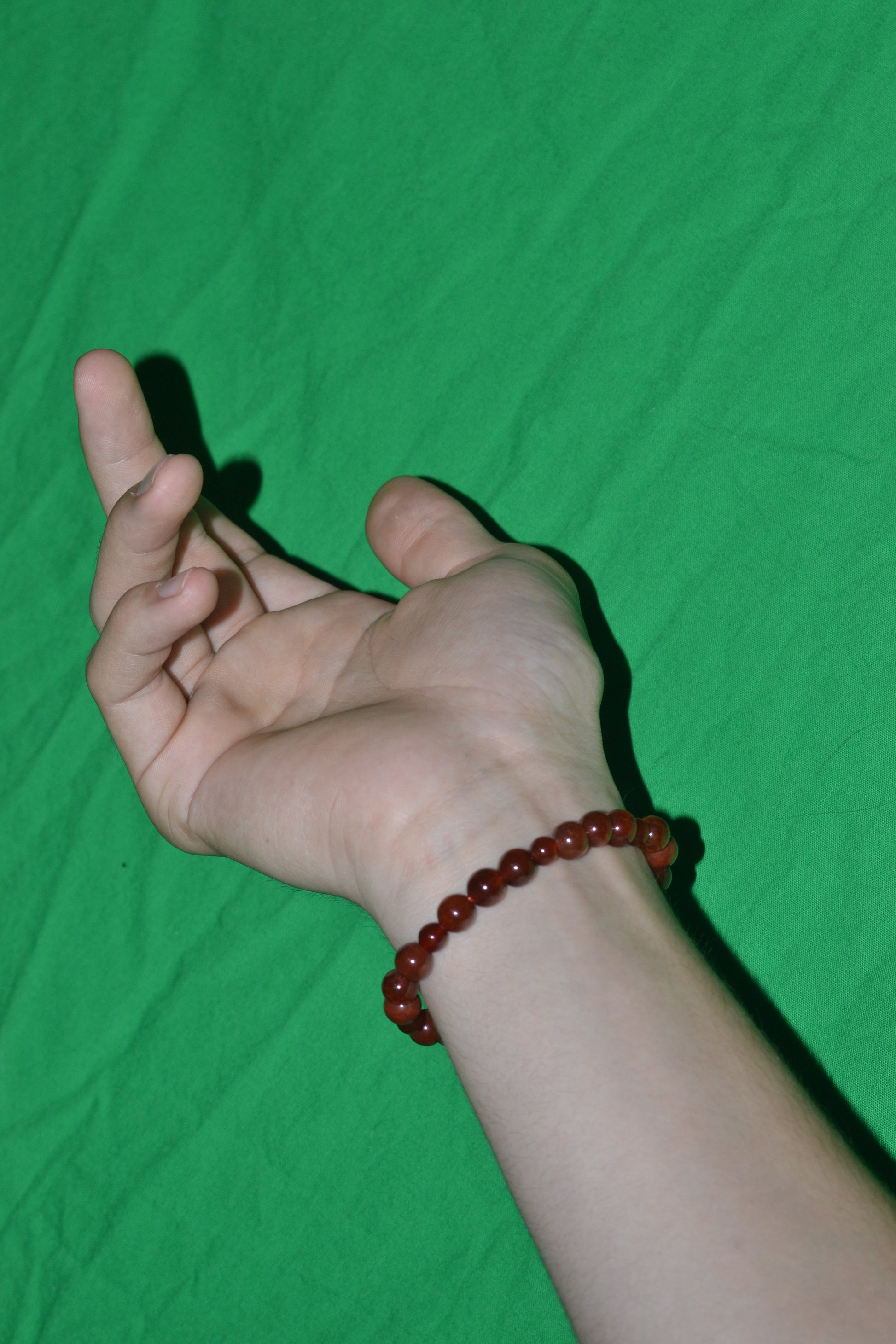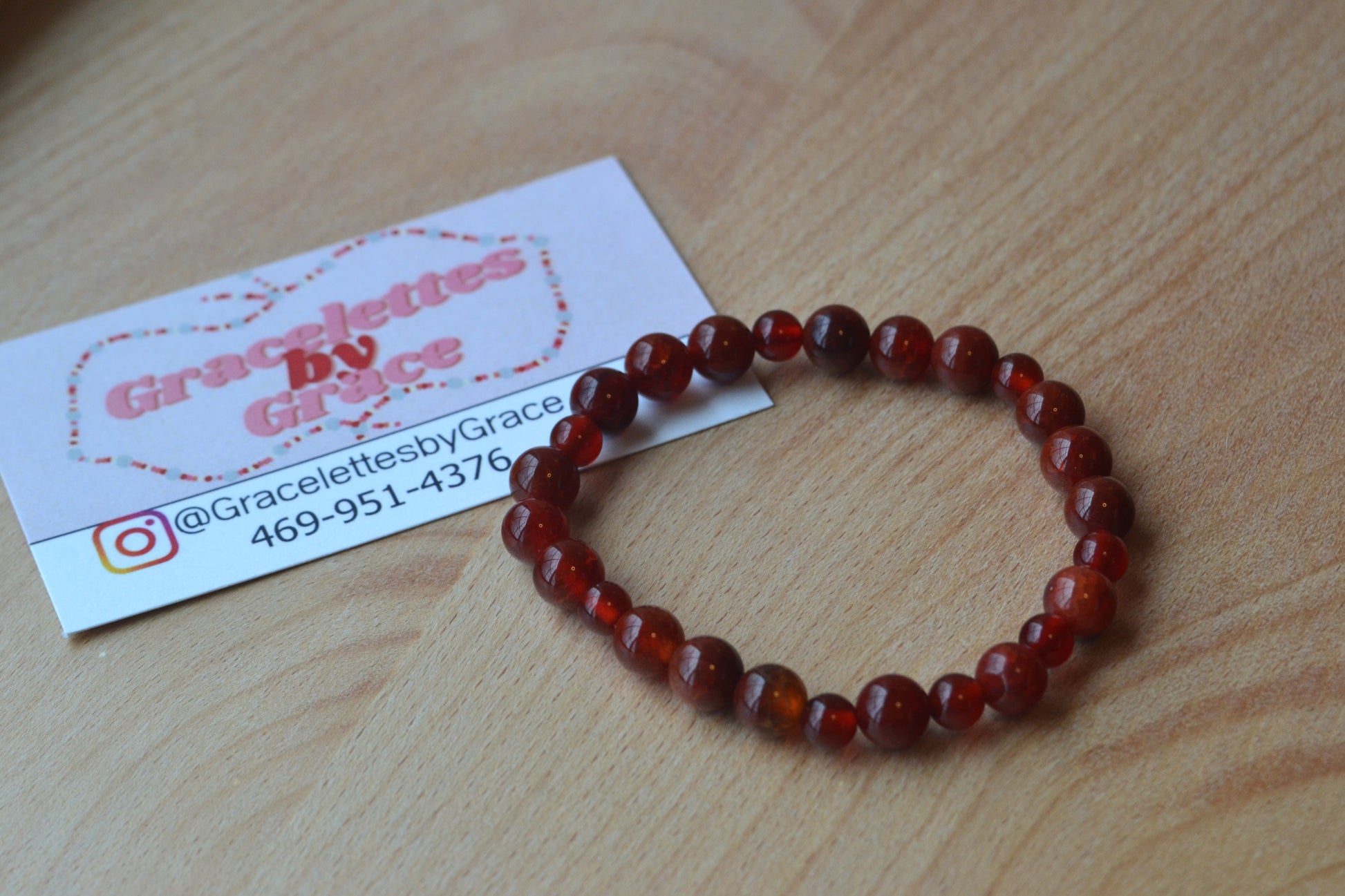 Materials: 6mm fire agate beads, 4mm carnelian beads