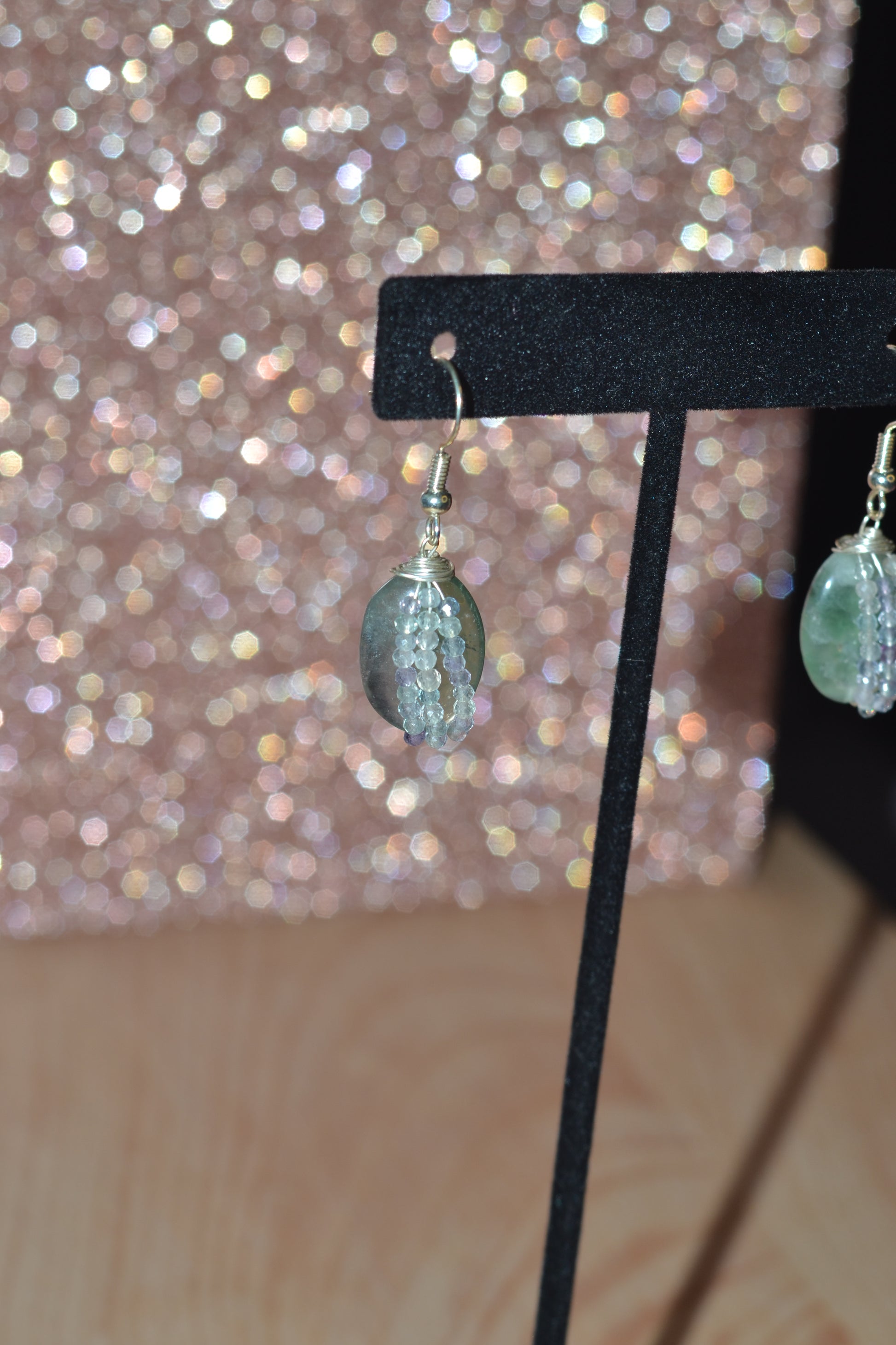 Step into flow, focus, and feminine grace with our Clarity Cascade earrings—handcrafted with 27 faceted fluorite beads that shimmer in a dreamy spectrum of greens, purples, and blues. Each stone is carefully wrapped in sterling silver wire and suspended from hypoallergenic, gold-plated sterling silver hooks for all-day comfort and brilliance.