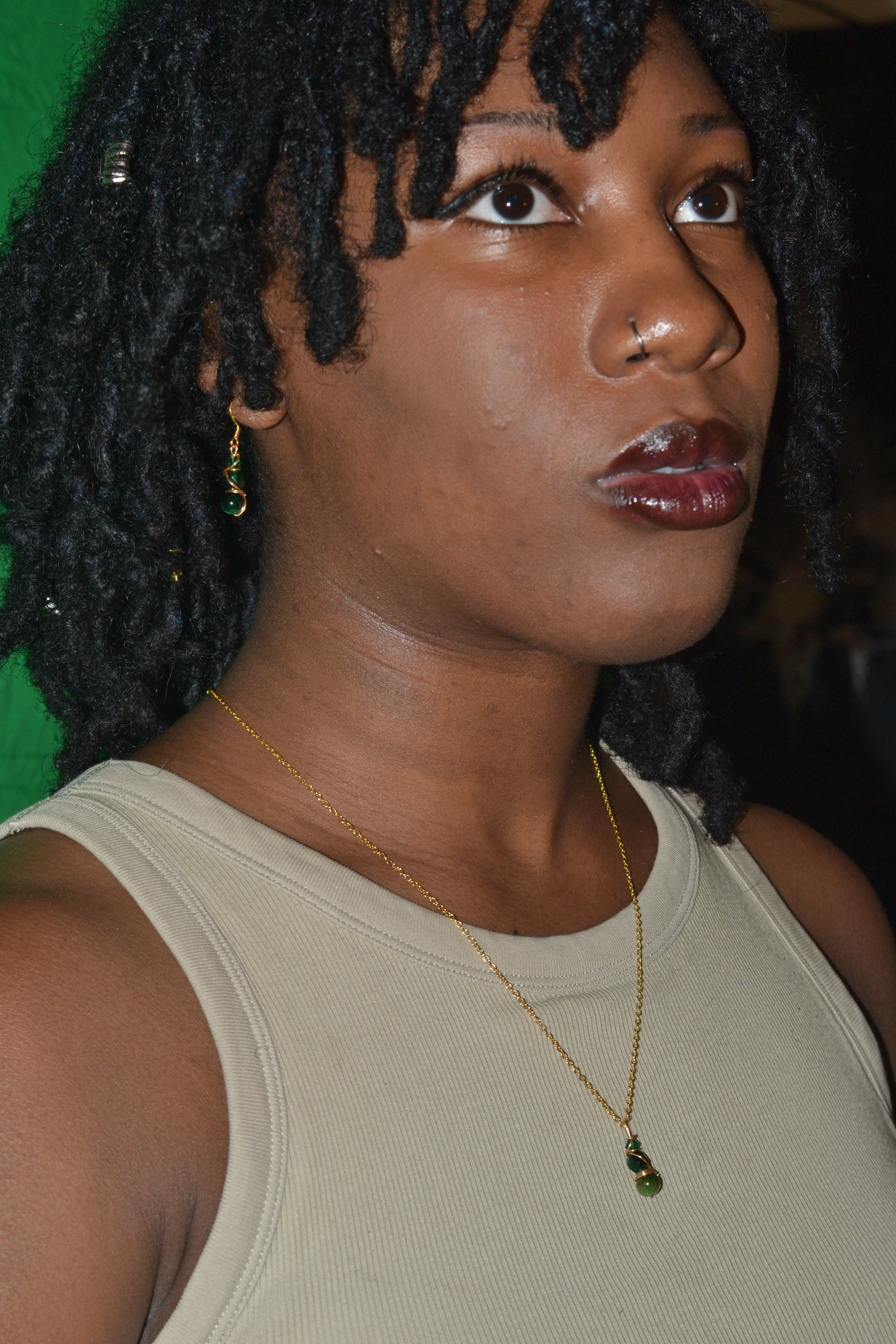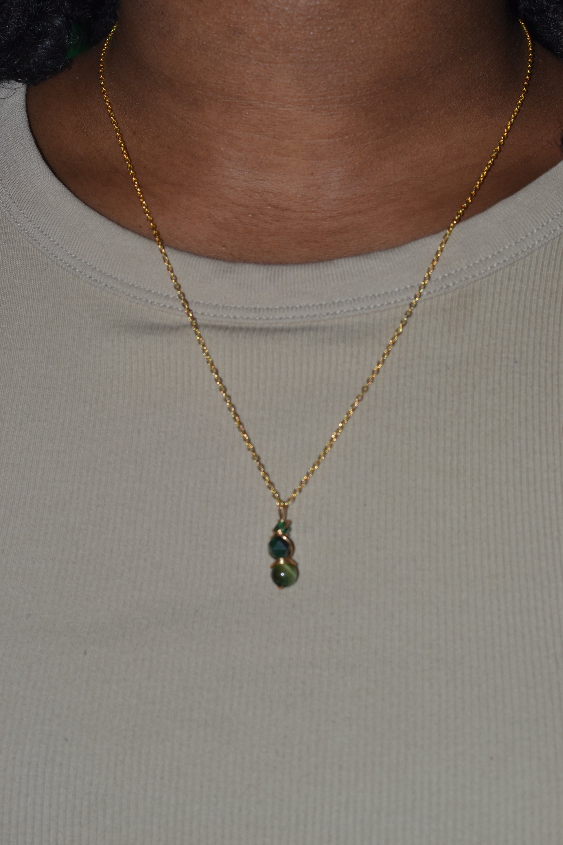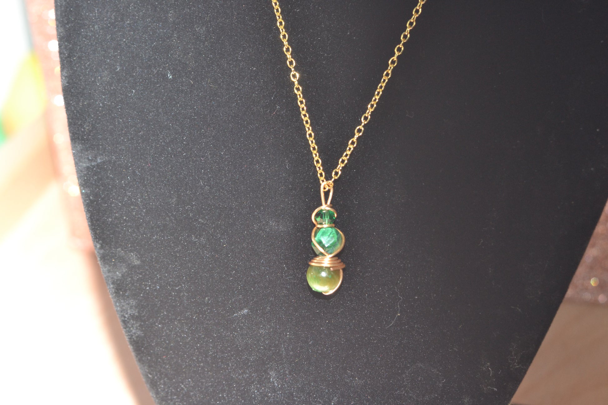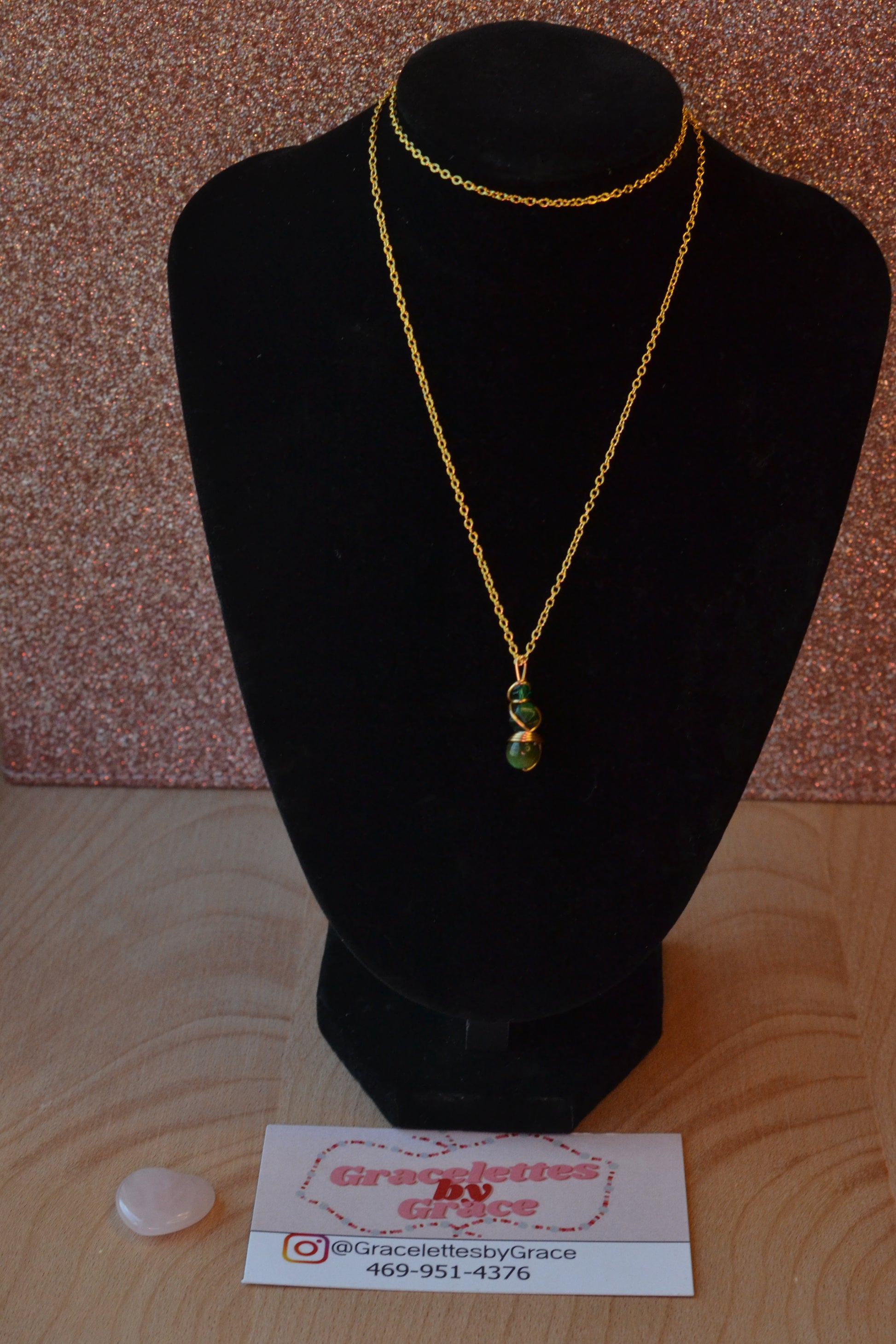 • Pendant: 1" 3-tiered Green Tiger’s Eye, topped with faceted green crystal