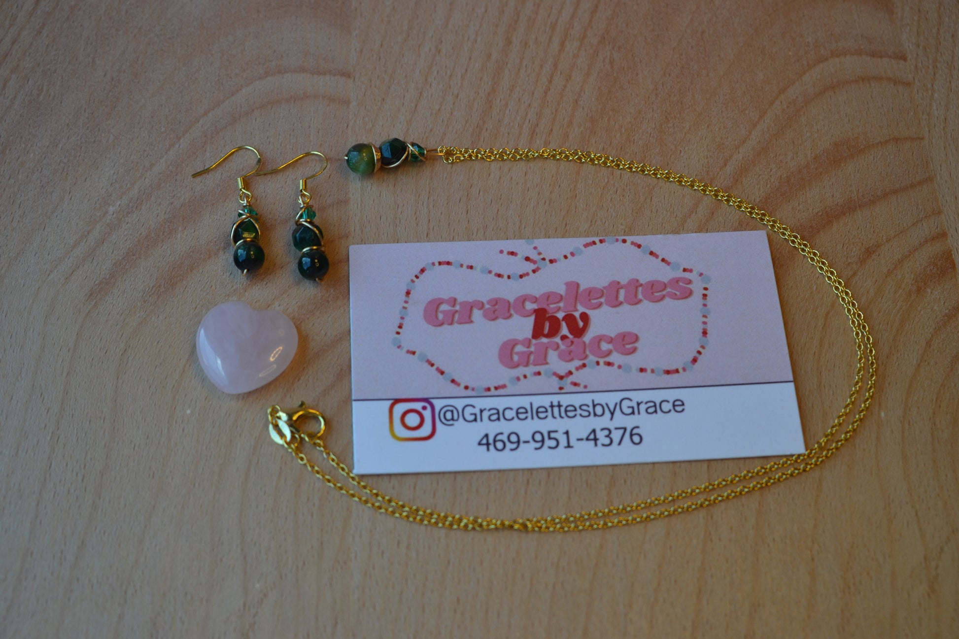 Green Tiger’s Eye blends the stabilizing power of earth with the quick clarity of light — offering both protection and momentum. This set is for the person who’s ready to walk forward with confidence, grounded wisdom, and vibrant heart energy.