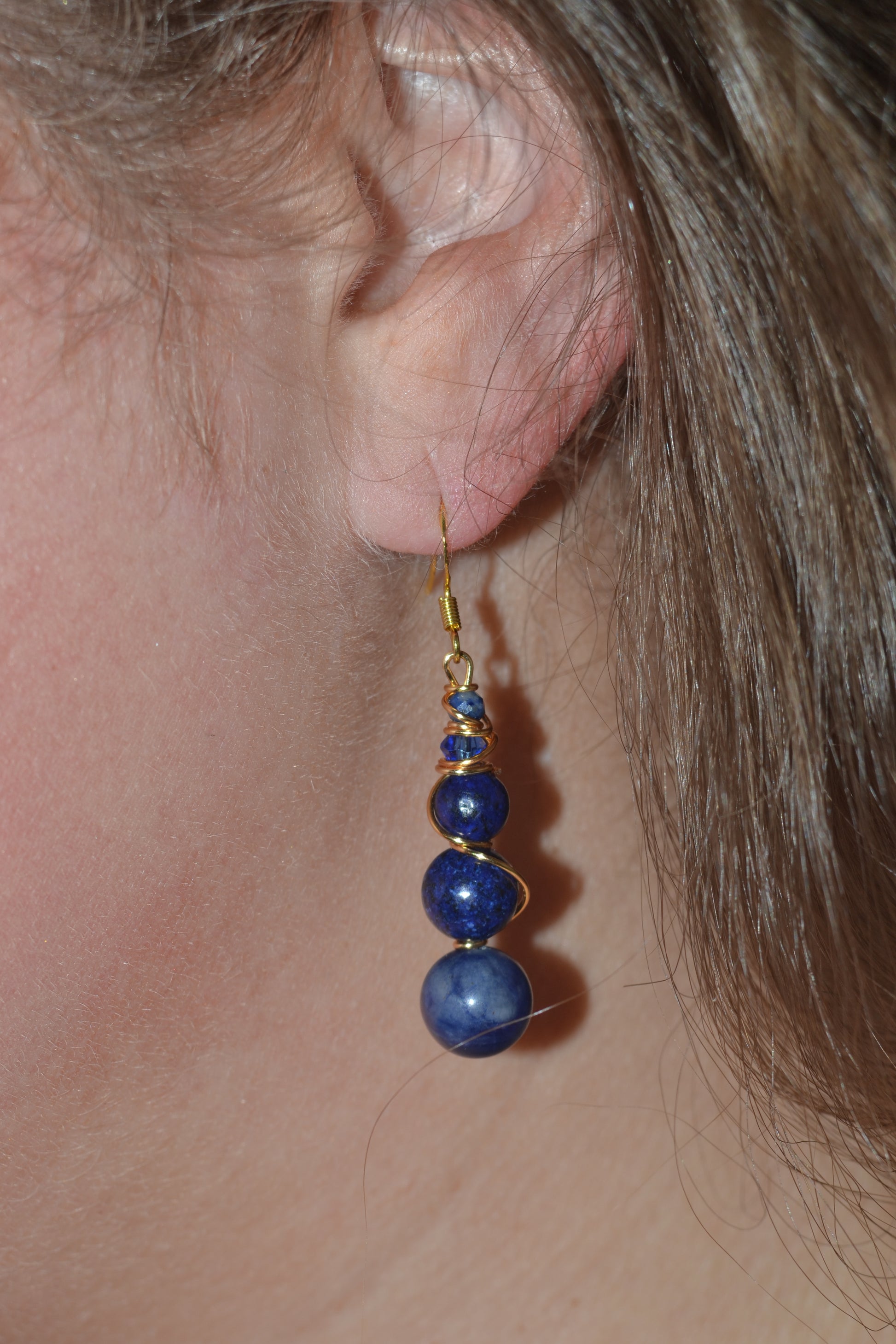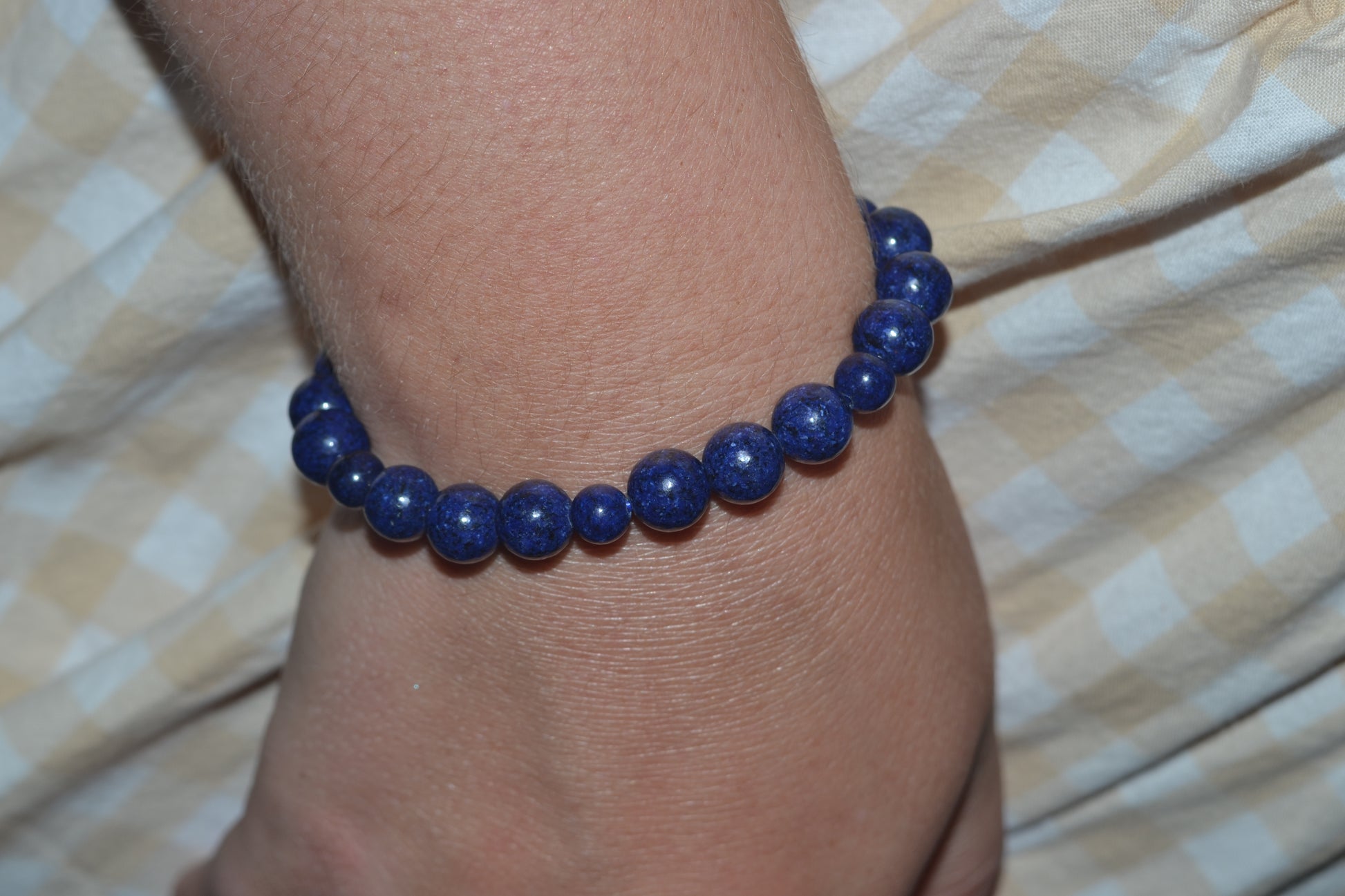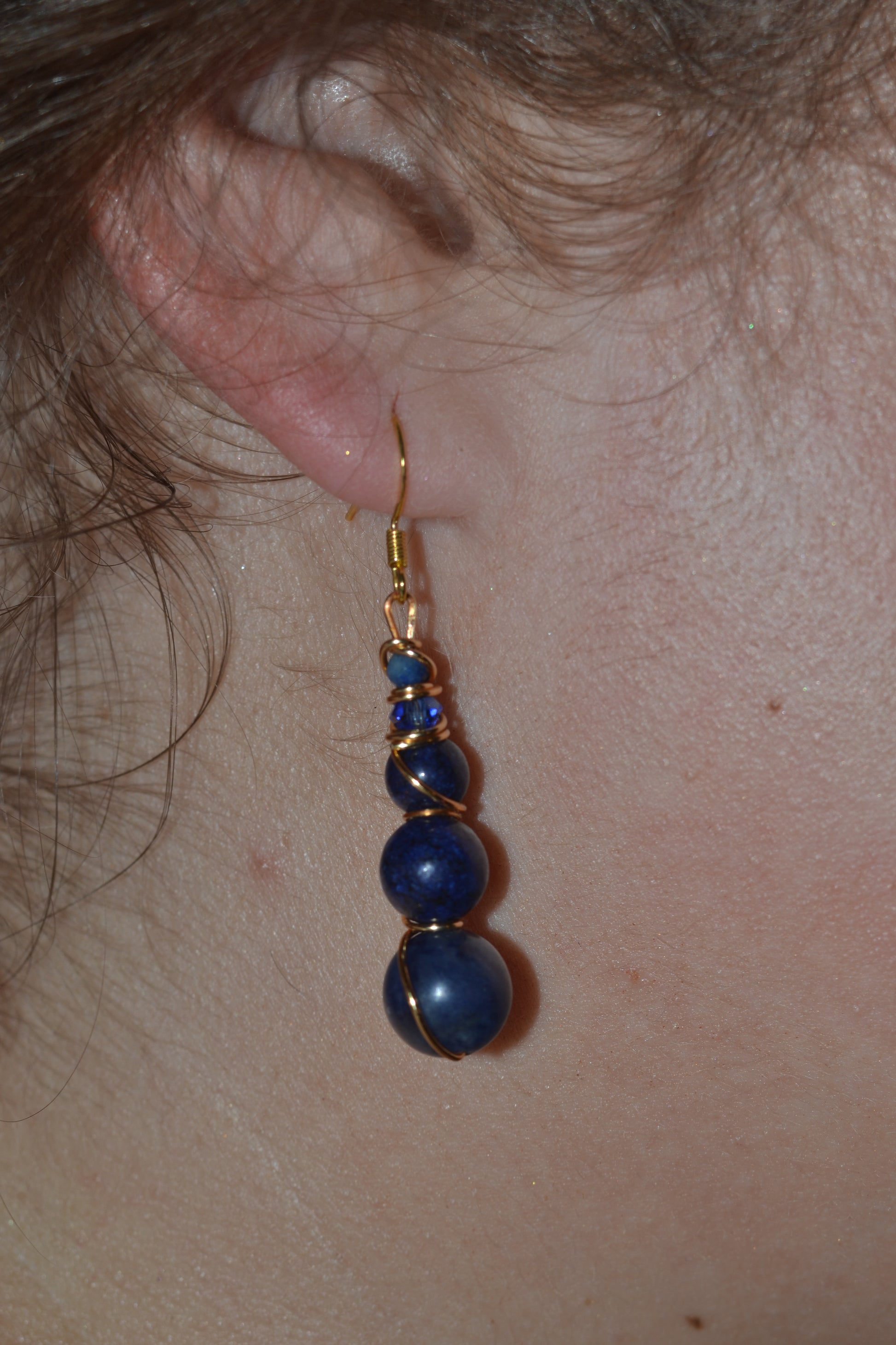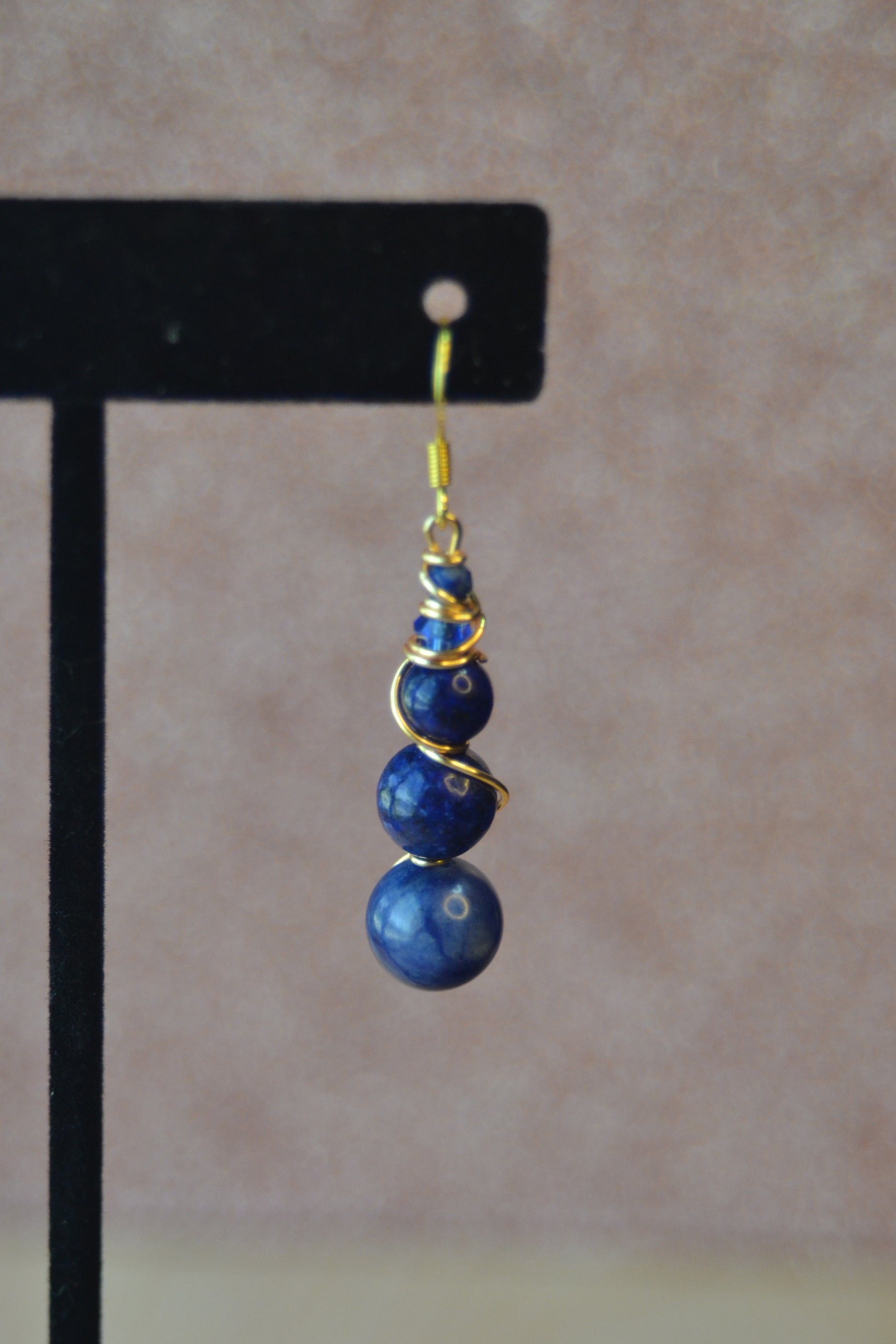 Step into your truth with this handcrafted lapis lazuli bracelet and earring set, designed to empower your voice and intuition. The bracelet is made with 6mm and 4mm lapis beads, offering a bold yet elegant statement on the wrist. The matching 2-inch earrings feature five delicate tiers of rich blue lapis, wrapped in gold-plated silver wire and finished with gold-plated sterling silver hooks for comfort and luxury.