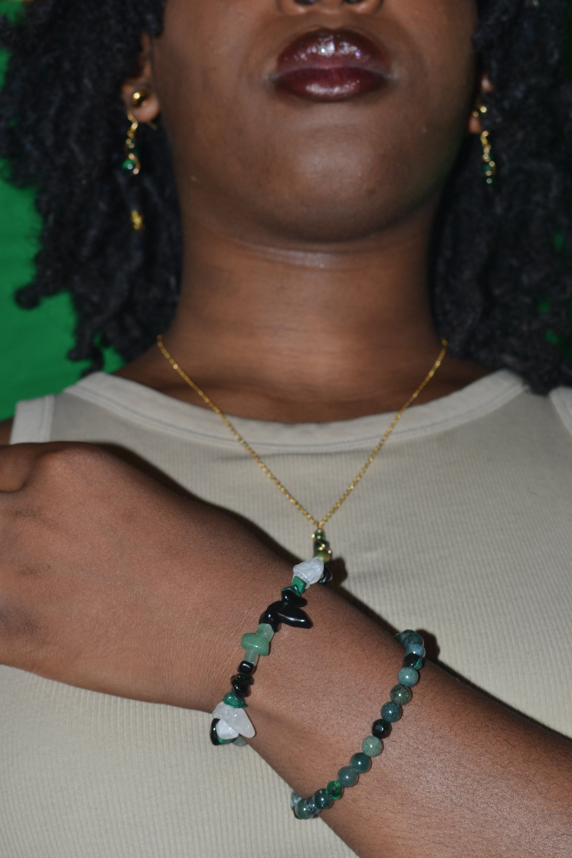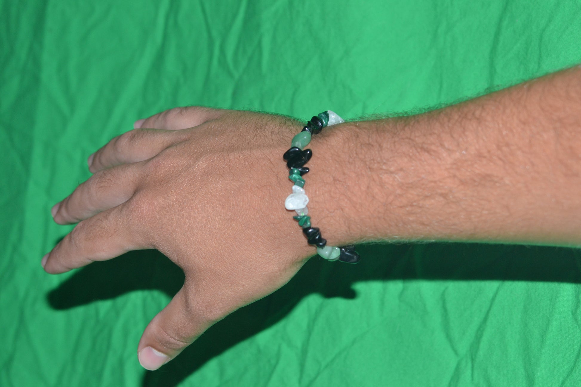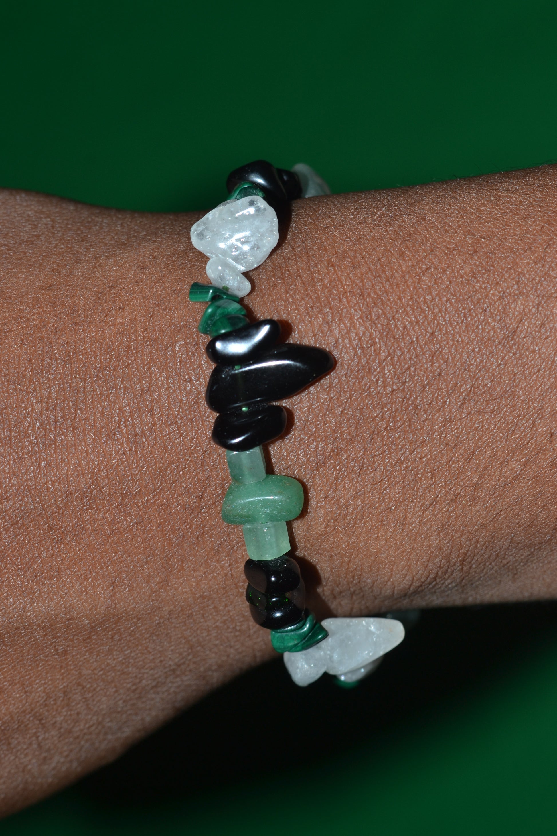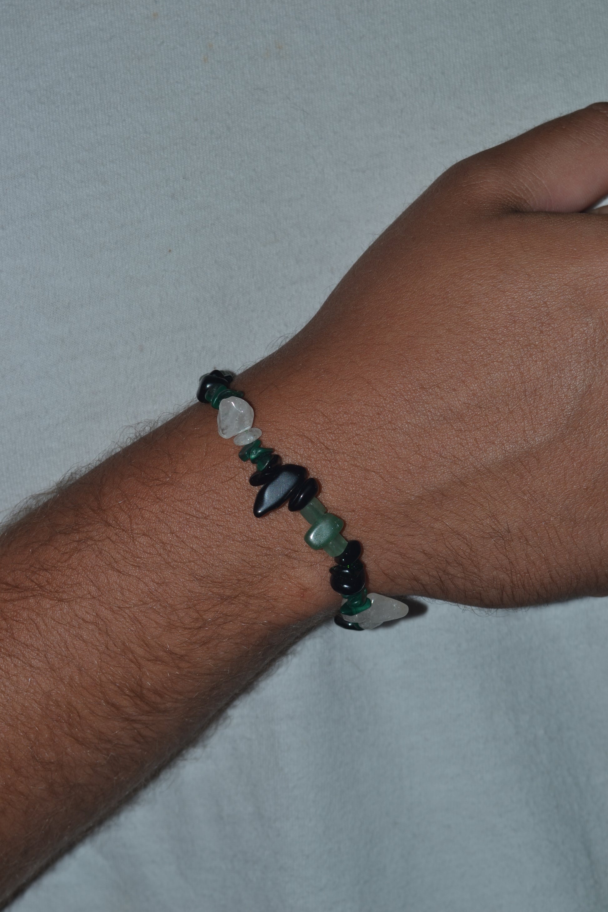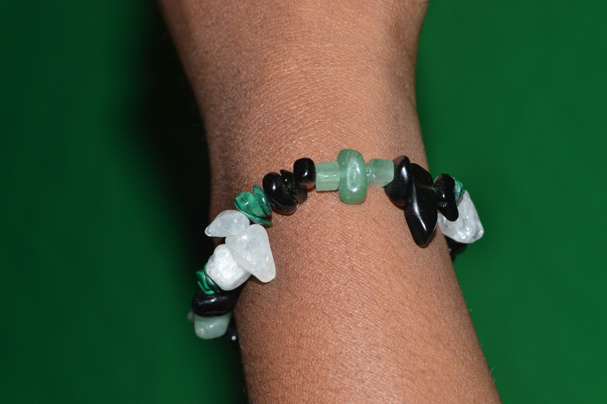 Masculine Energy Chip Bead Bracelet – Onyx, Quartz, Malachite & Aventurine