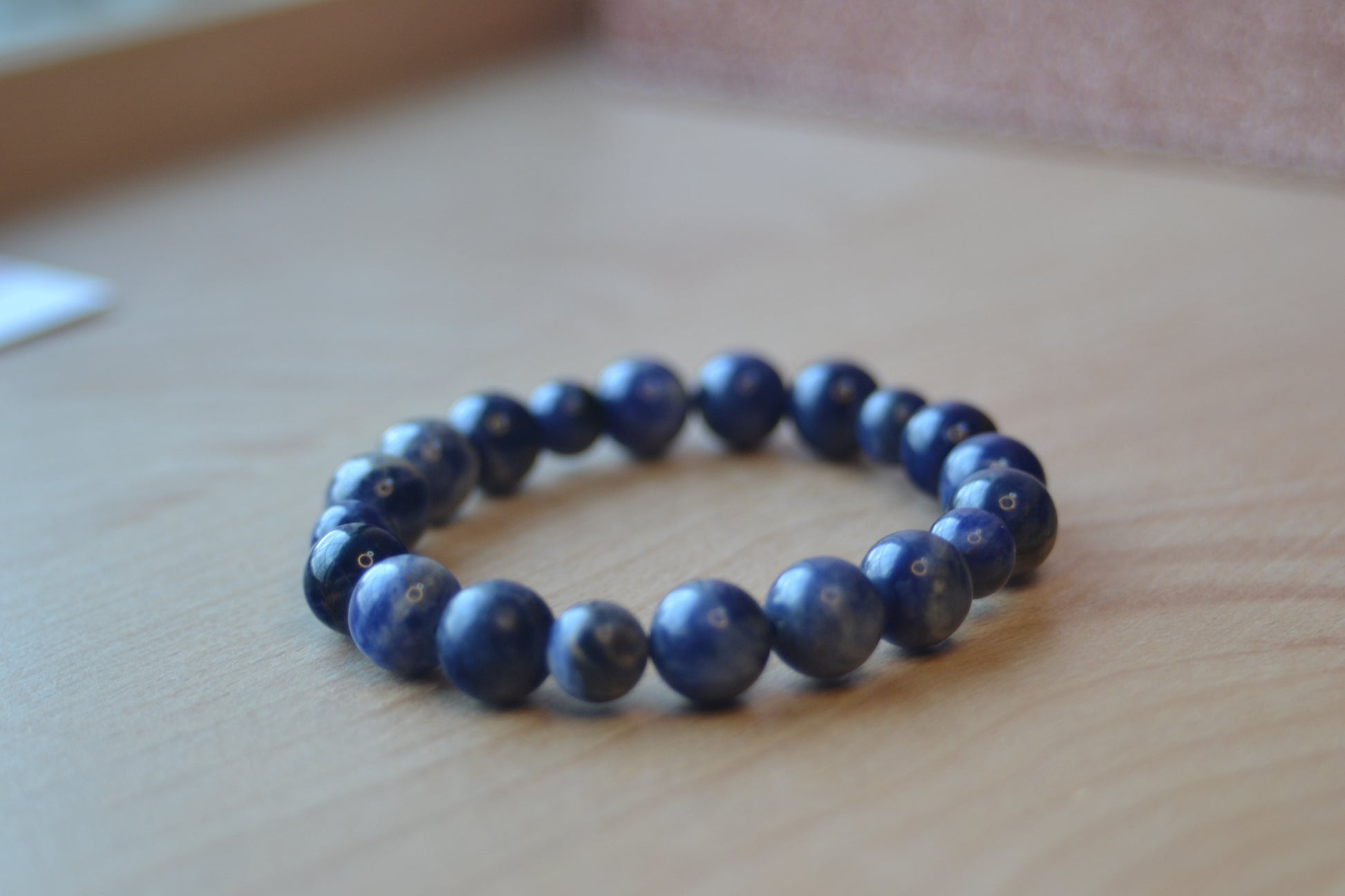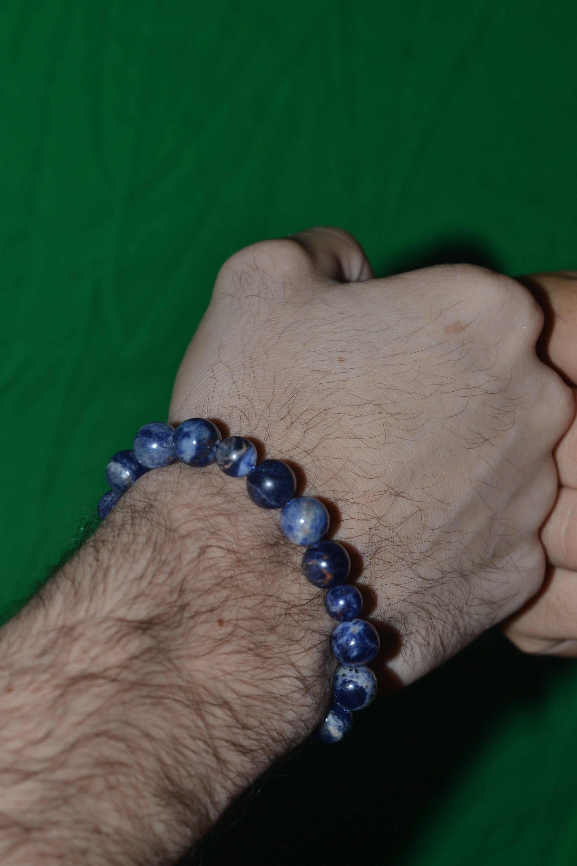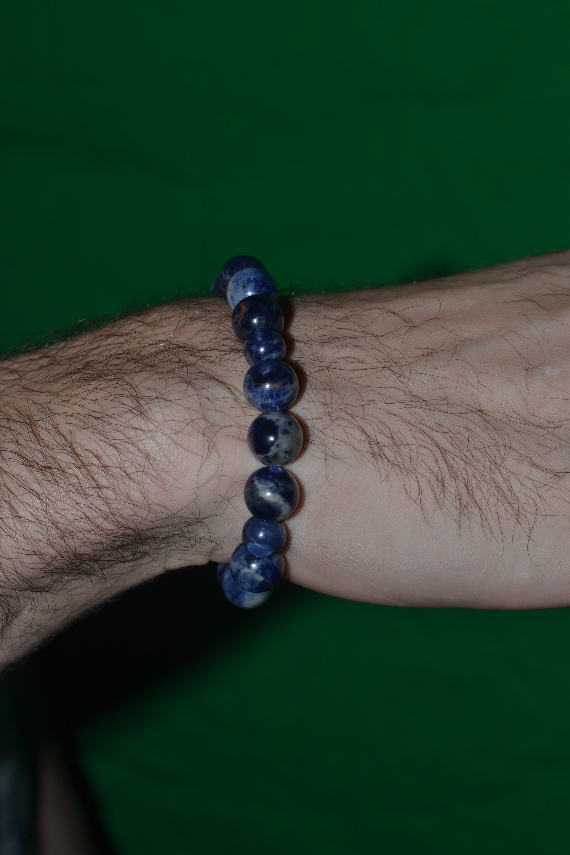 This handmade masculine bracelet features bold 8mm and 6mm sodalite beads, bringing together deep ocean blue hues with natural white marbling. Sodalite is a stone of mental clarity, confidence, and grounded communication — making this bracelet ideal for those who lead with calm presence and thoughtful strength.