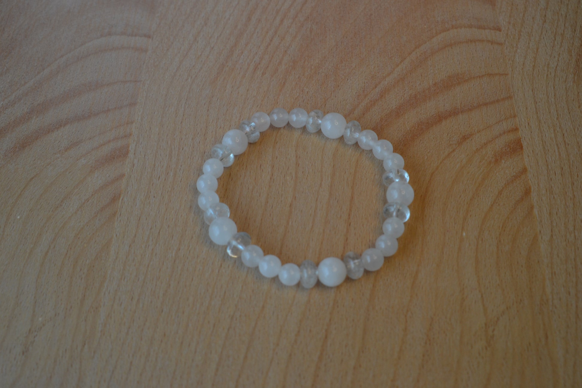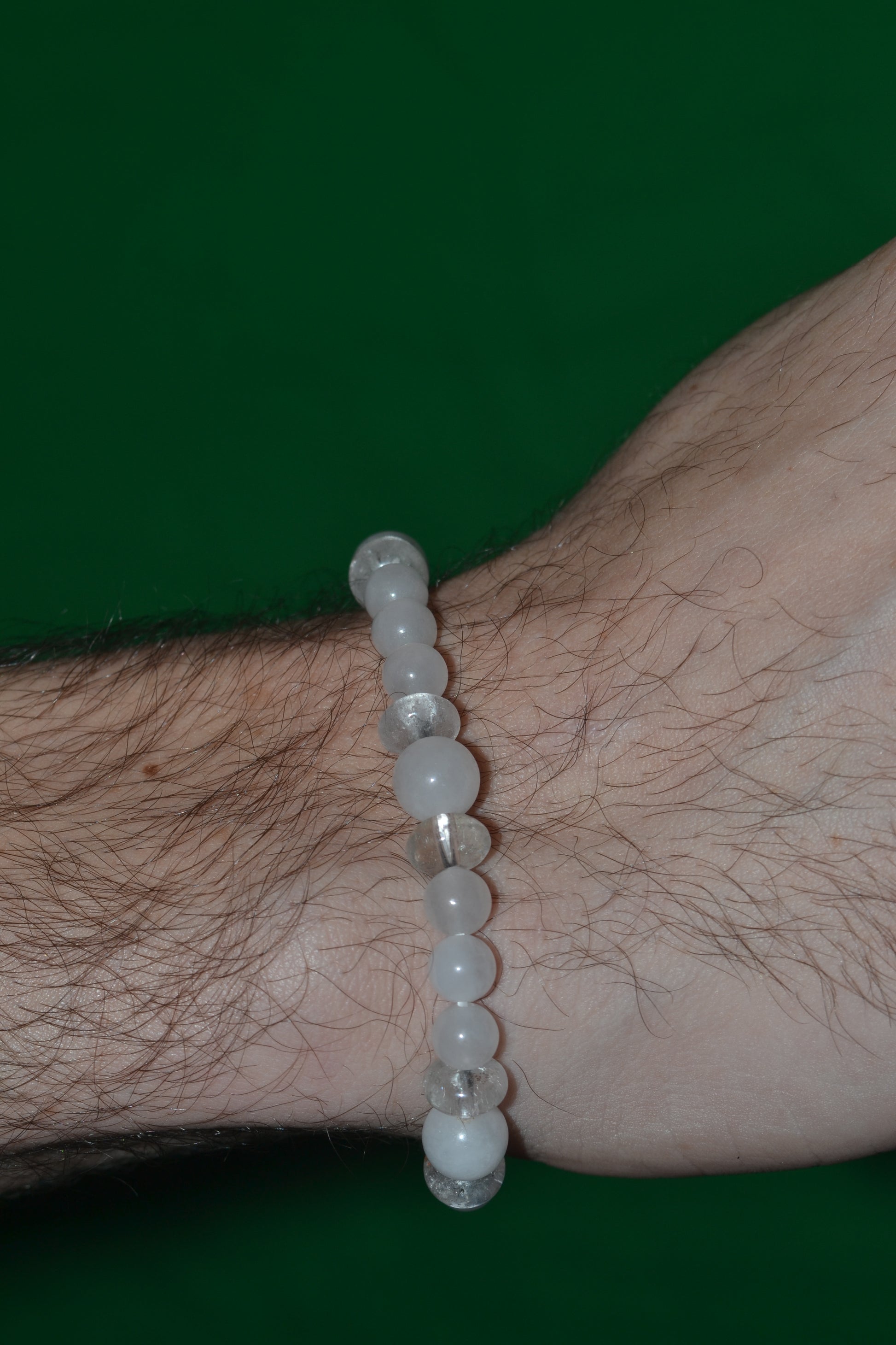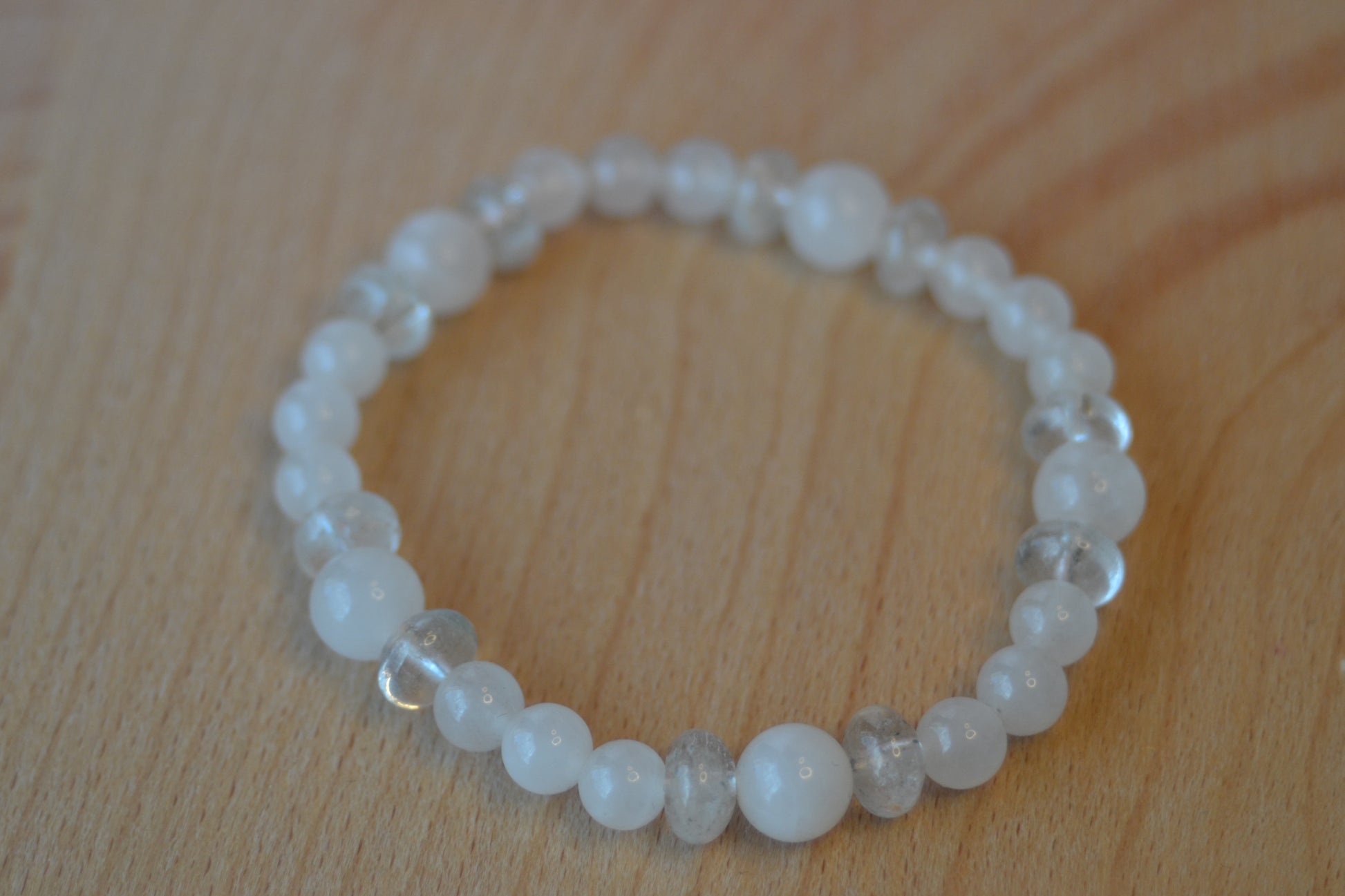 Moonstone enhances intuition and emotional balance, while quartz clears the mind and amplifies spiritual connection. Together, they create a bracelet that supports deep inner knowing and a luminous presence — perfect for new beginnings, full moons, or simply walking through life in your soft power.