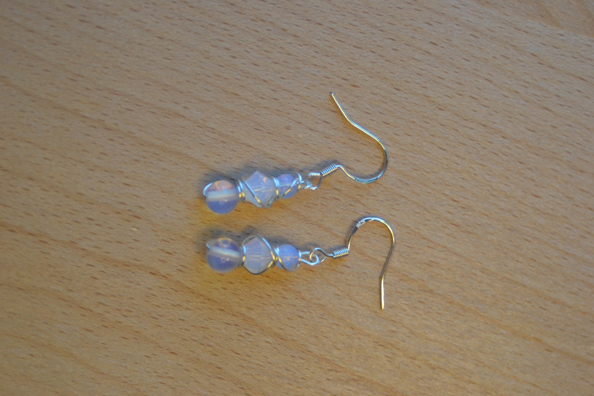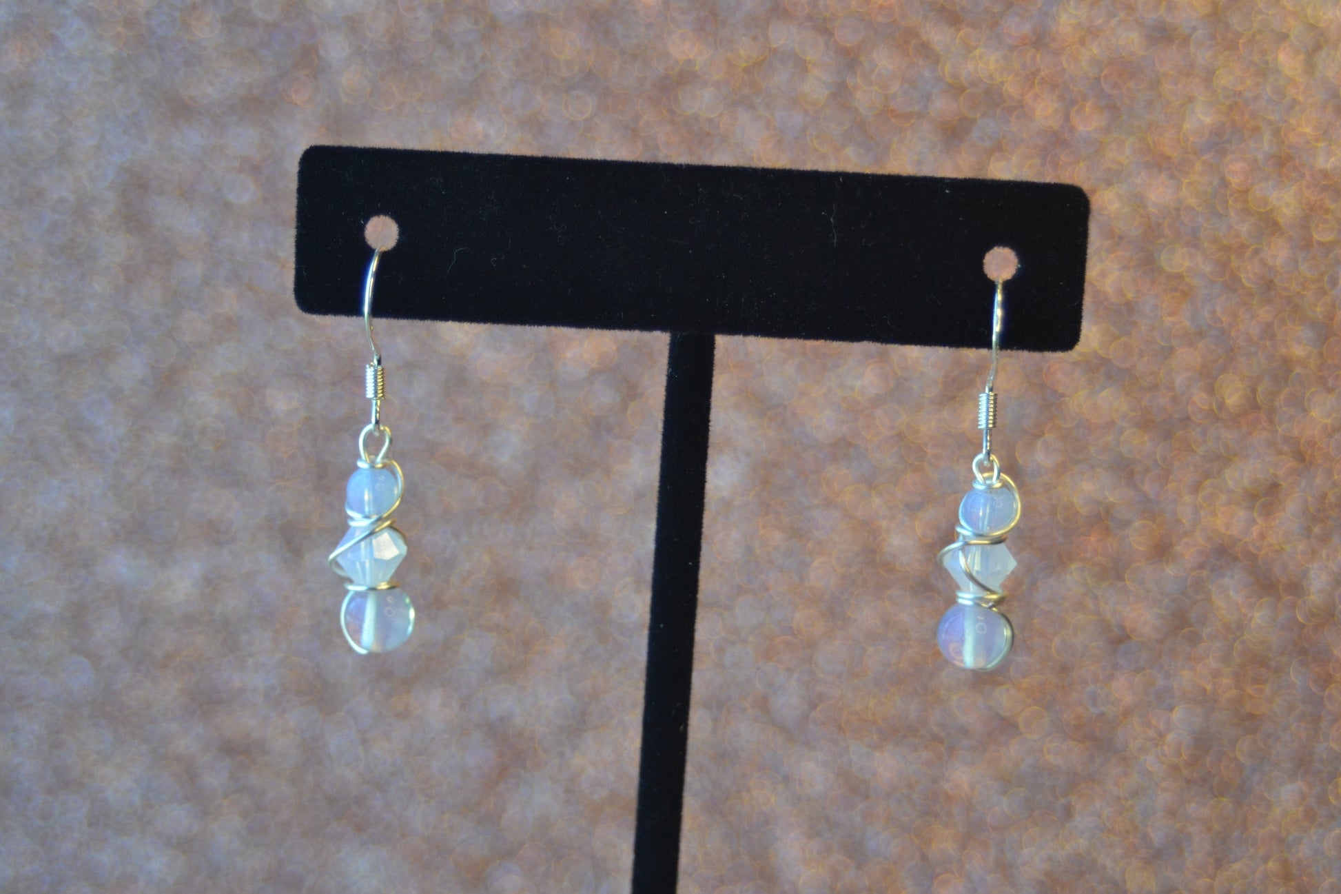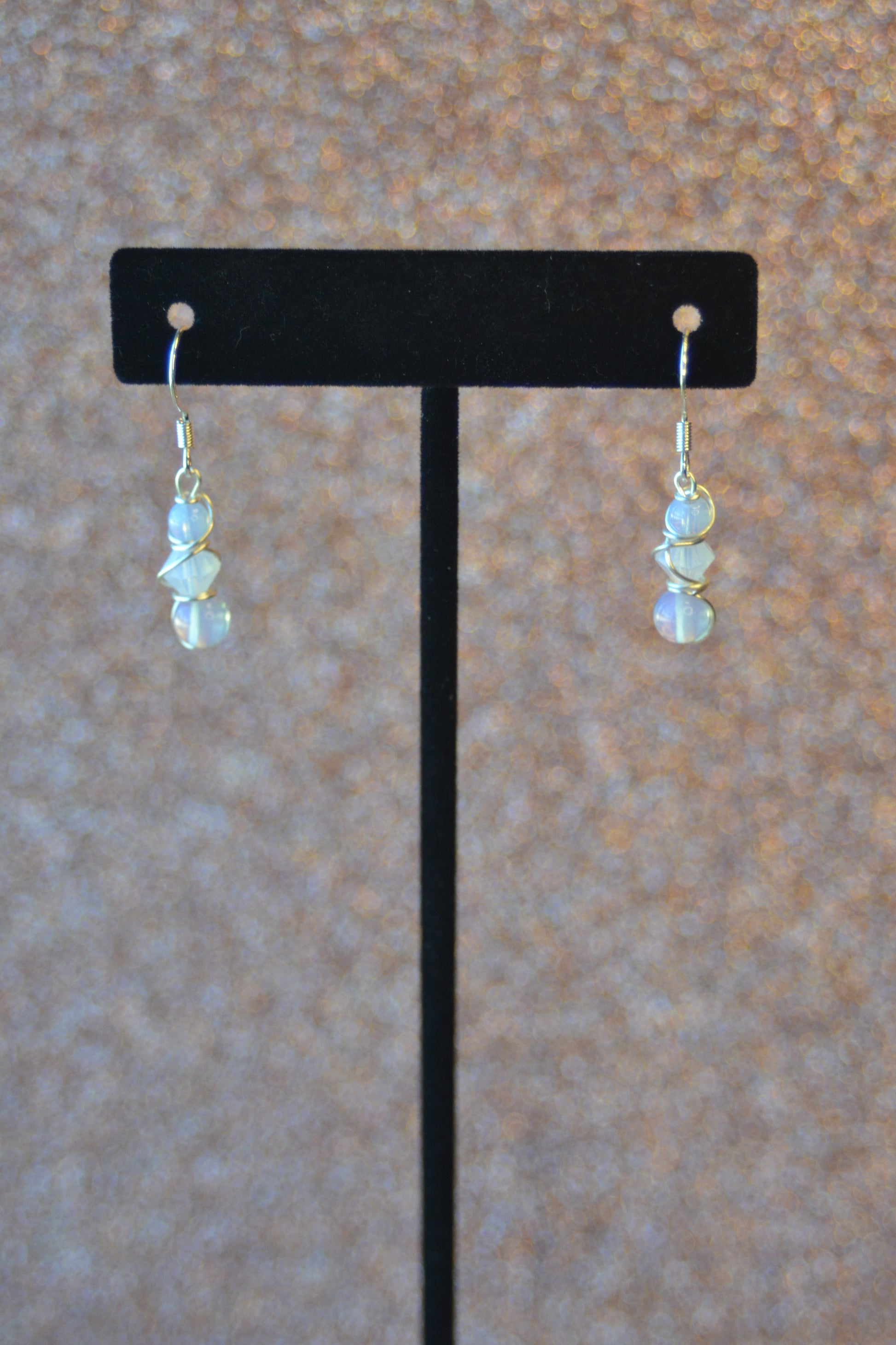 Step into luminous calm with these delicate Moonlit Clarity Earrings, handcrafted to reflect inner light and serene strength. Each earring is 1 inch long, wrapped in silver wire, and built in a graceful 3-tiered design: