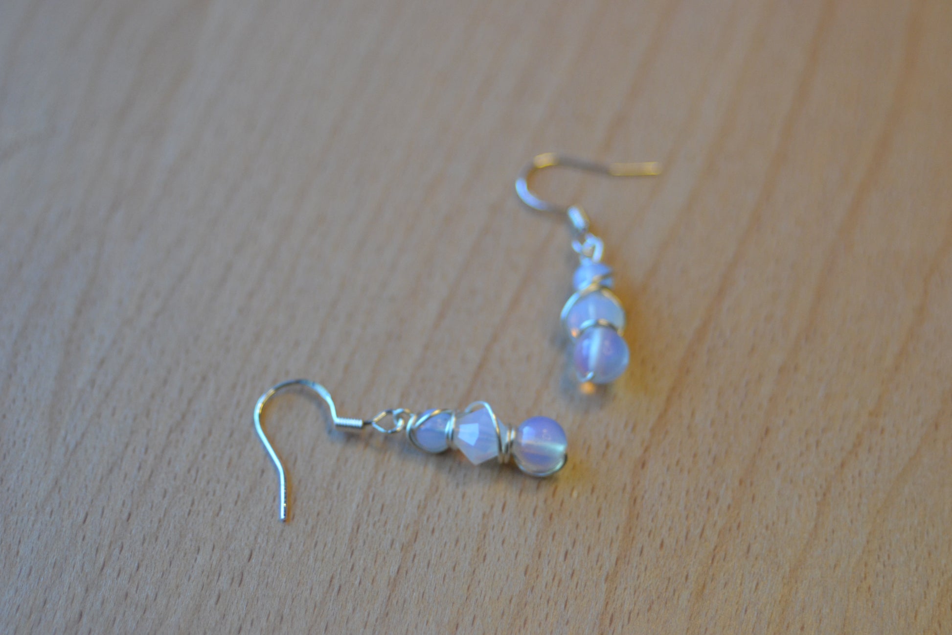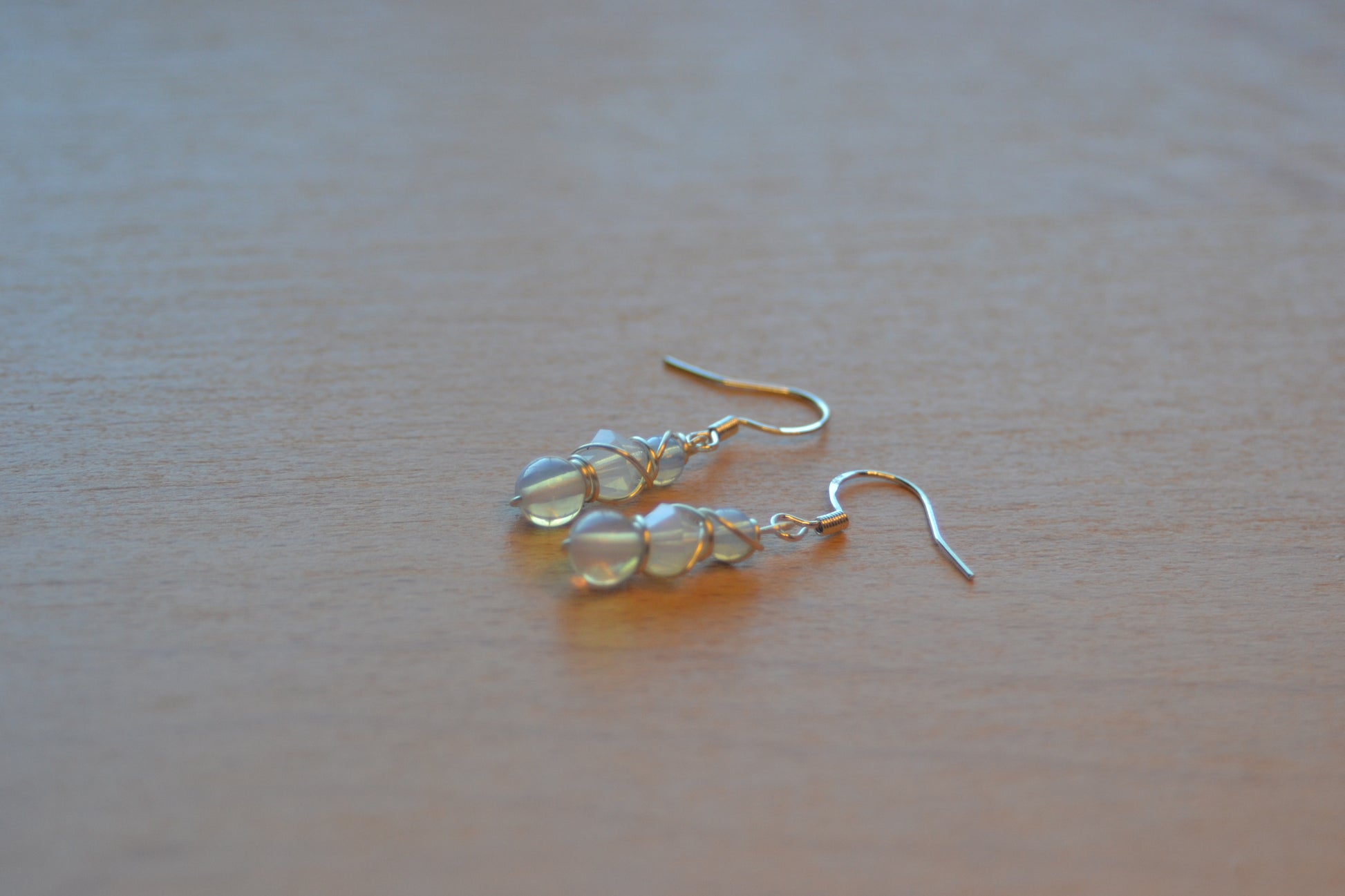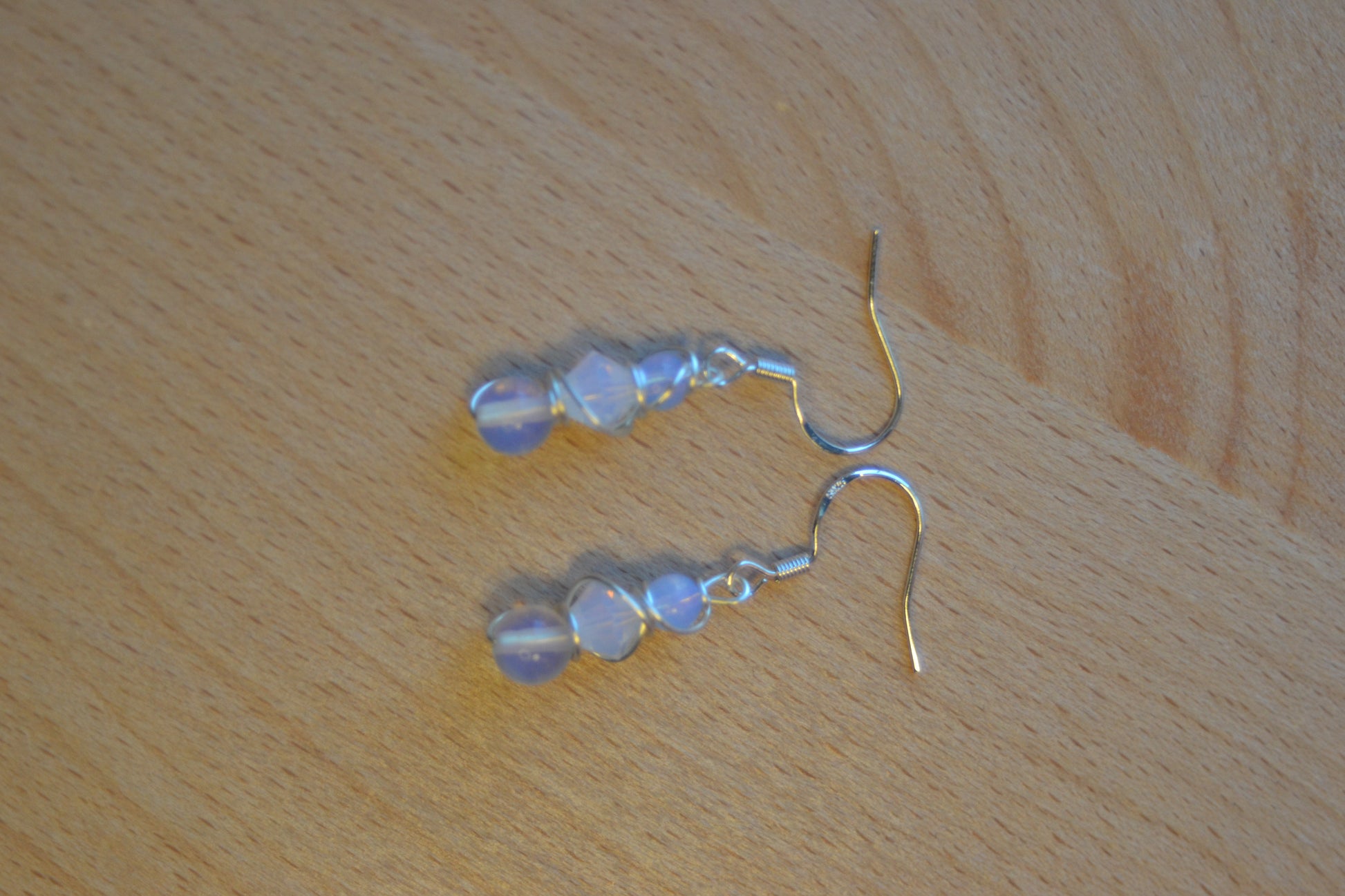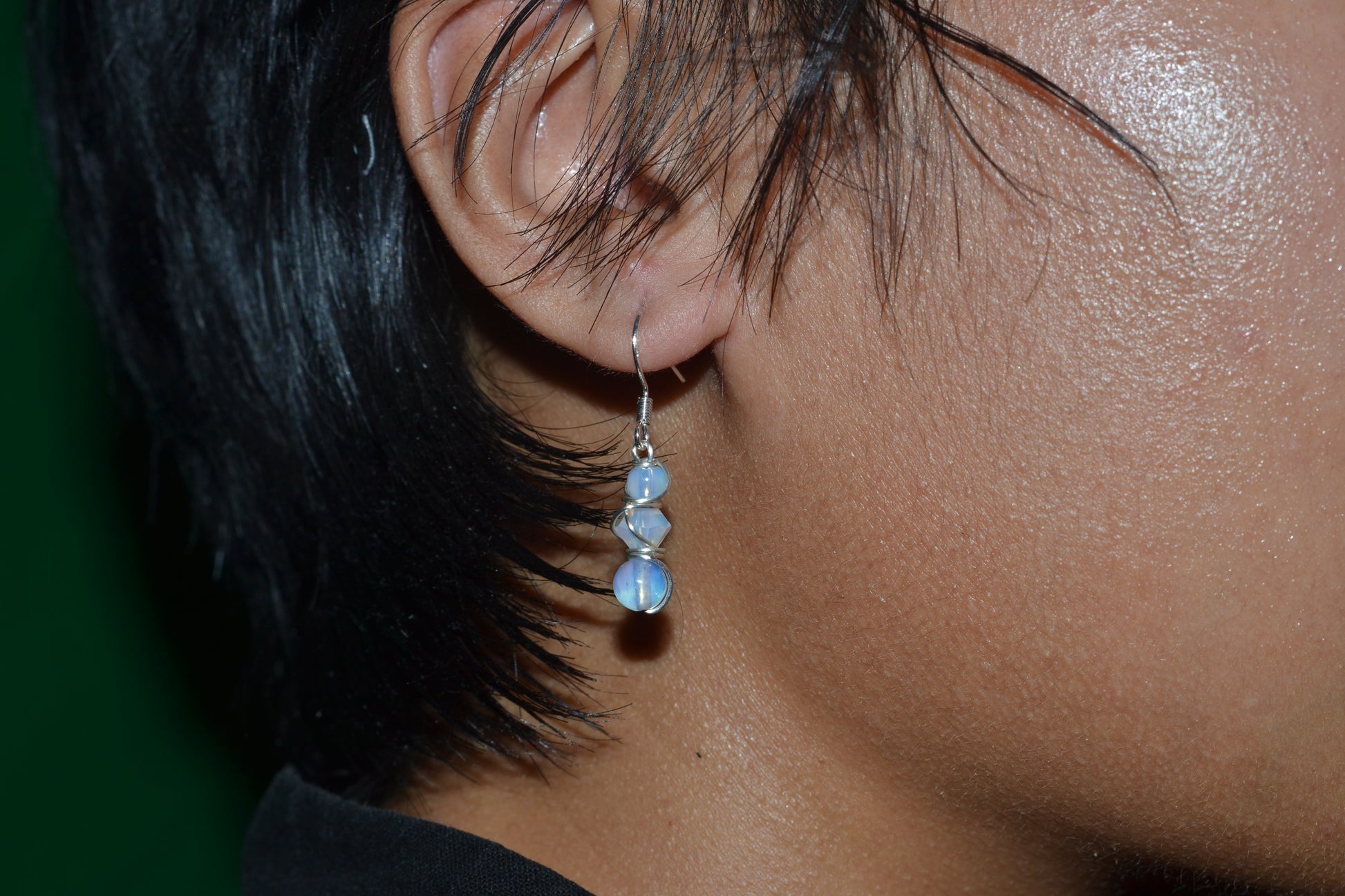 Step into luminous calm with these delicate Moonlit Clarity Earrings, handcrafted to reflect inner light and serene strength. Each earring is 1 inch long, wrapped in silver wire, and built in a graceful 3-tiered design: