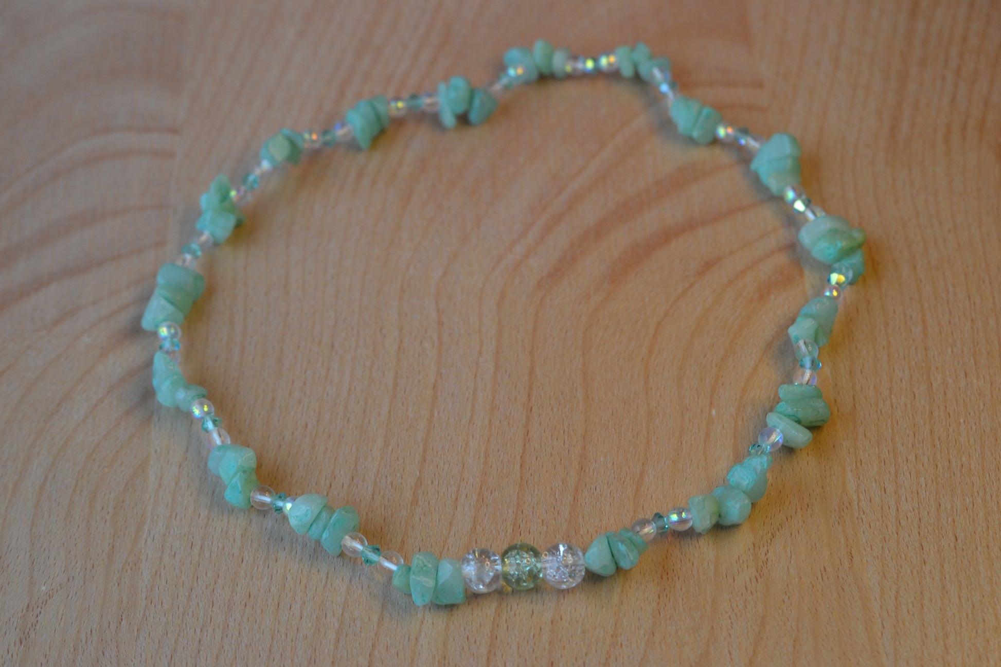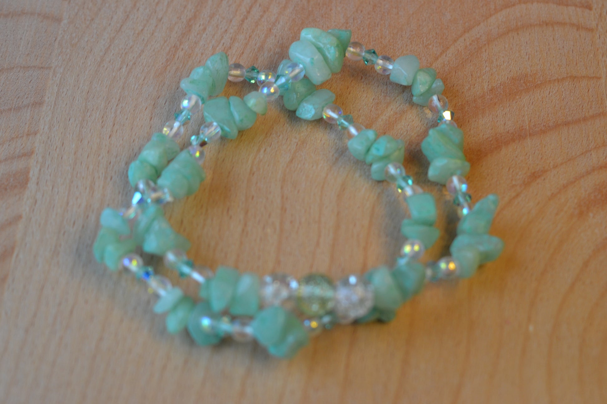 Materials: Hand-painted aventurine, aura bead spacers, faceted crystals