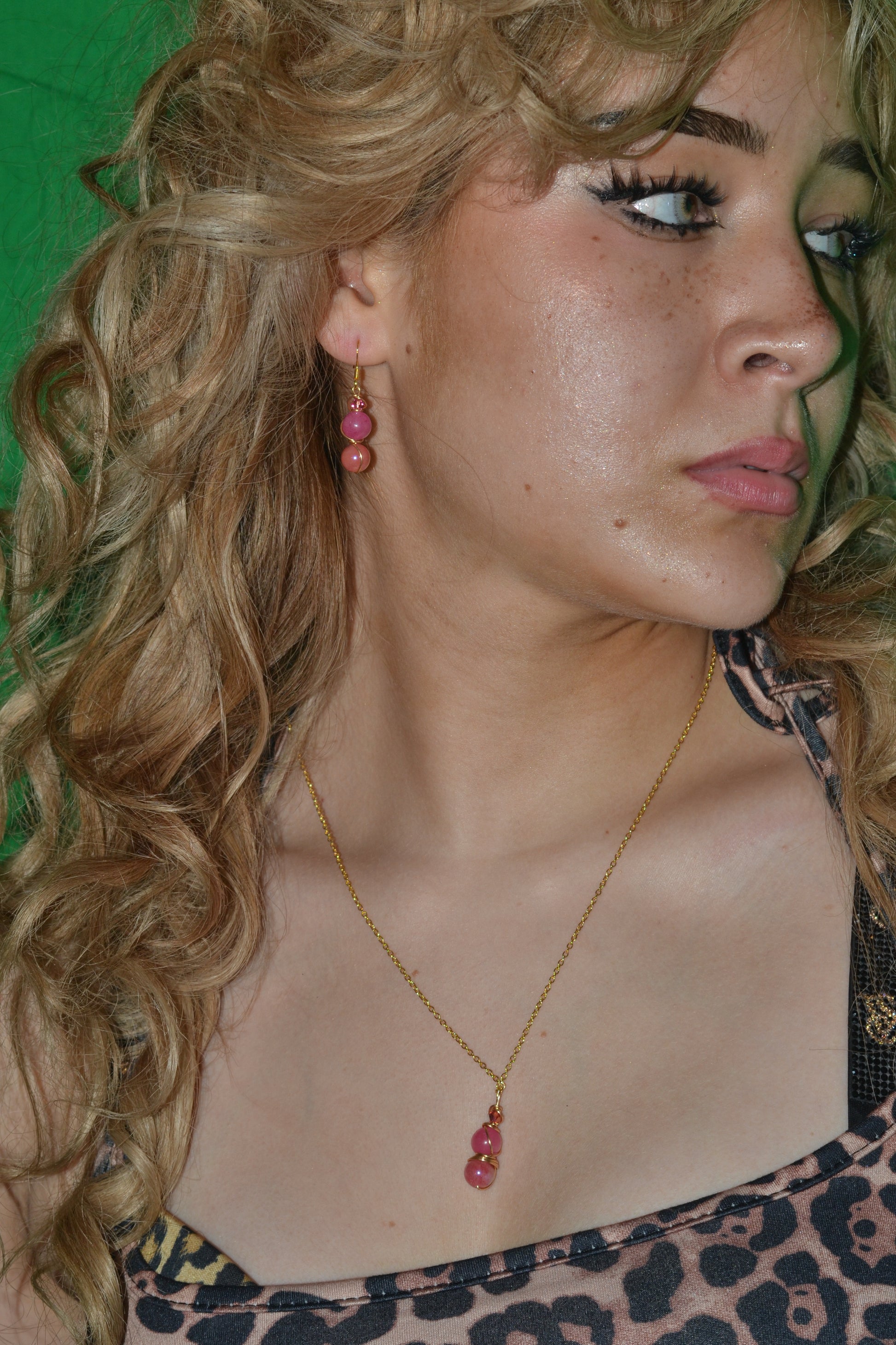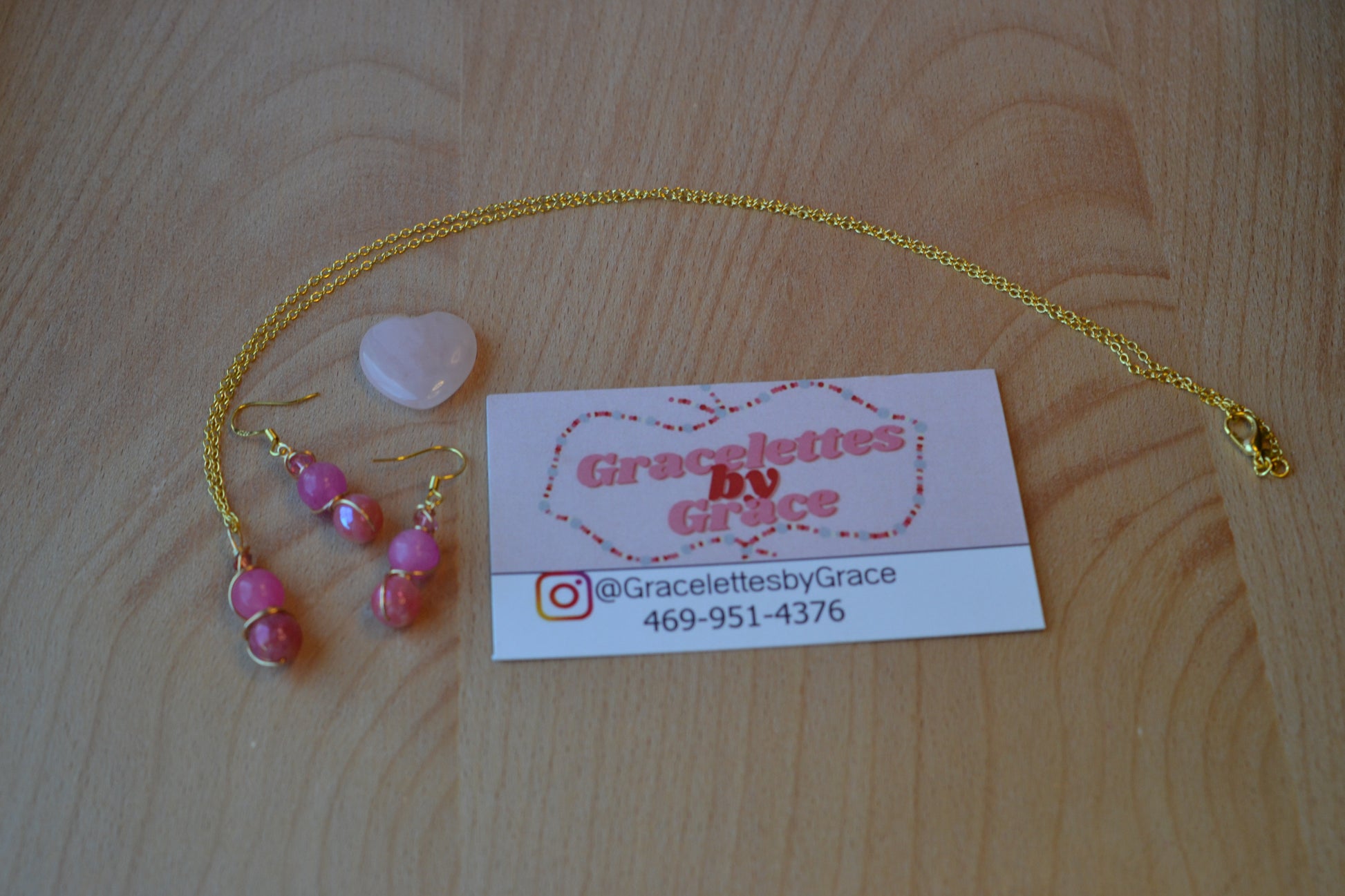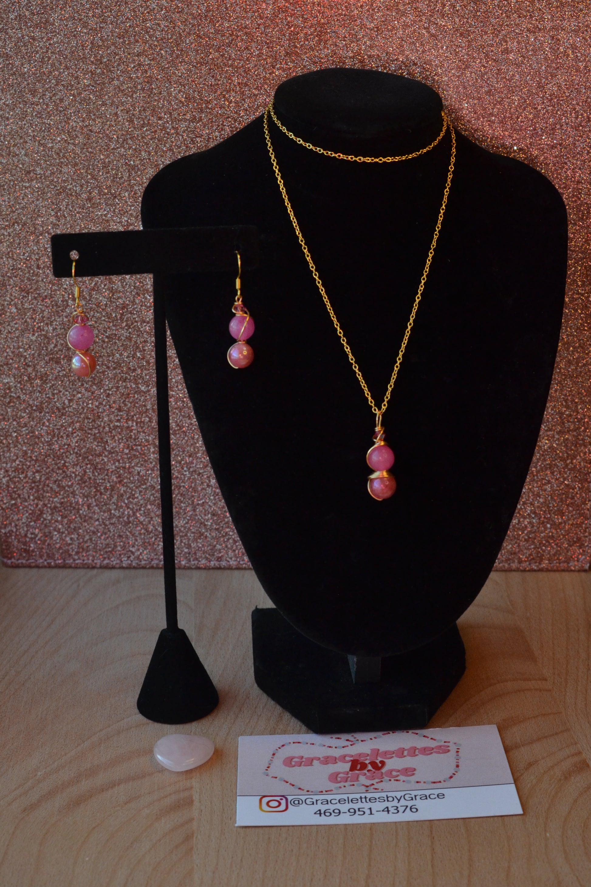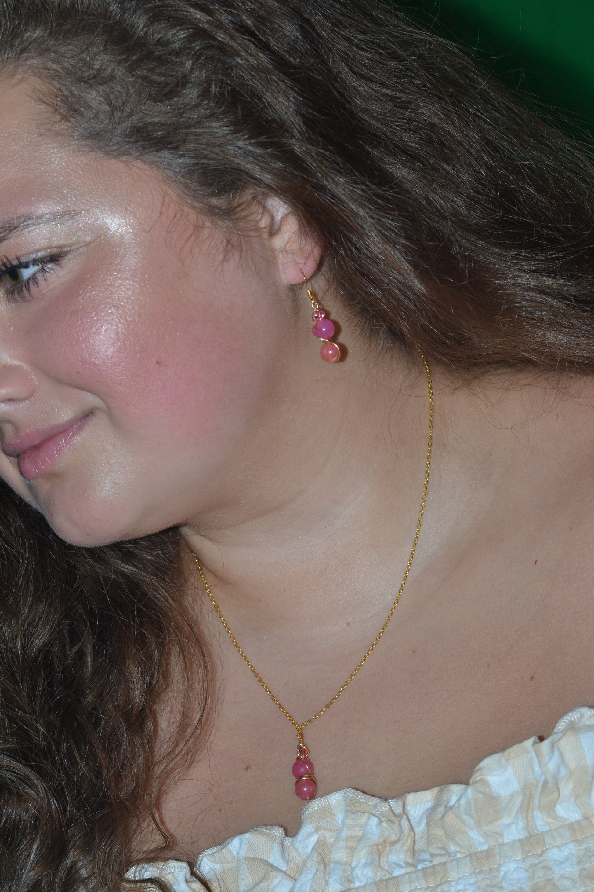 Pink Jade & Gold Set – Heart-Centered Confidence & Grace (925 Necklace + Earrings)