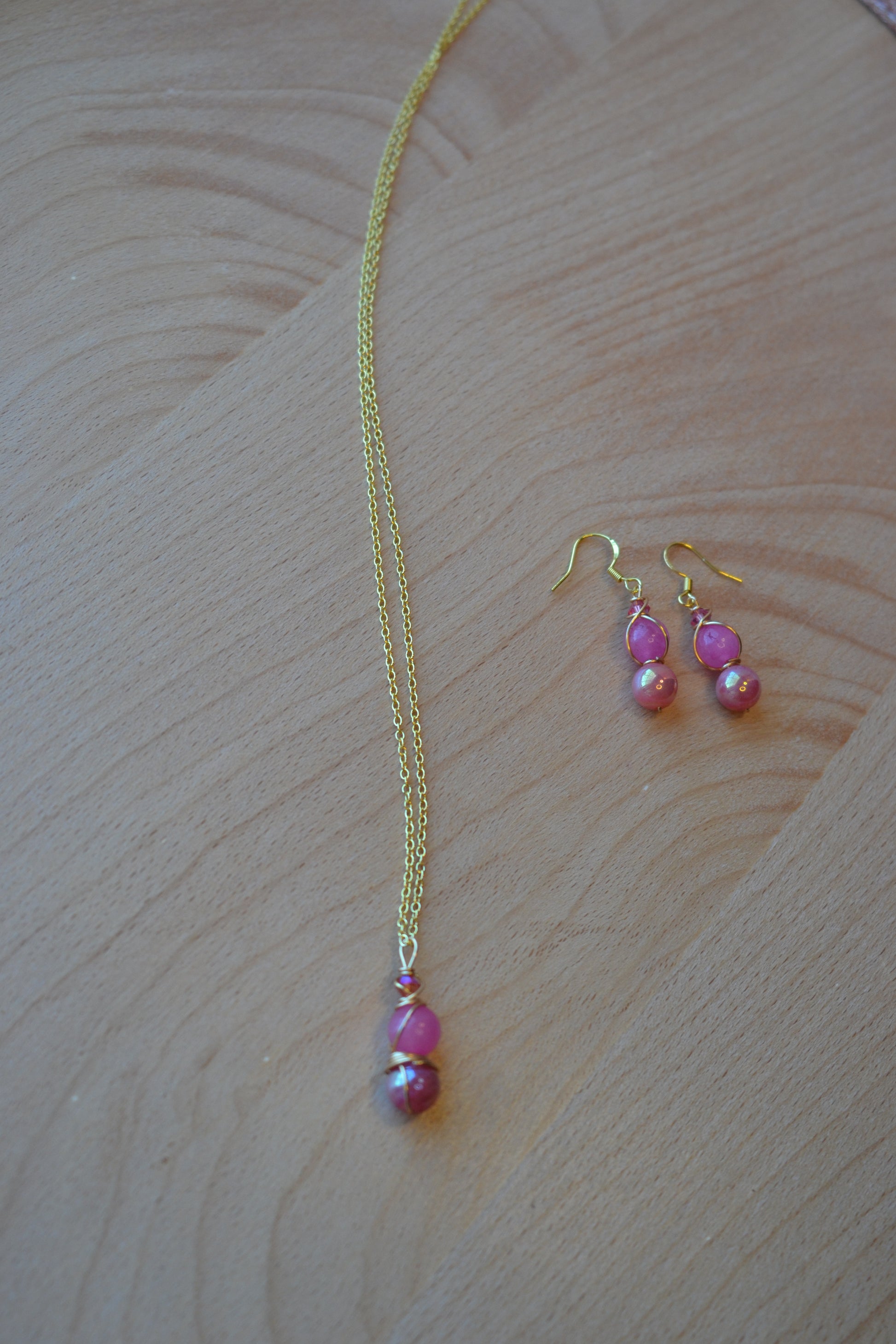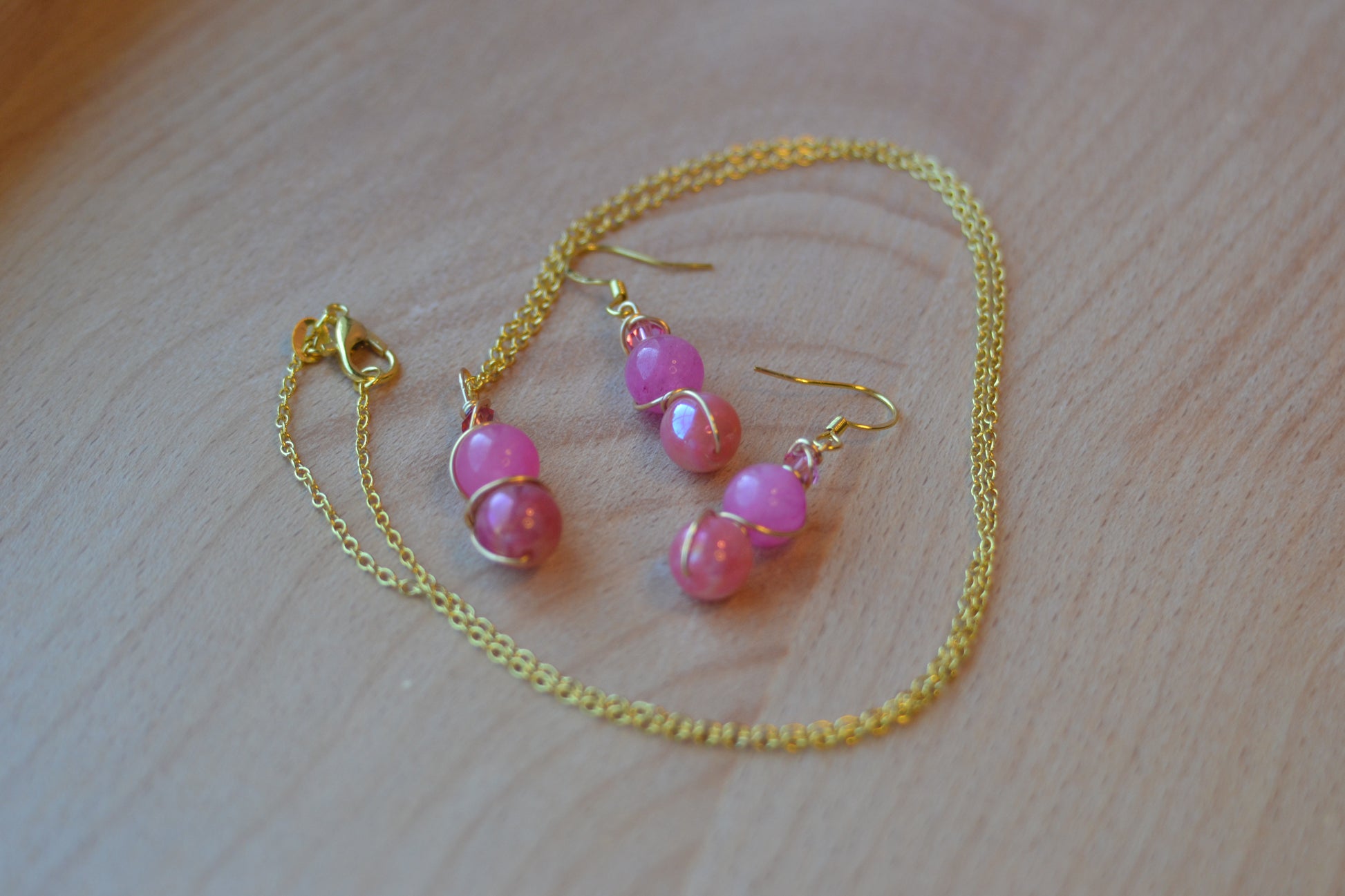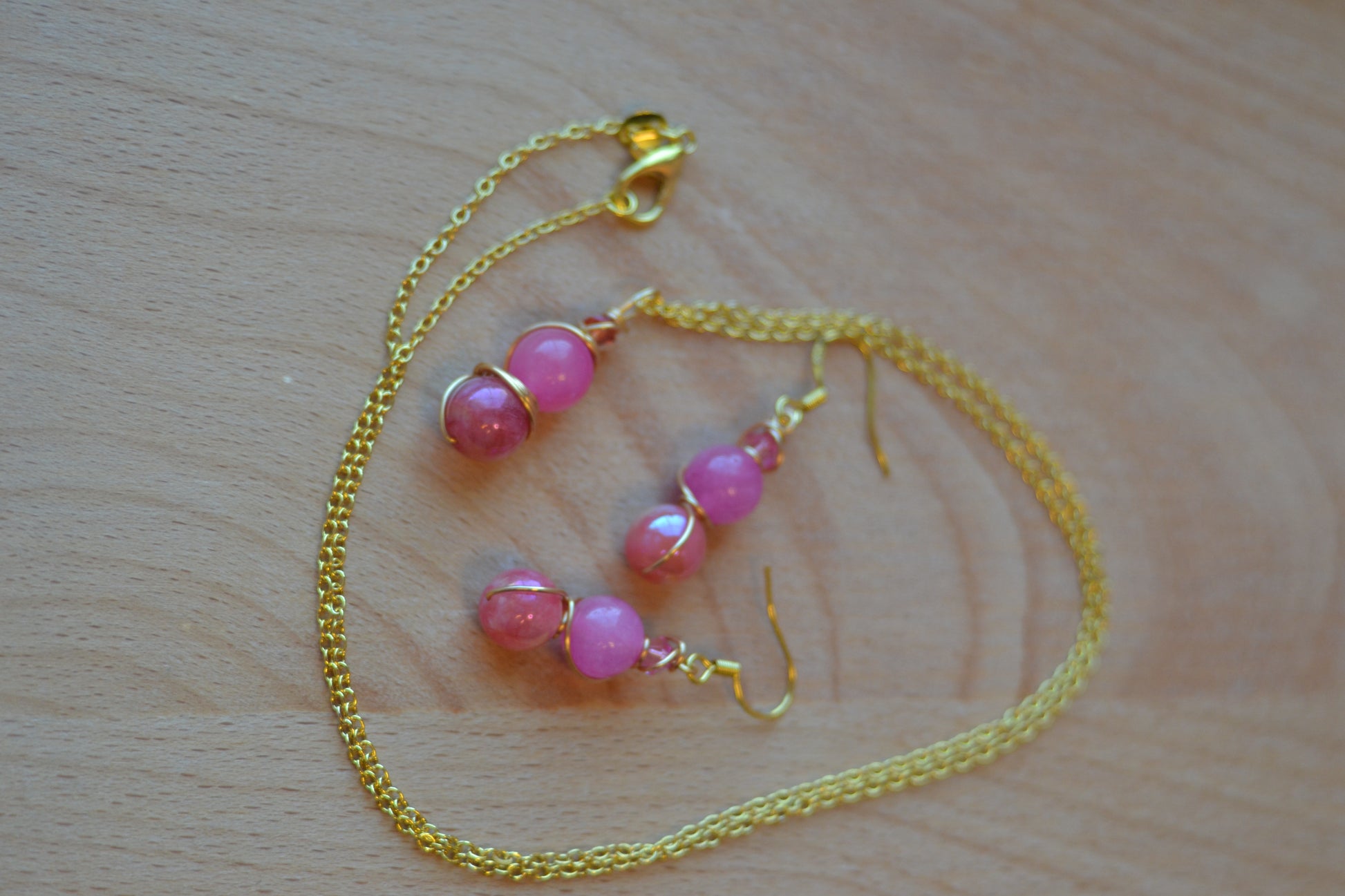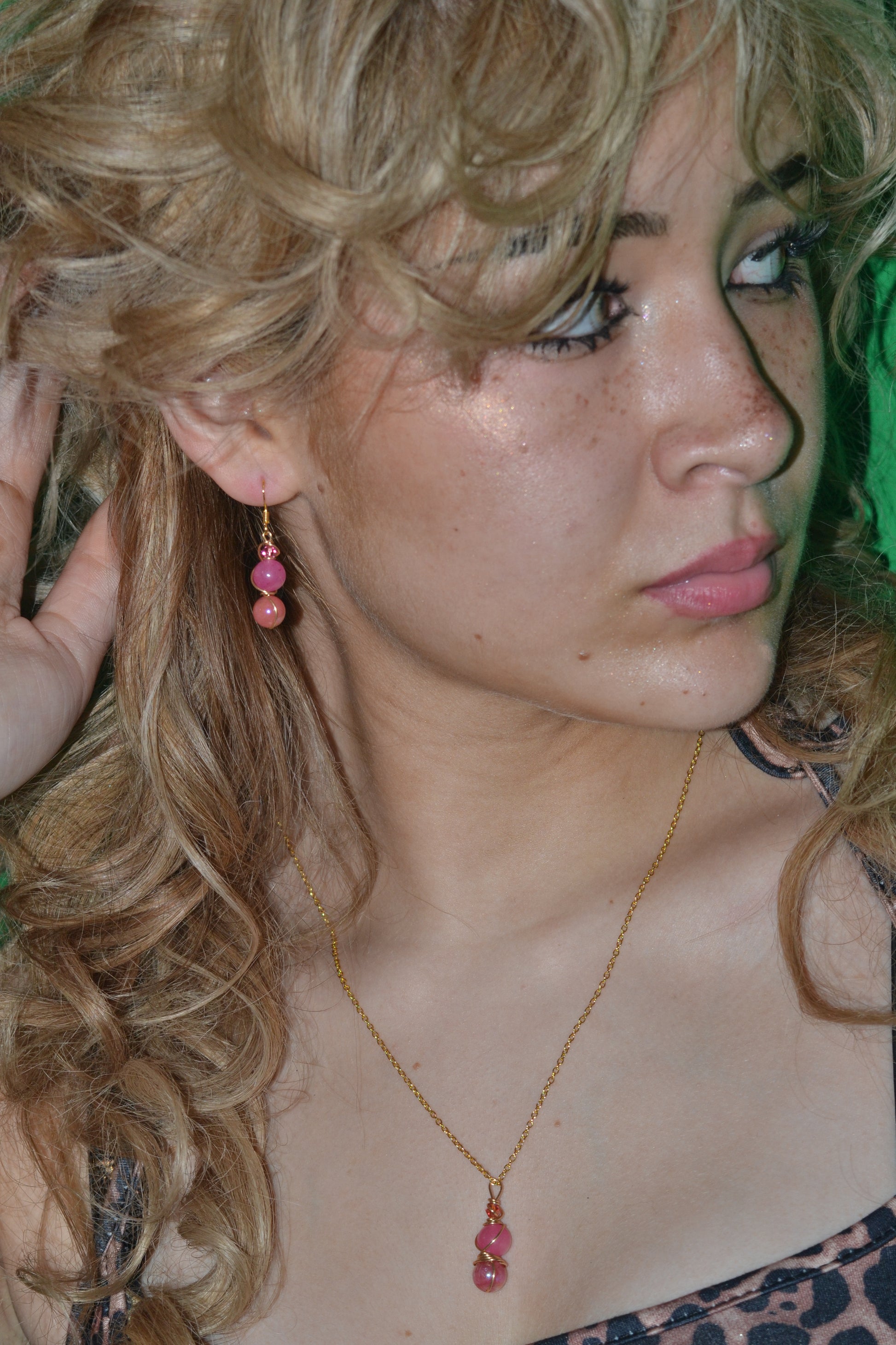 Pink Jade & Gold Set – Heart-Centered Confidence & Grace (925 Necklace + Earrings)
