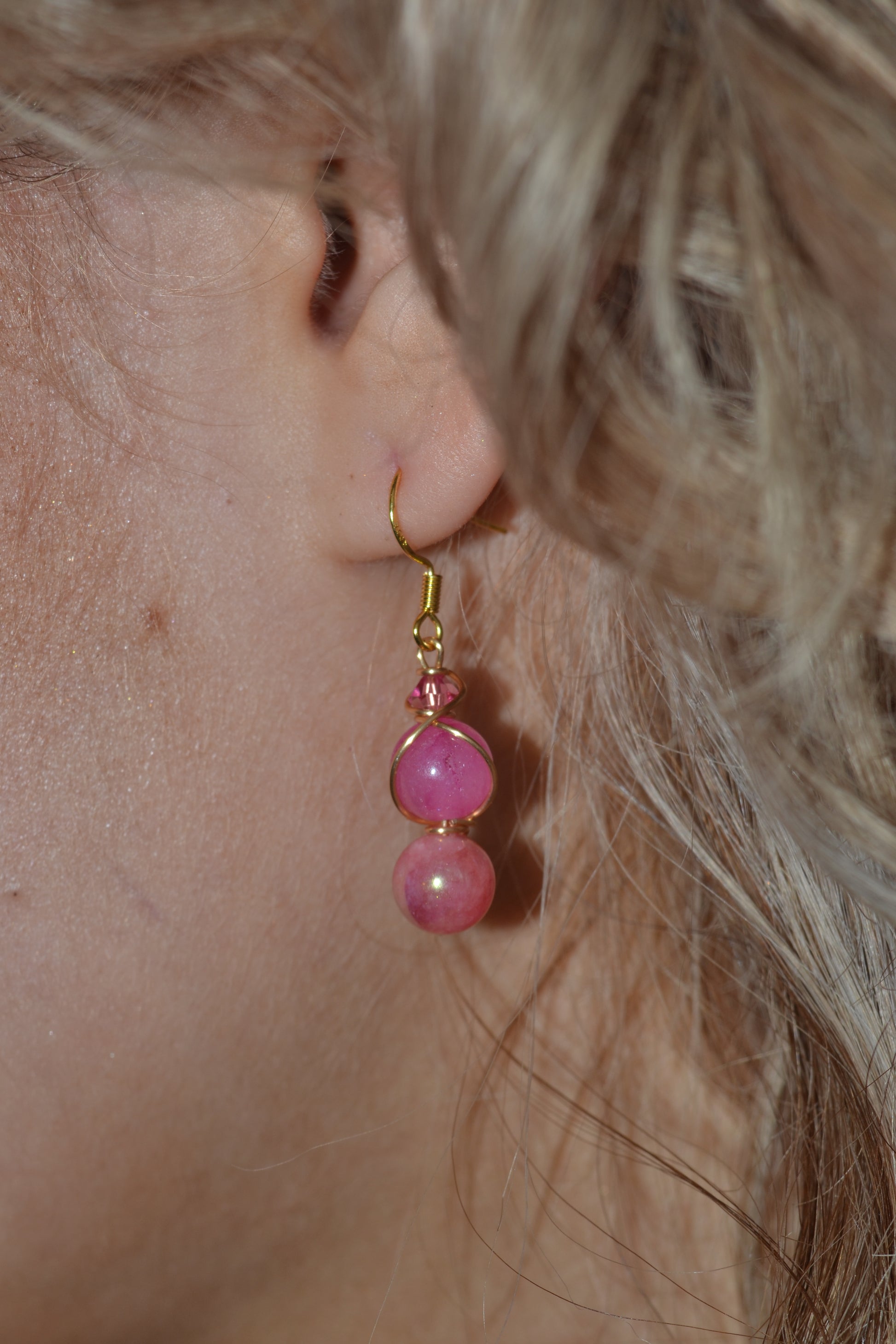 • Earrings: 1.5", double wire-wrapped, gold-plated 925 sterling silver hooks