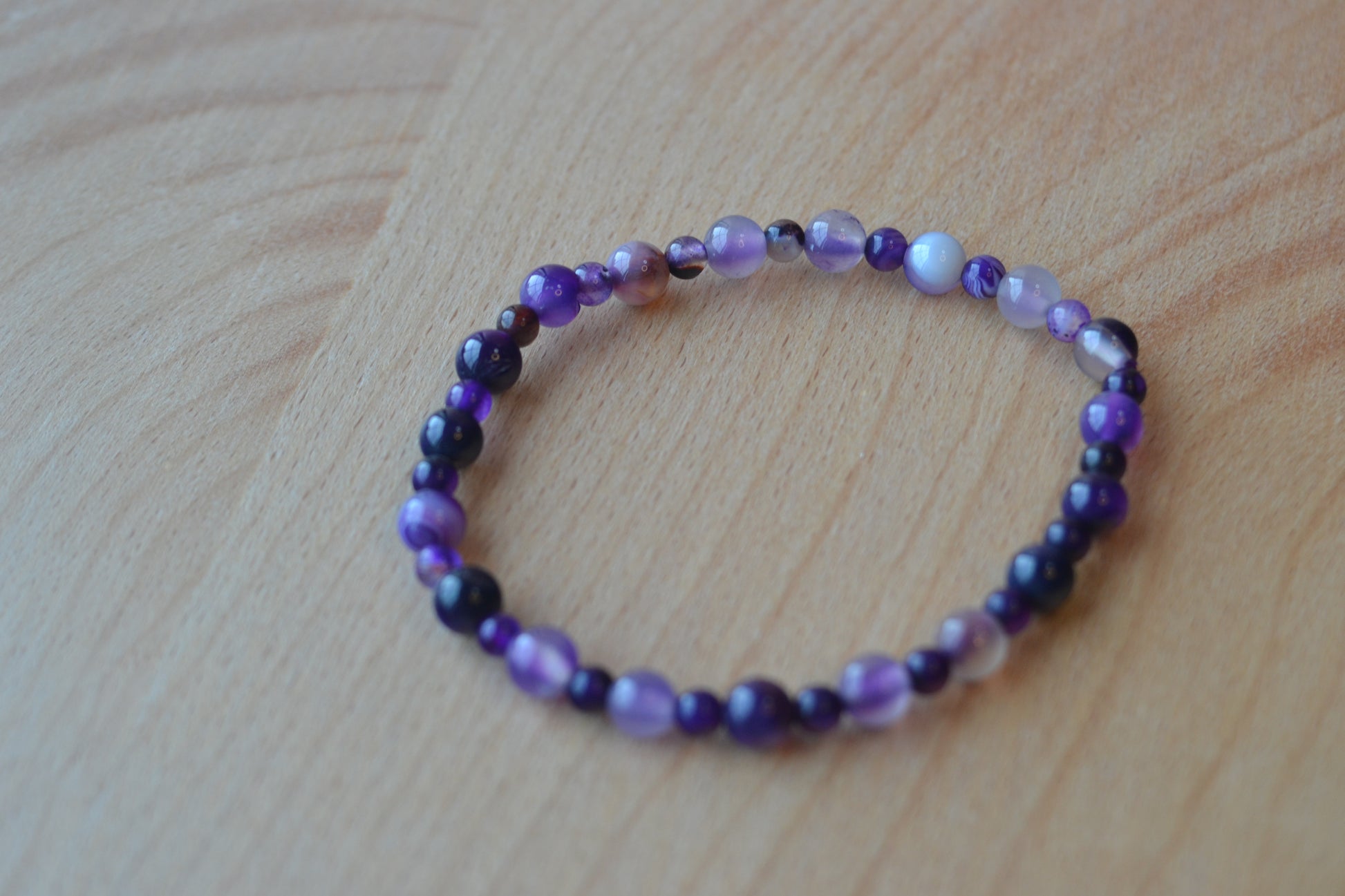 Find your center in style. This handmade Purple Agate Bracelet features a beautiful balance of 4mm and 2mm polished agate beads, thoughtfully strung to bring calm, clarity, and emotional harmony into your day. Known as a stone of grounding and inner peace, agate stabilizes the aura and soothes turbulent emotions, making it a perfect everyday companion for those seeking balance and spiritual connection.