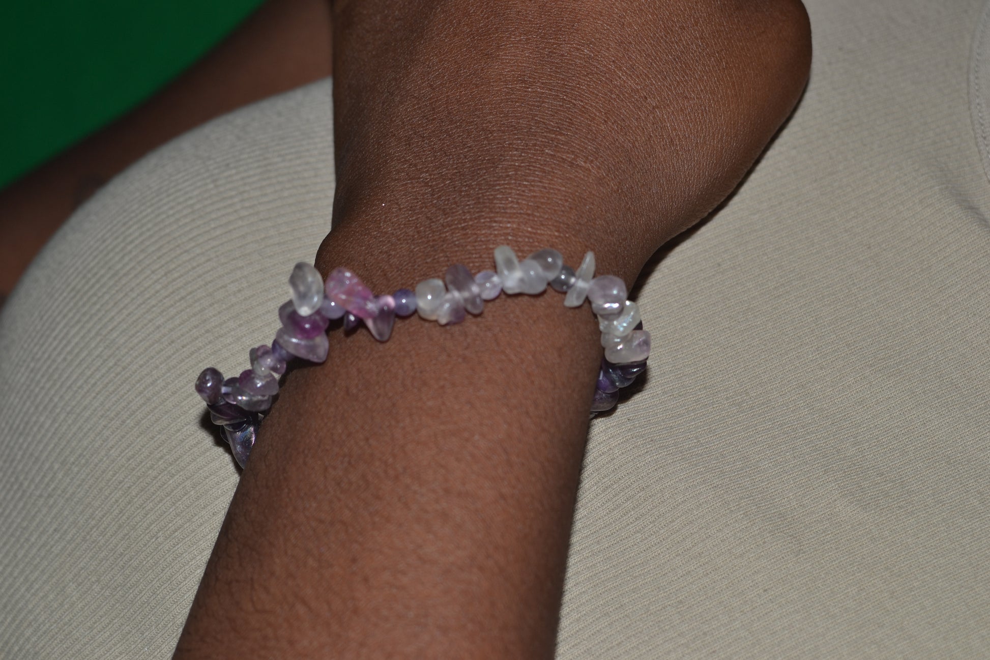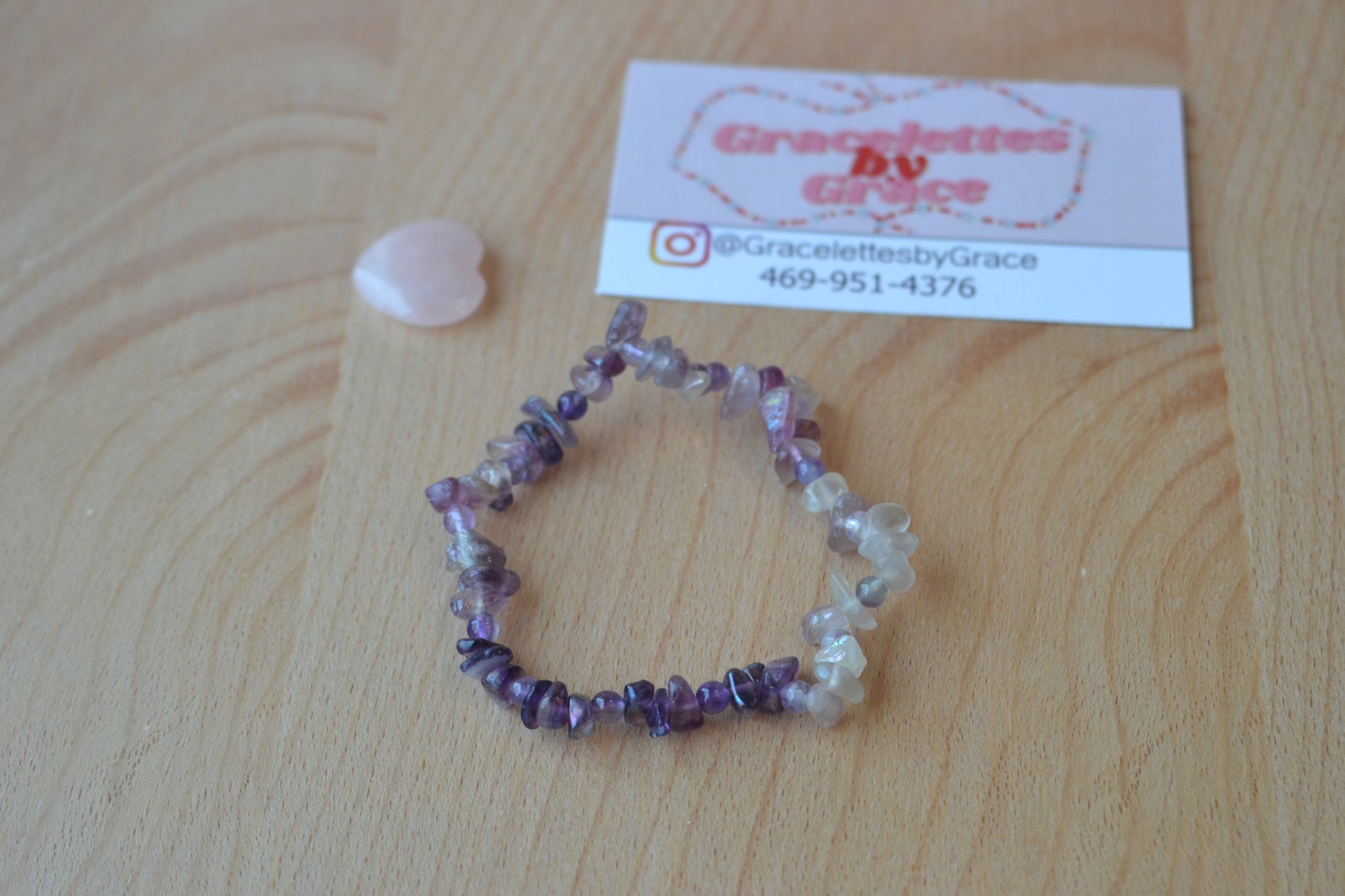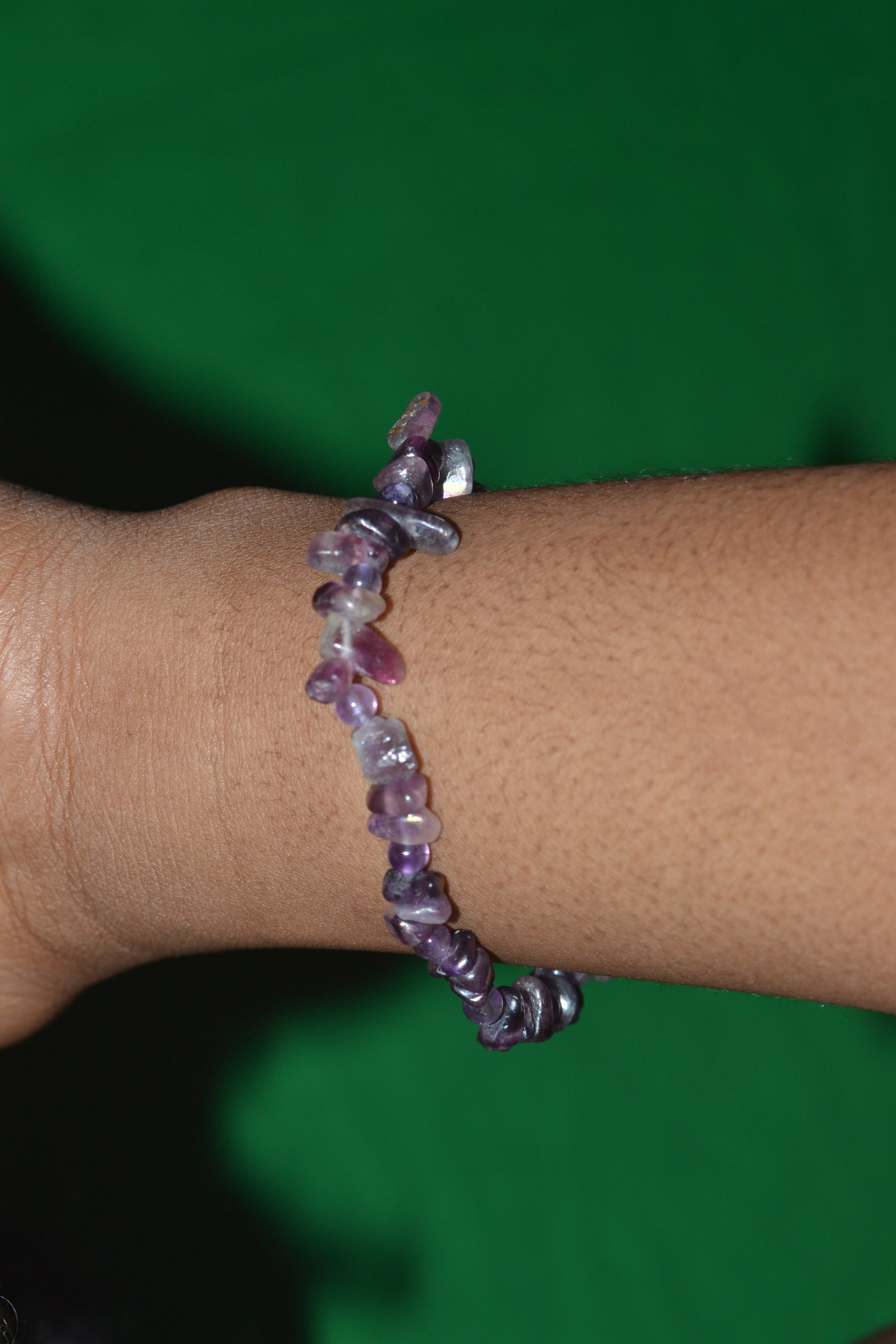 Purple Aura Fluorite & Amethyst Chip Bracelet – Clarity, Protection & Intuition