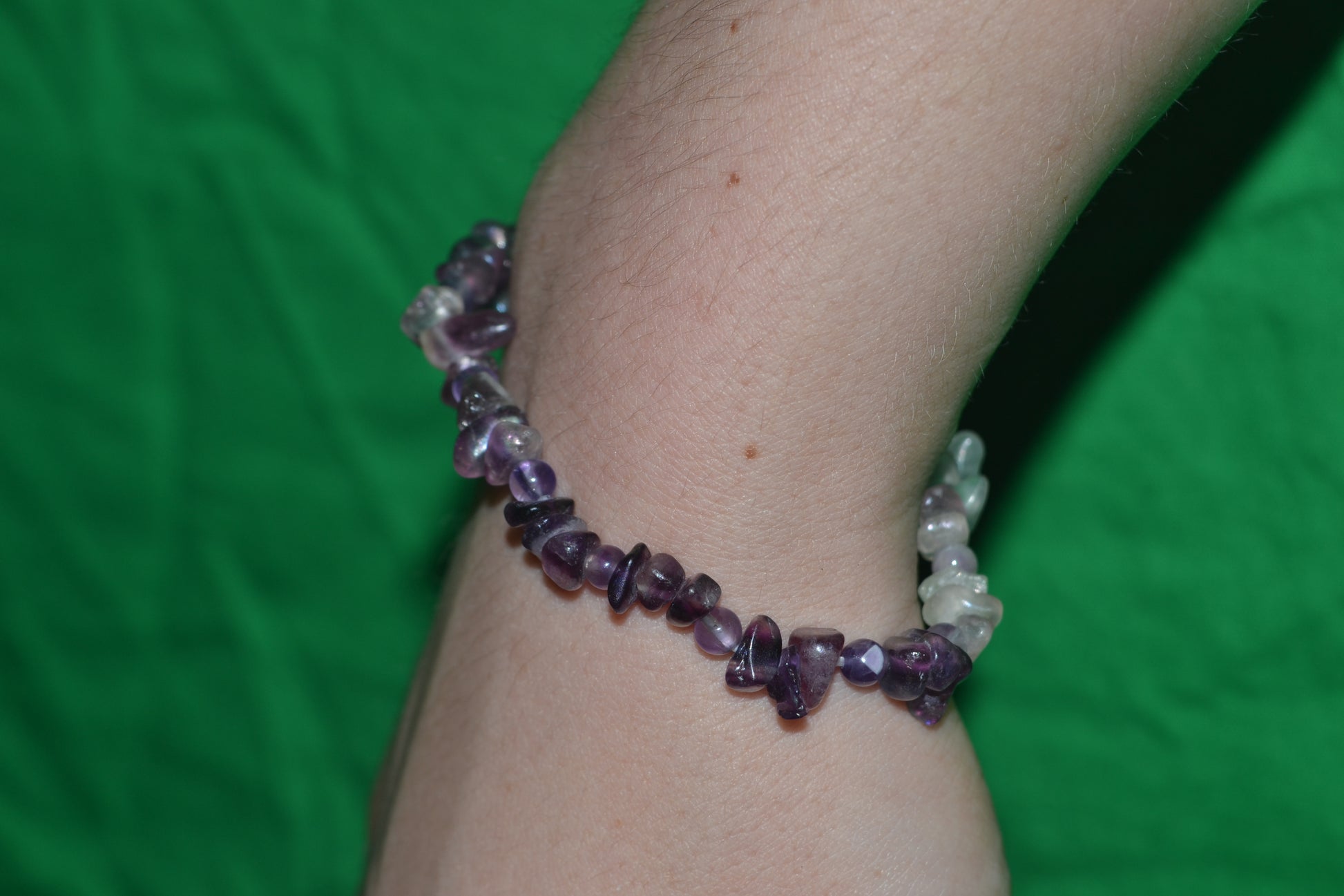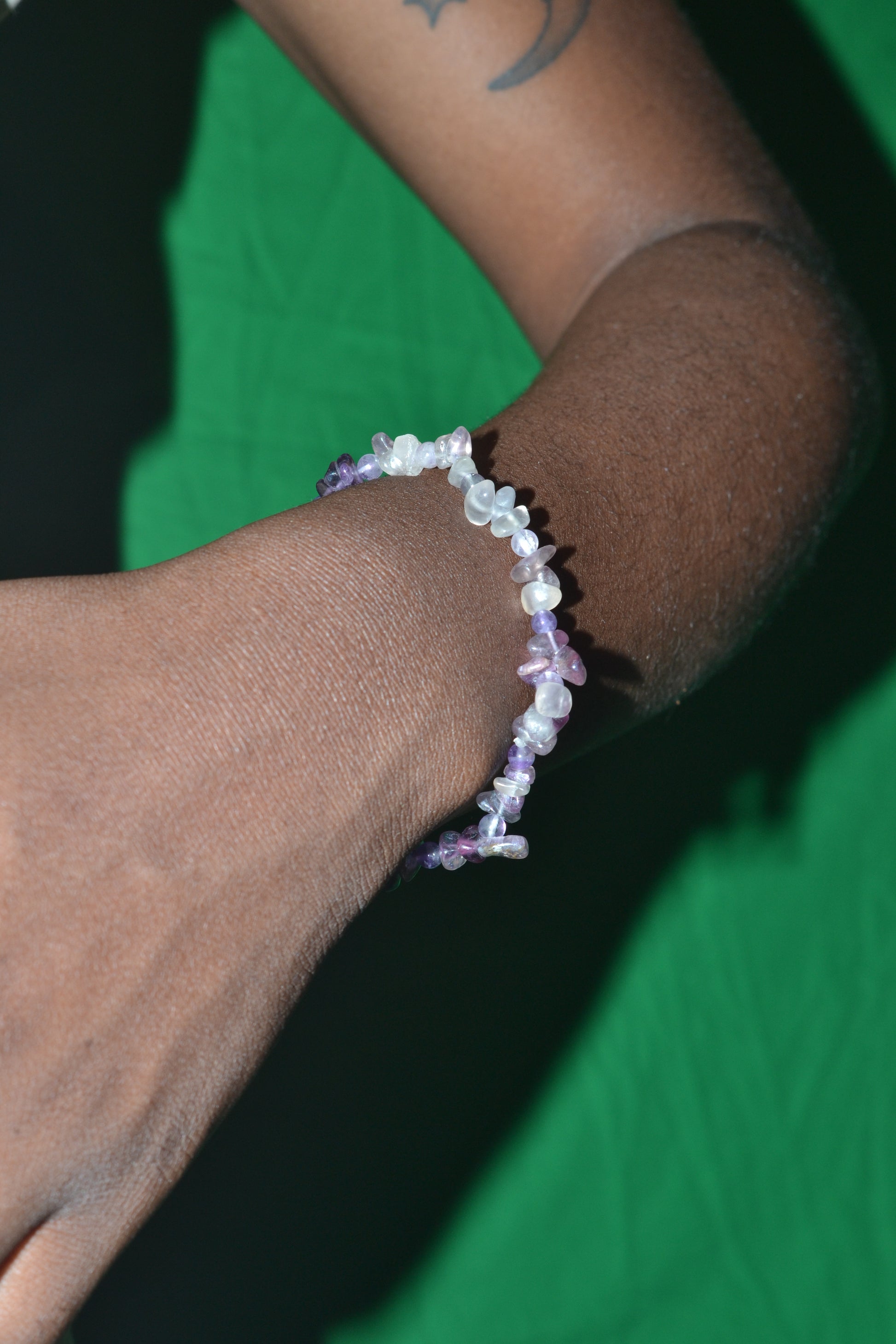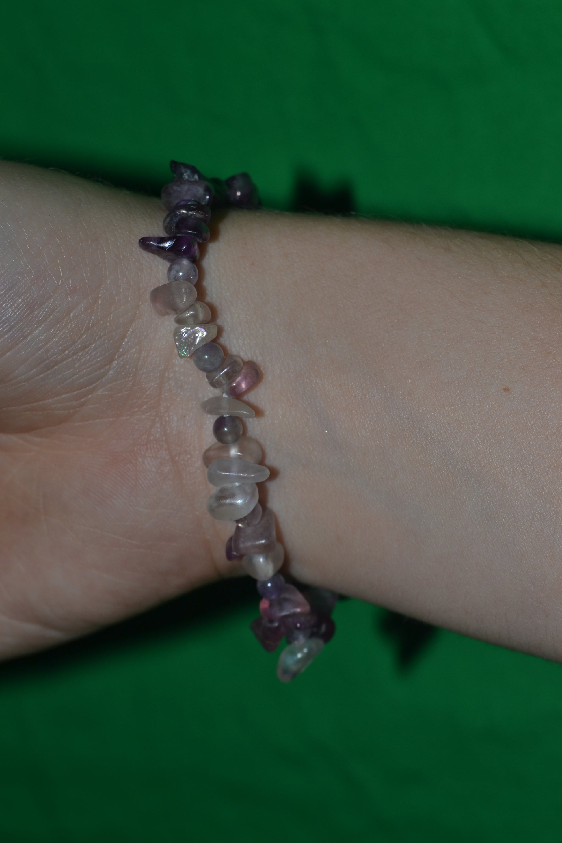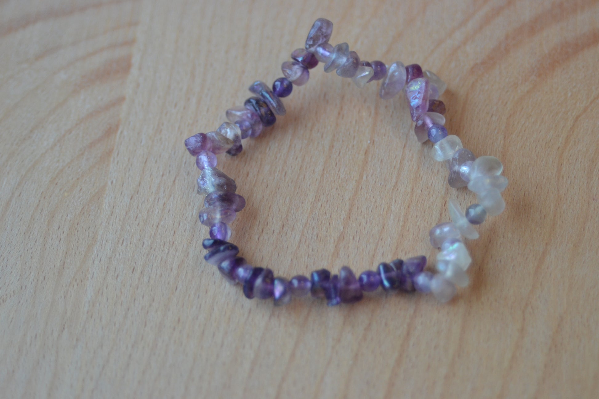 Purple Aura Fluorite & Amethyst Chip Bracelet – Clarity, Protection & Intuition