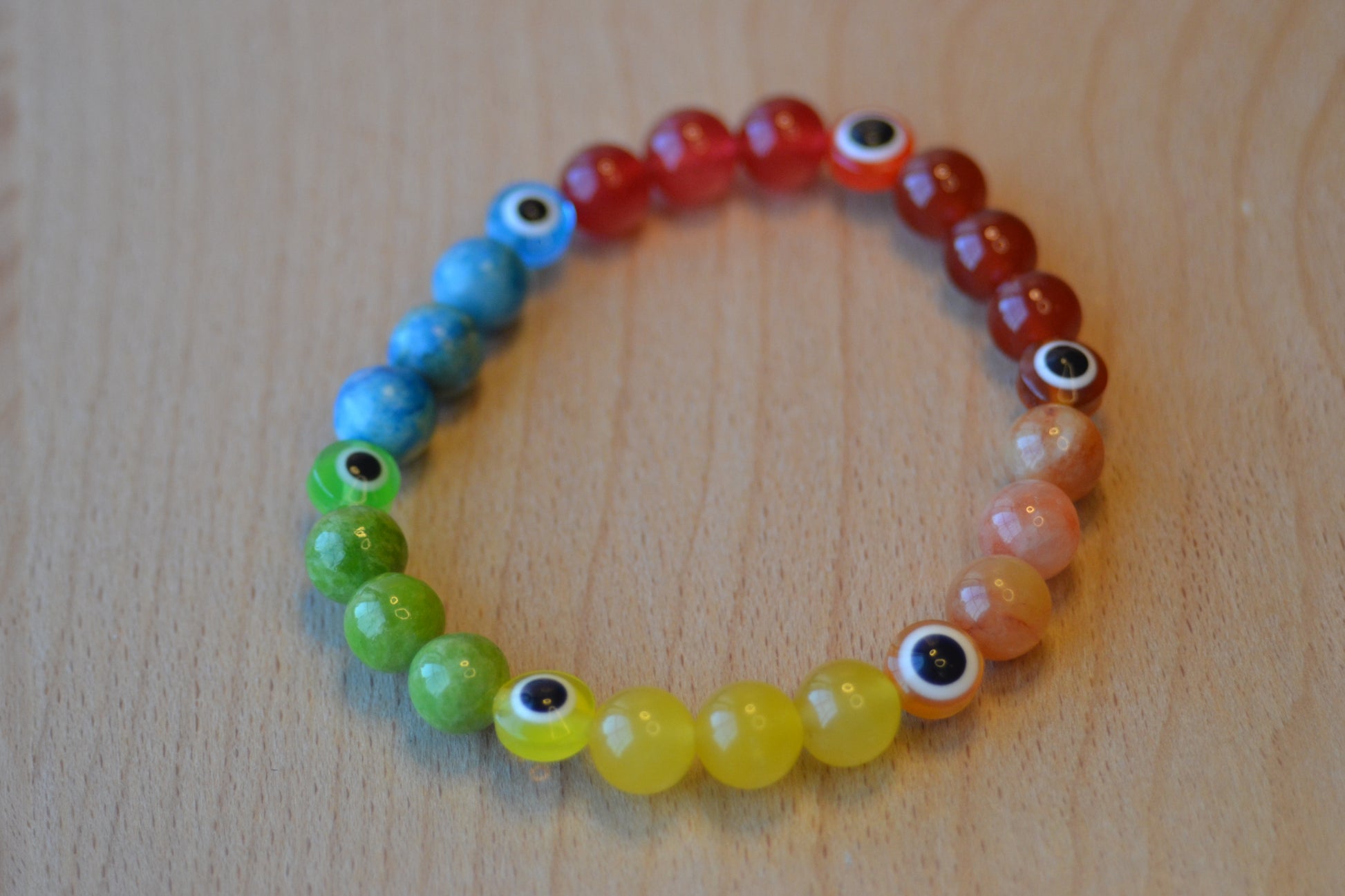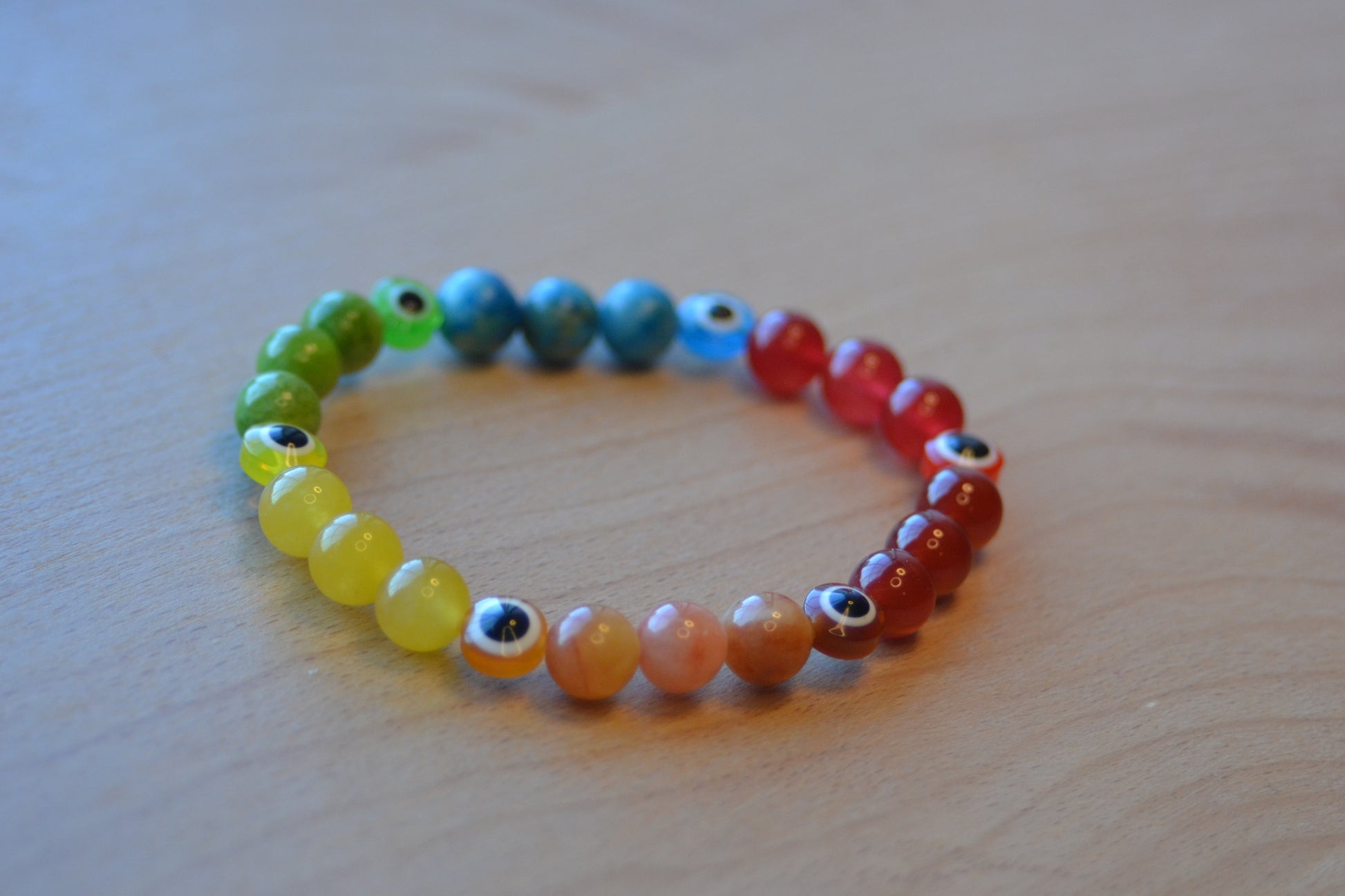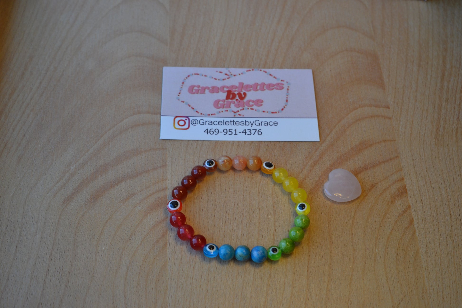 Rainbow Evil Eye Bracelet – Chakra Protection & Vibrational Alignment (6mm Gemstones)