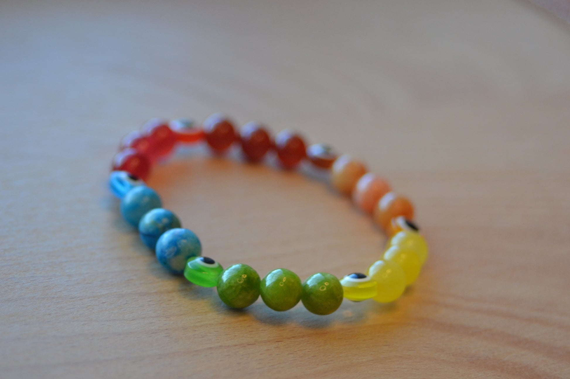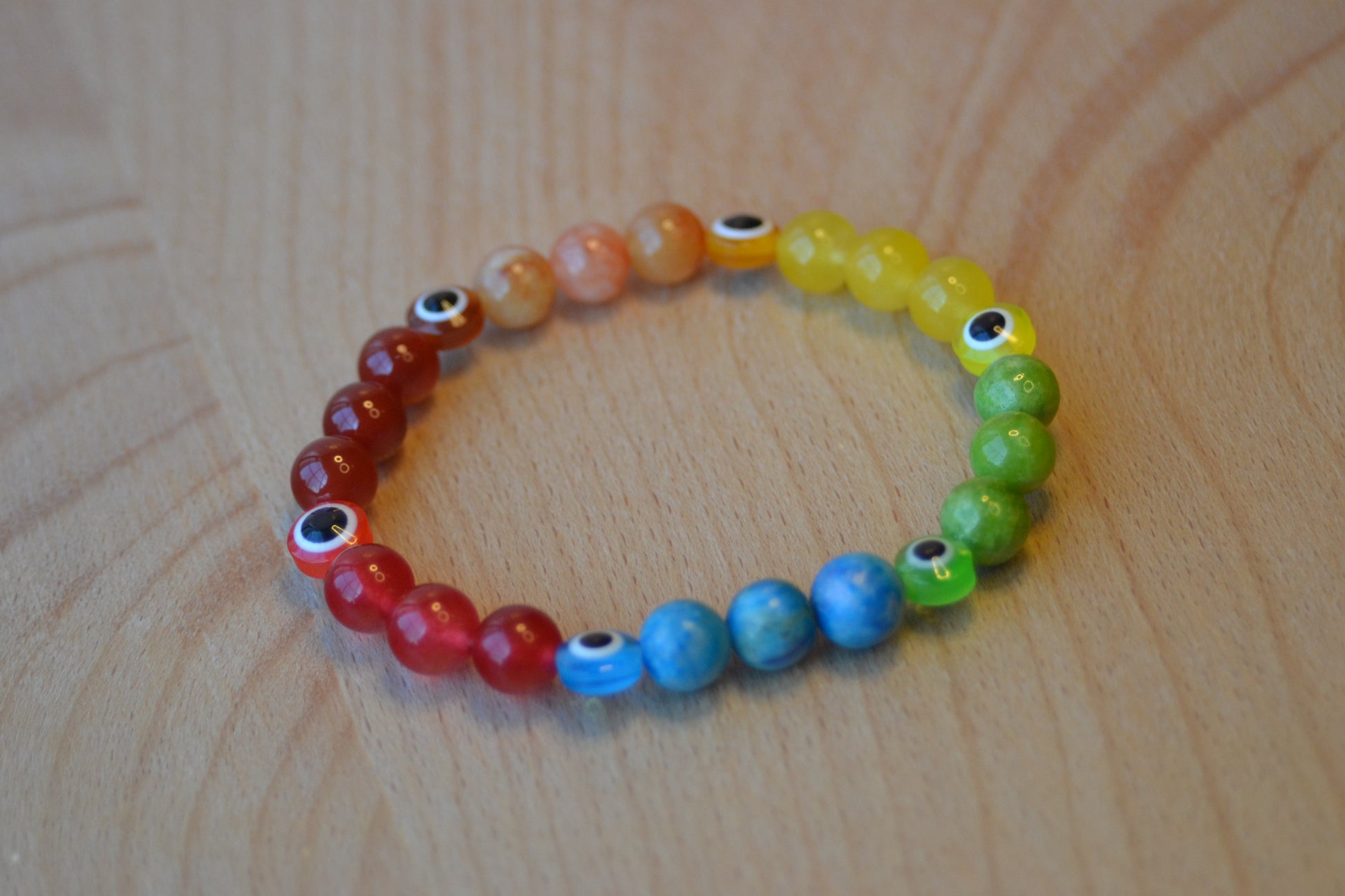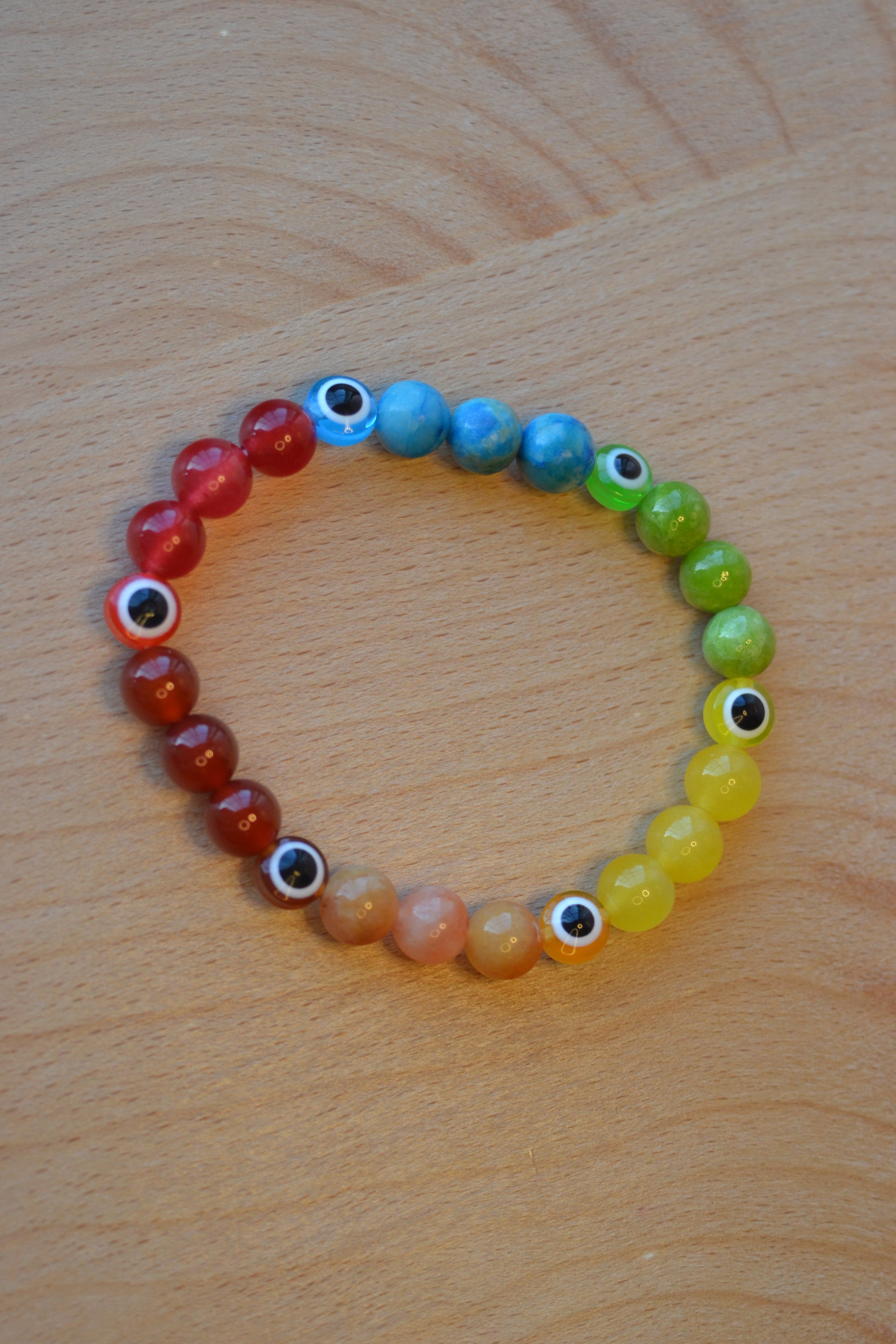 Rainbow Evil Eye Bracelet – Chakra Protection & Vibrational Alignment (6mm Gemstones)