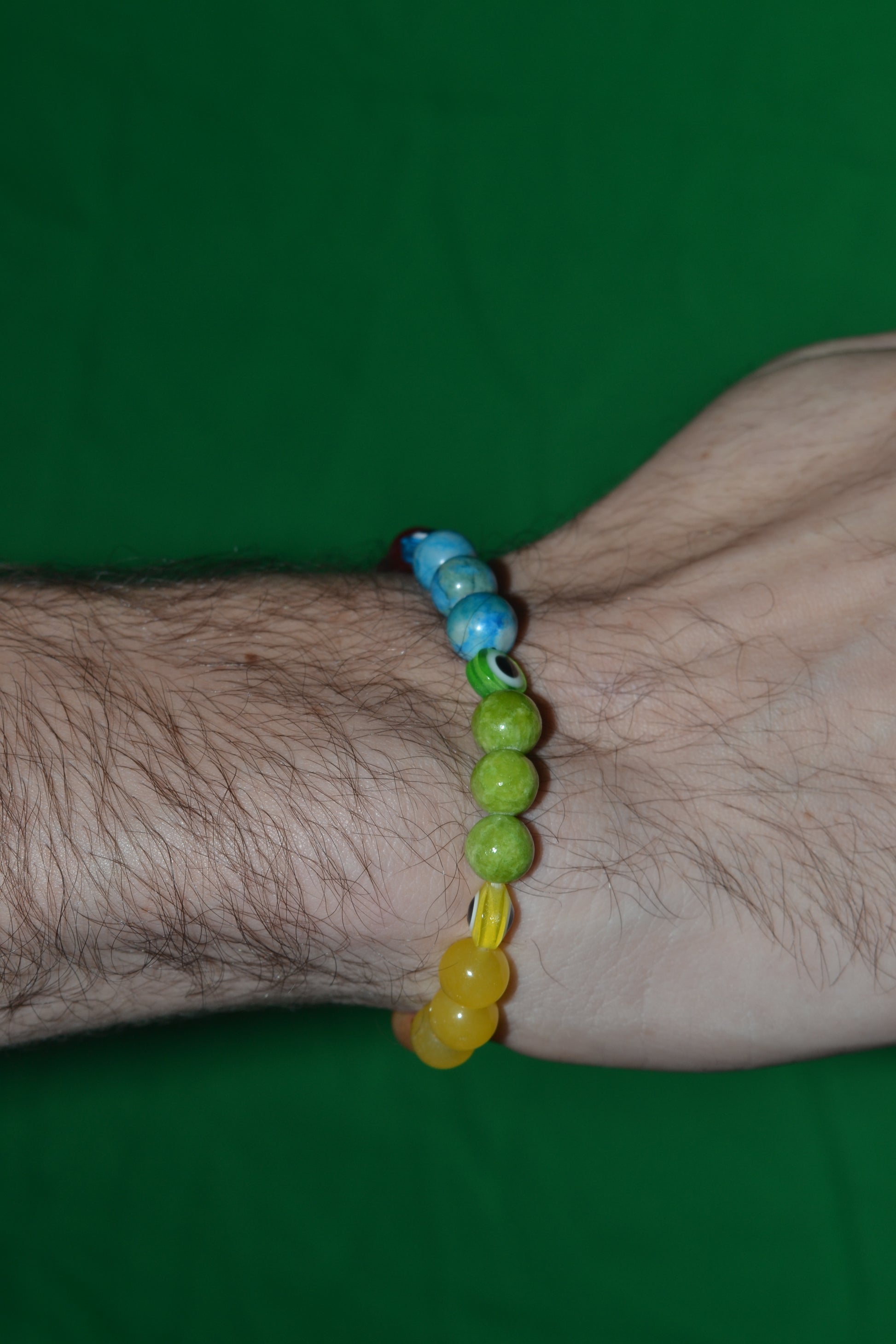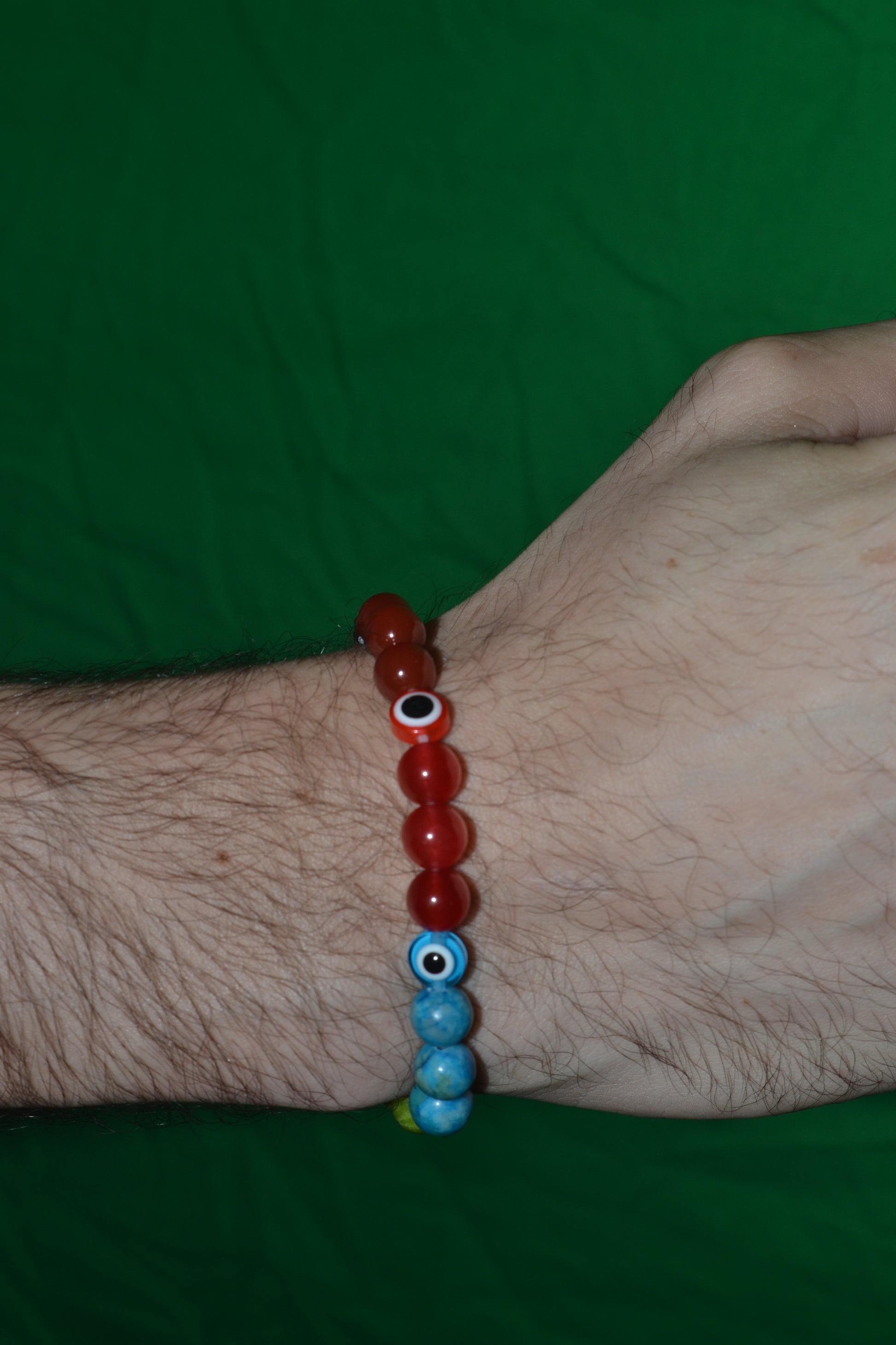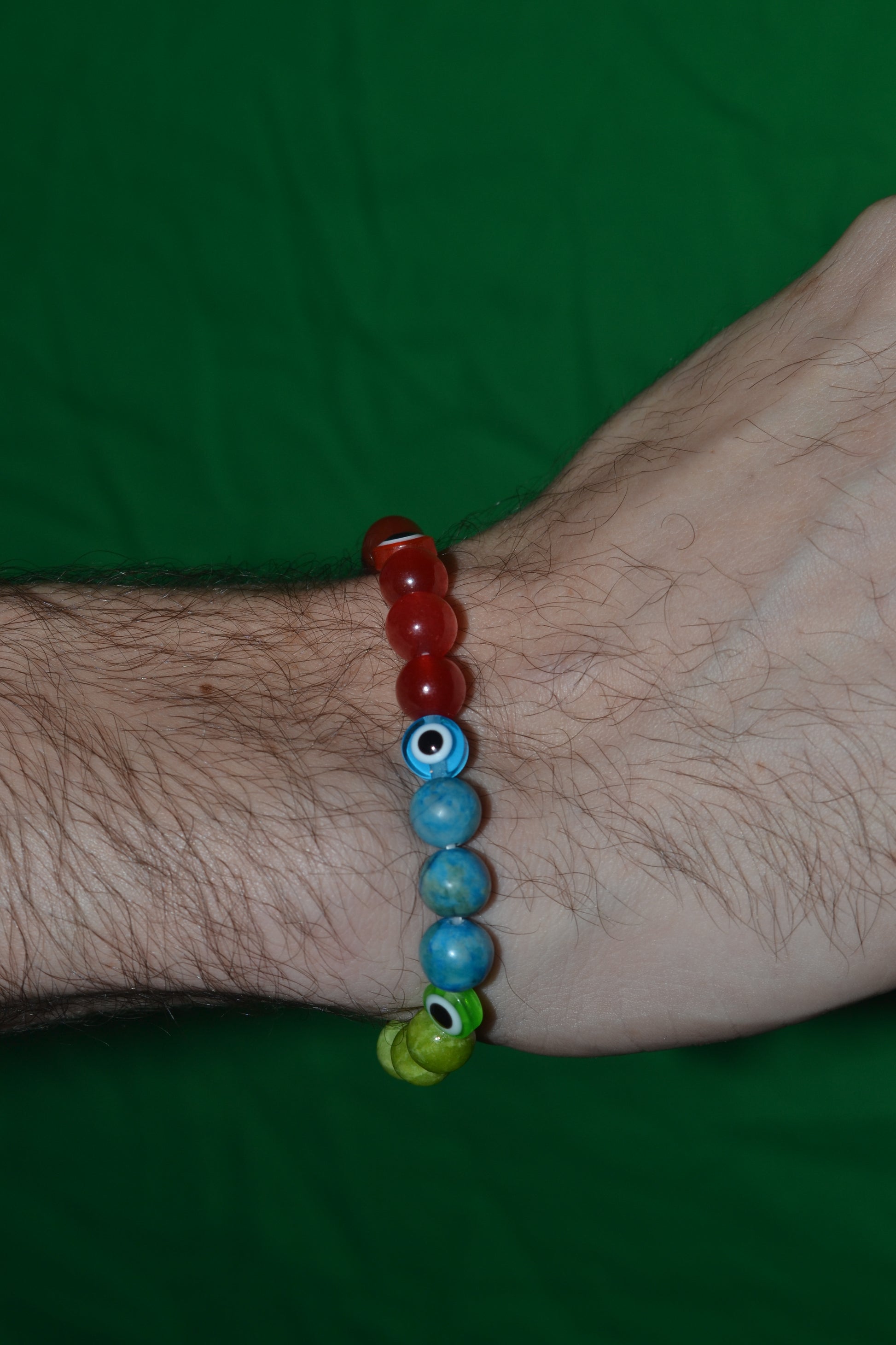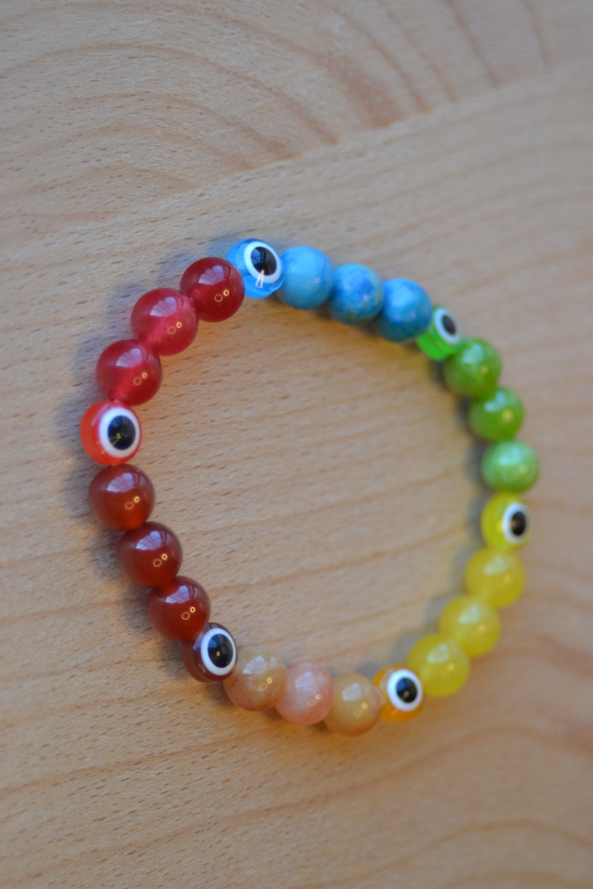 • Matching evil eye beads in red, orange, yellow, green, and blue