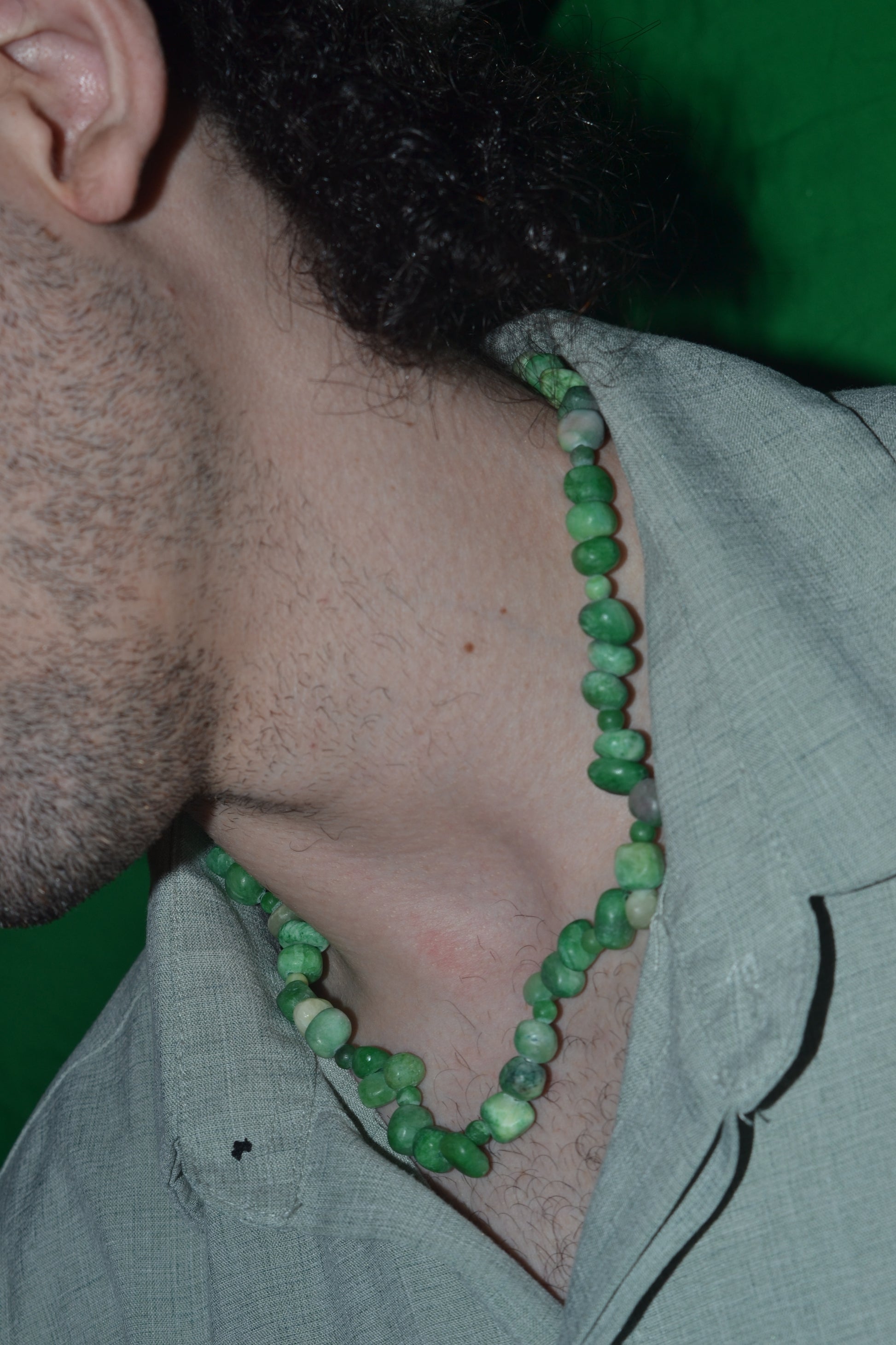 Crafted with large, rough-cut jade chip beads, this choker and bracelet duo is bright, untamed, and deeply heart-centered. The jade is vivid green, flecked with natural pink and yellow inclusions — creating a living mosaic of emotion, creativity, and ancient wisdom.