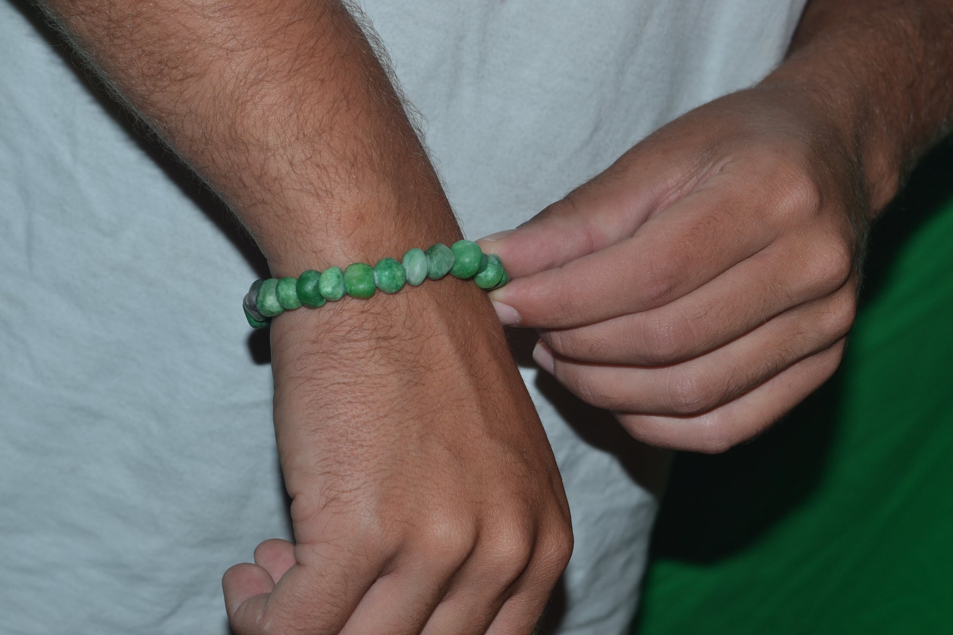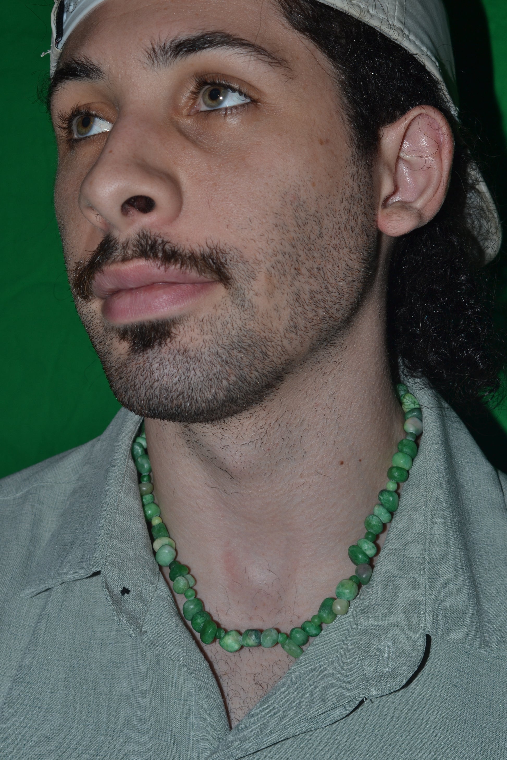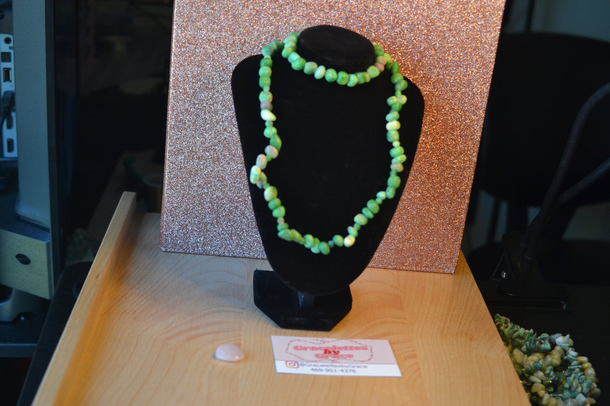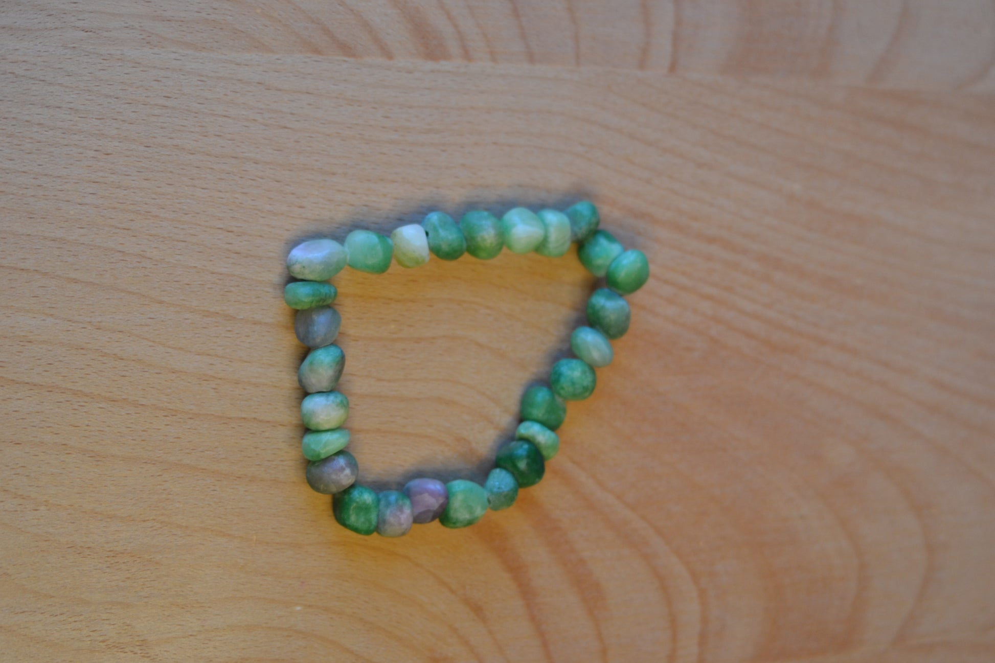 Materials: Large, rough jade chip beads (bright green with pink/yellow inclusions)