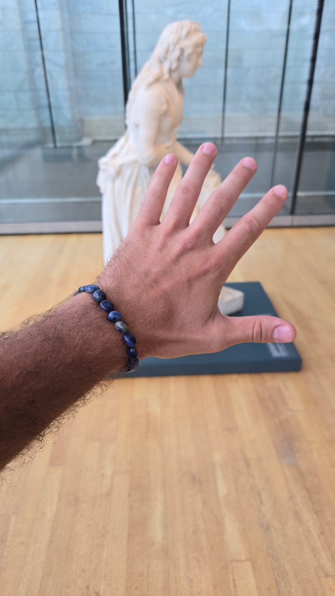 This handmade bracelet features irregular rectangular sodalite beads, celebrating the beauty of imperfection and natural form. With its deep blue hues and natural white veining, sodalite is a crystal of insight, self-trust, and honest expression.