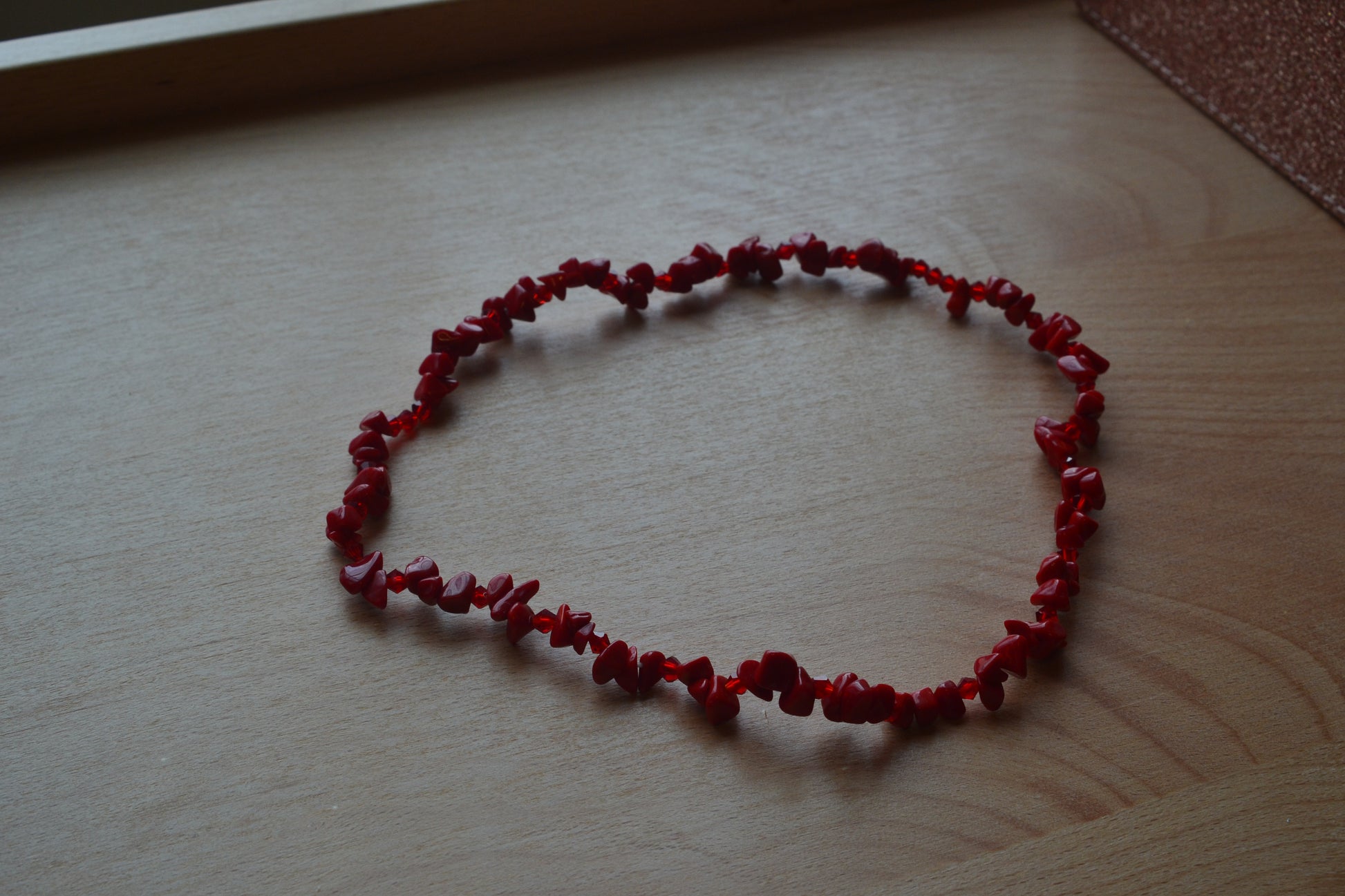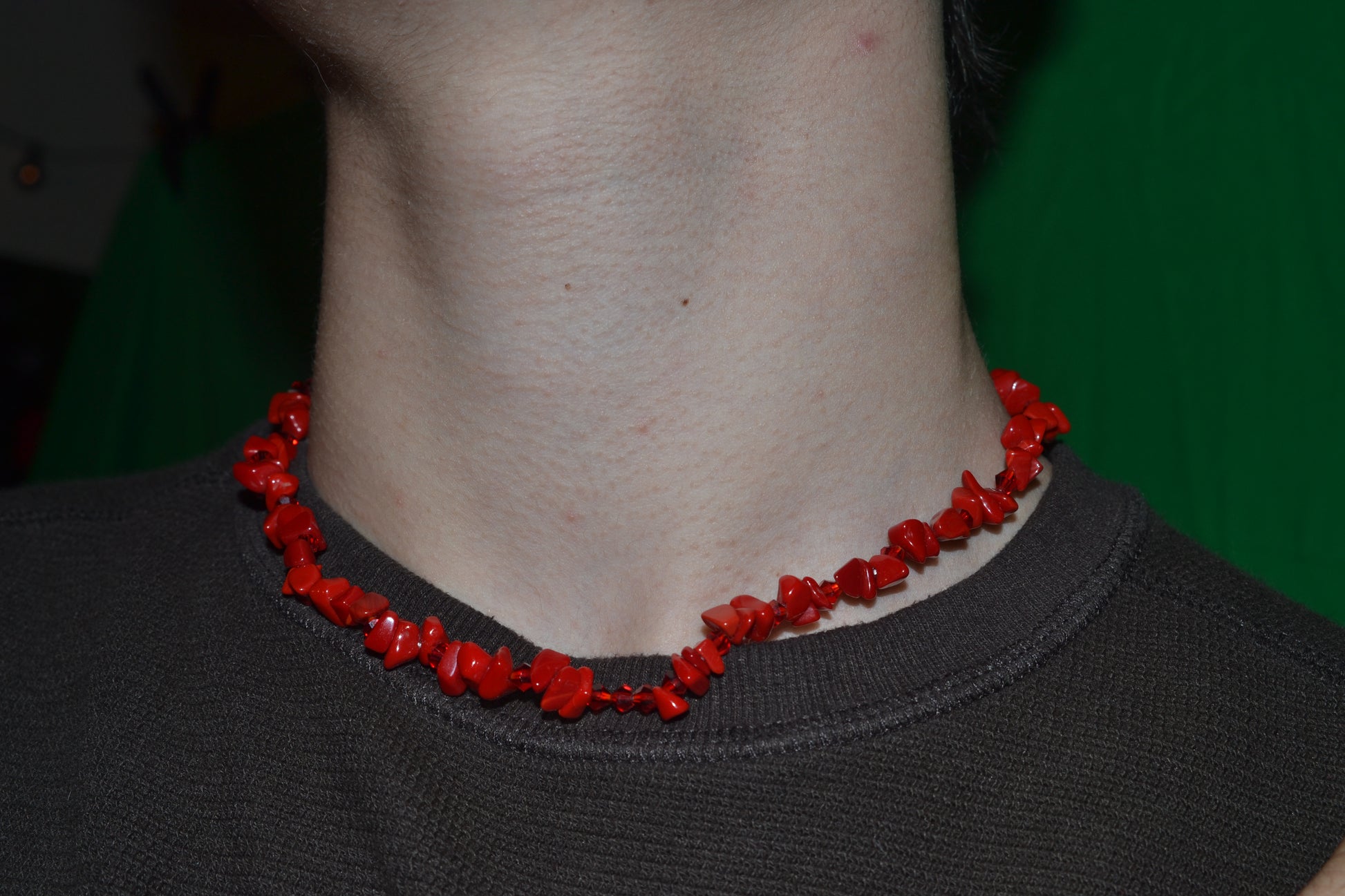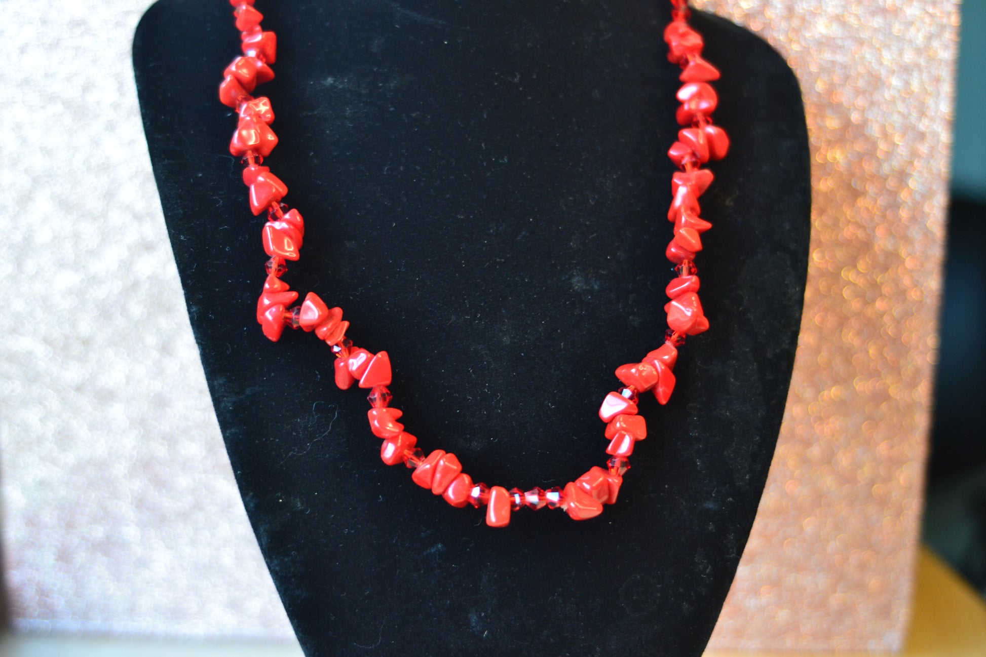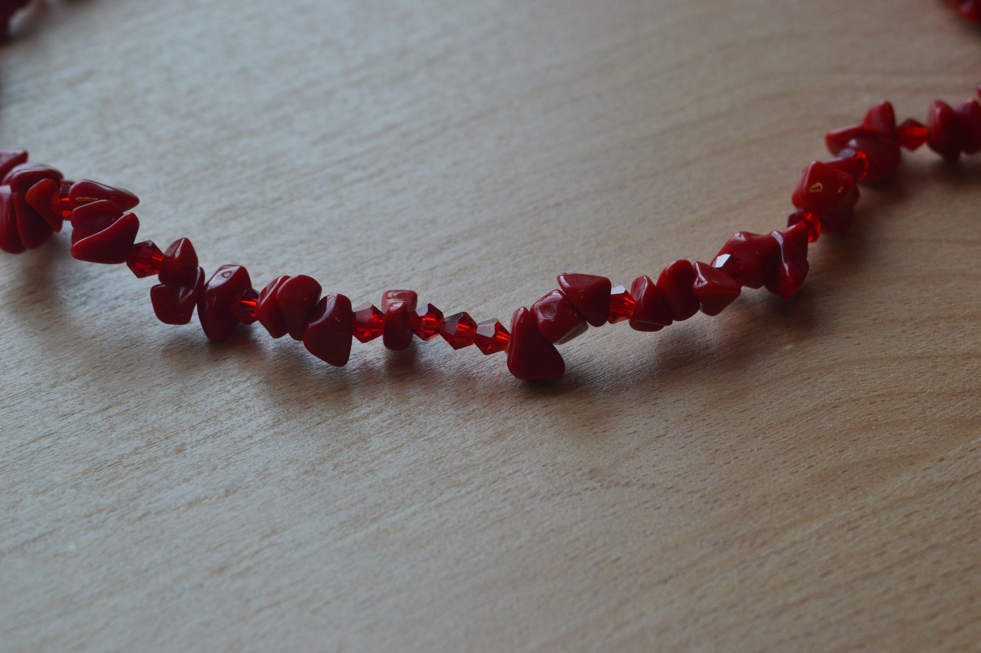 This handmade 16-inch necklace is crafted with vibrant red coral chip beads and accented with fiery red crystal spacers that shimmer with movement. Designed to rest beautifully at the collarbone, this piece is perfect for those who want to ignite their inner fire and make a powerful, passionate statement.