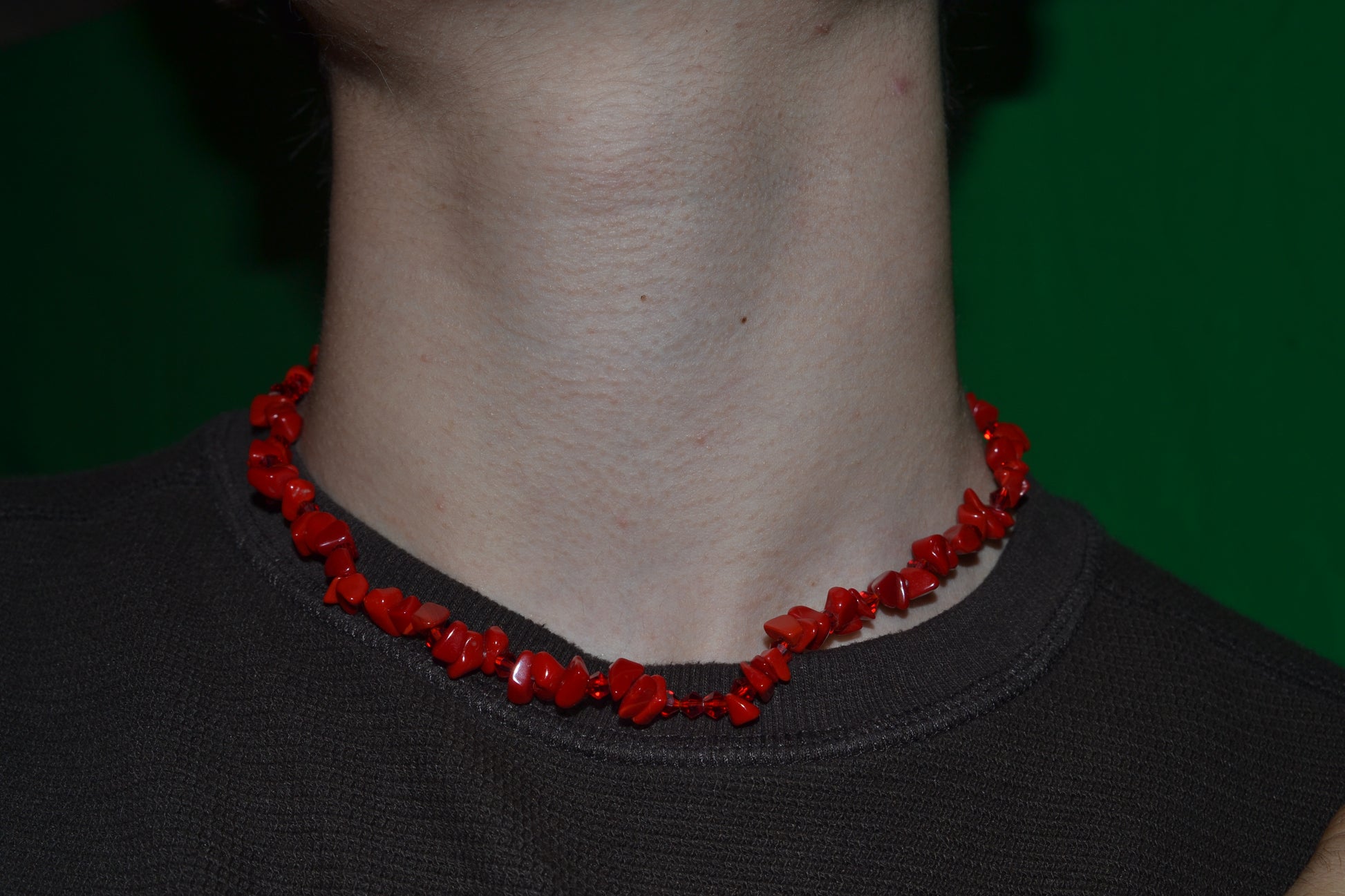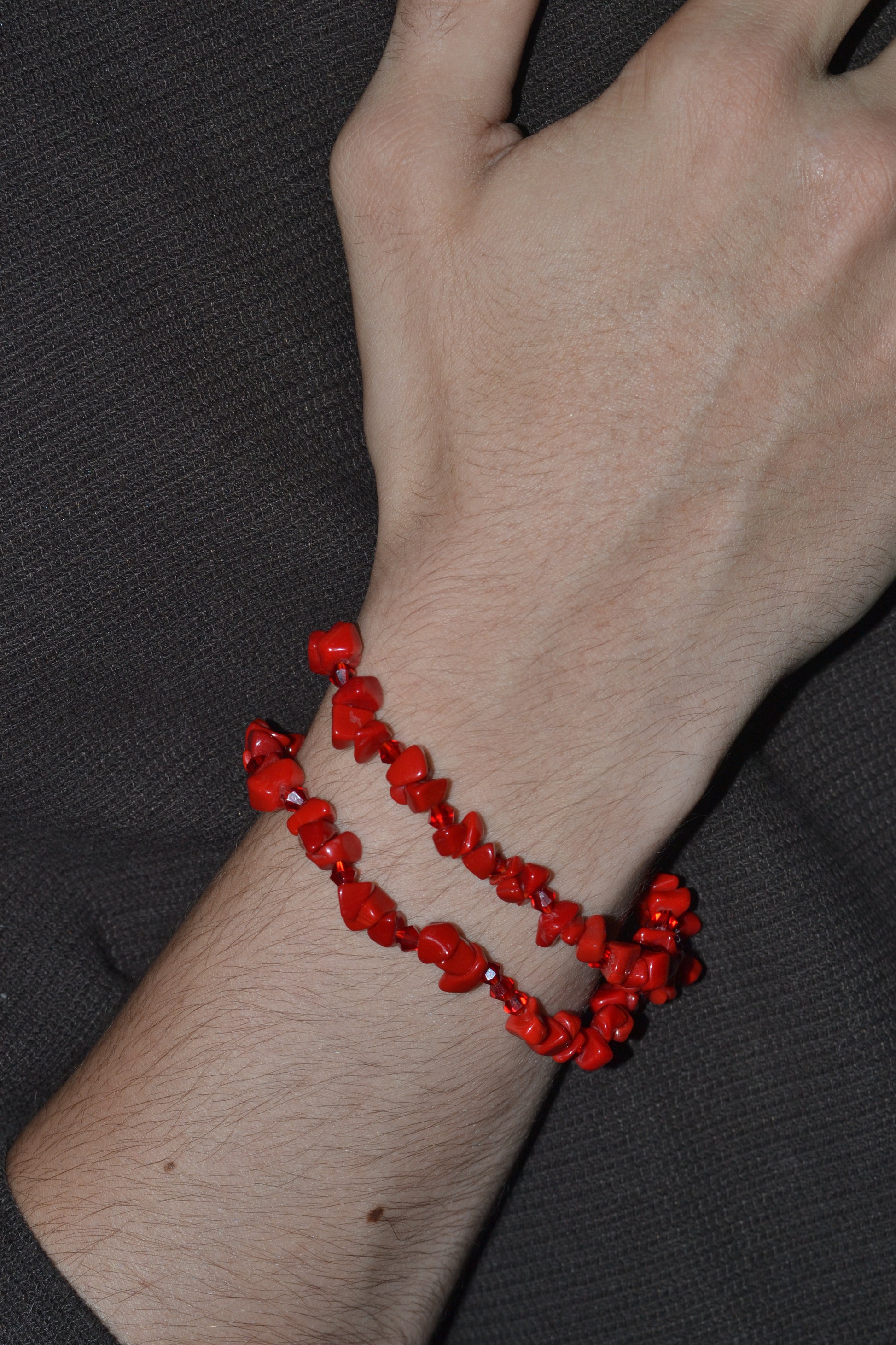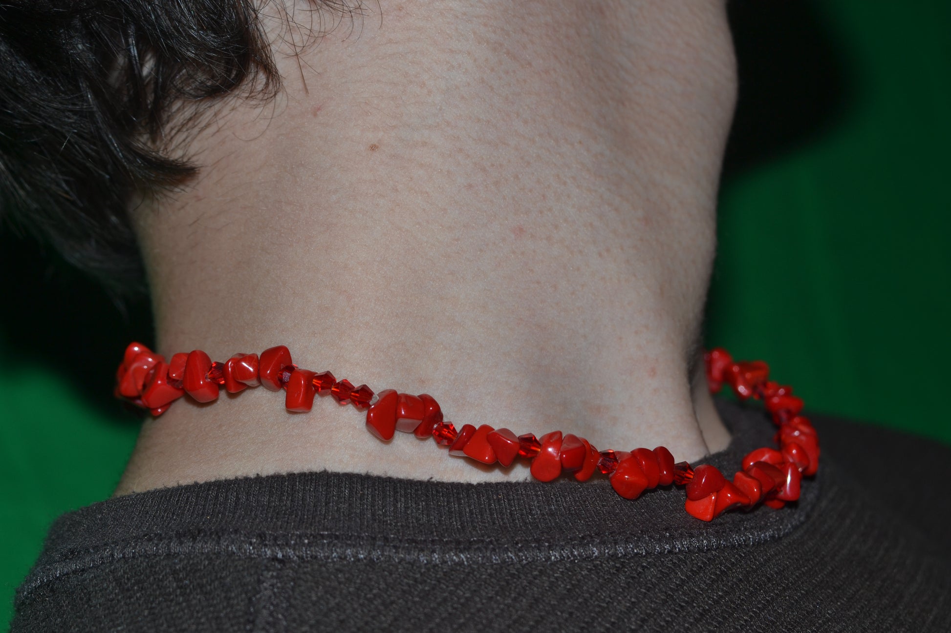 Red coral is traditionally known for its grounding and protective properties, while red crystals are associated with courage and vitality. Whether you're stepping into a room or stepping into your power, this necklace is a reminder of your strength, confidence, and grace.