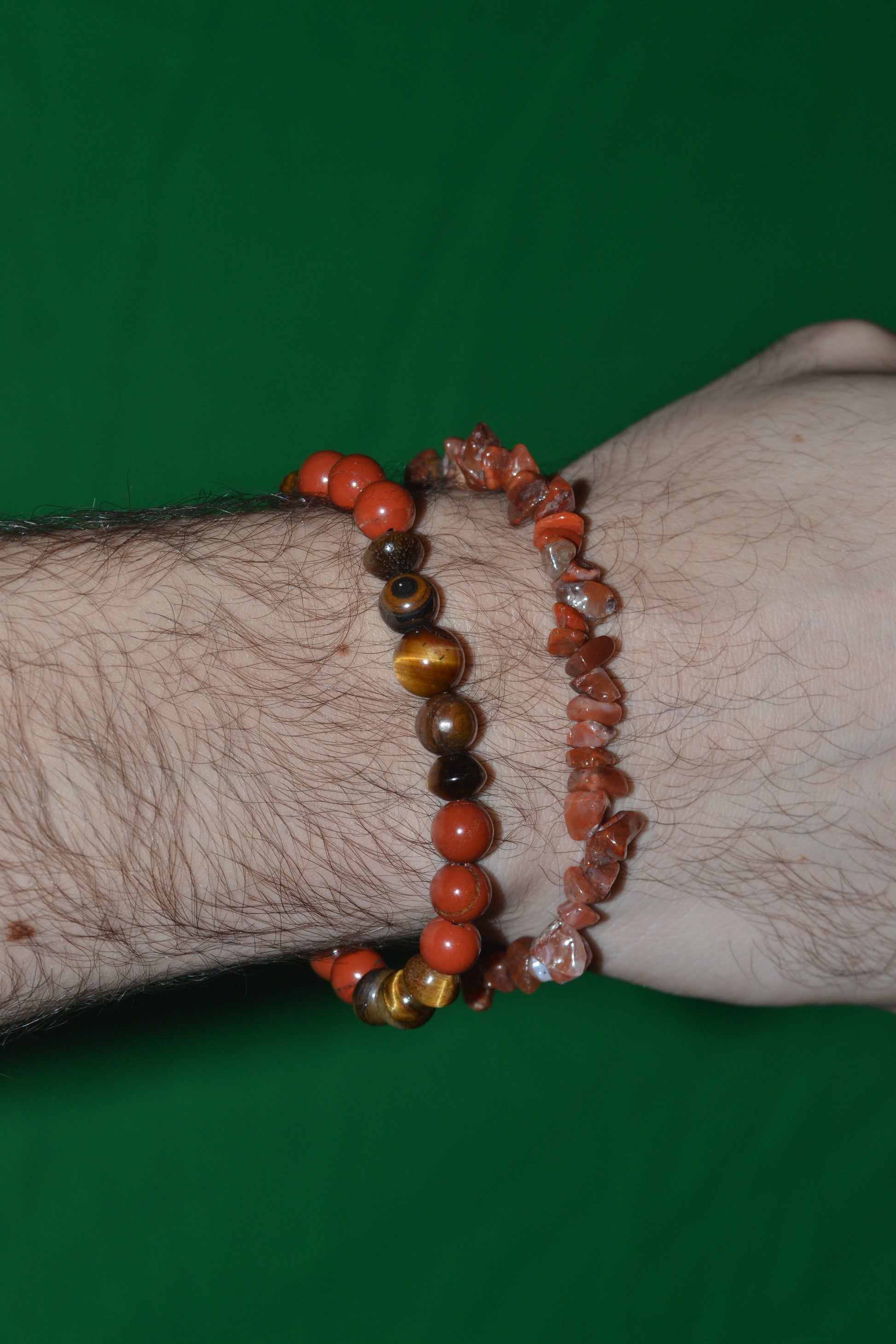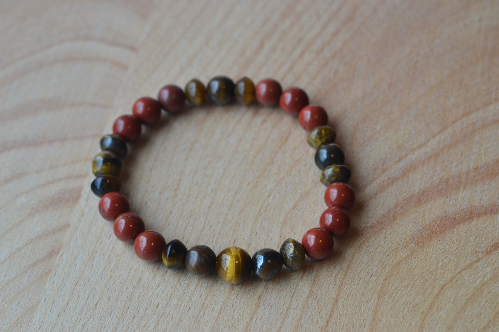🔥 Crafted with durable 6mm beads of red jasper and yellow tiger’s eye, this bracelet balances fiery vitality and solar plexus power.