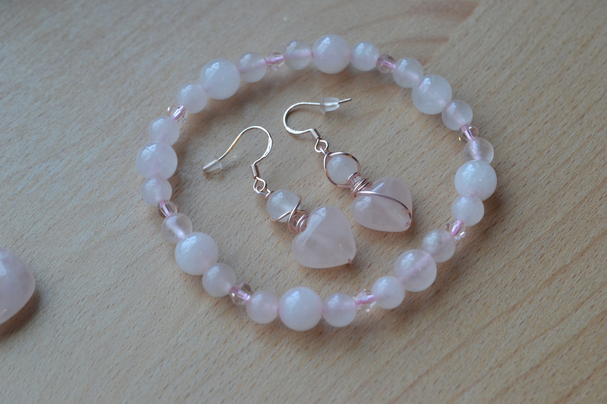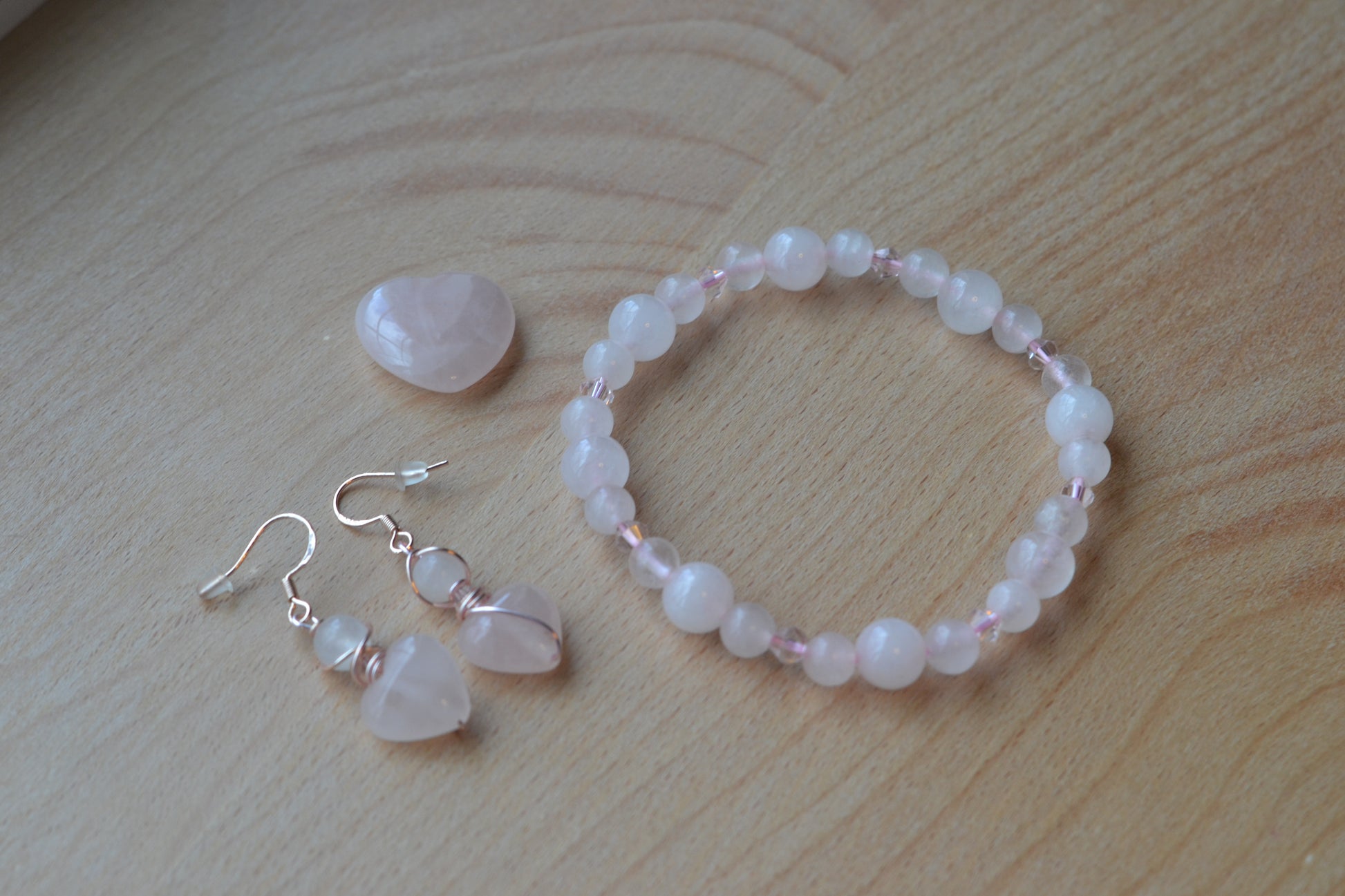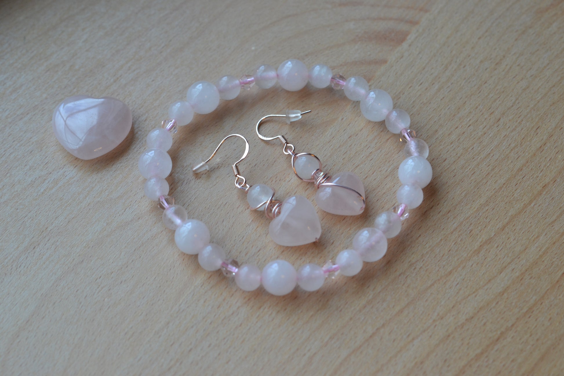 Rose Gold Rose Quartz Heart Earrings & Bracelet Set β Love & Sweetness