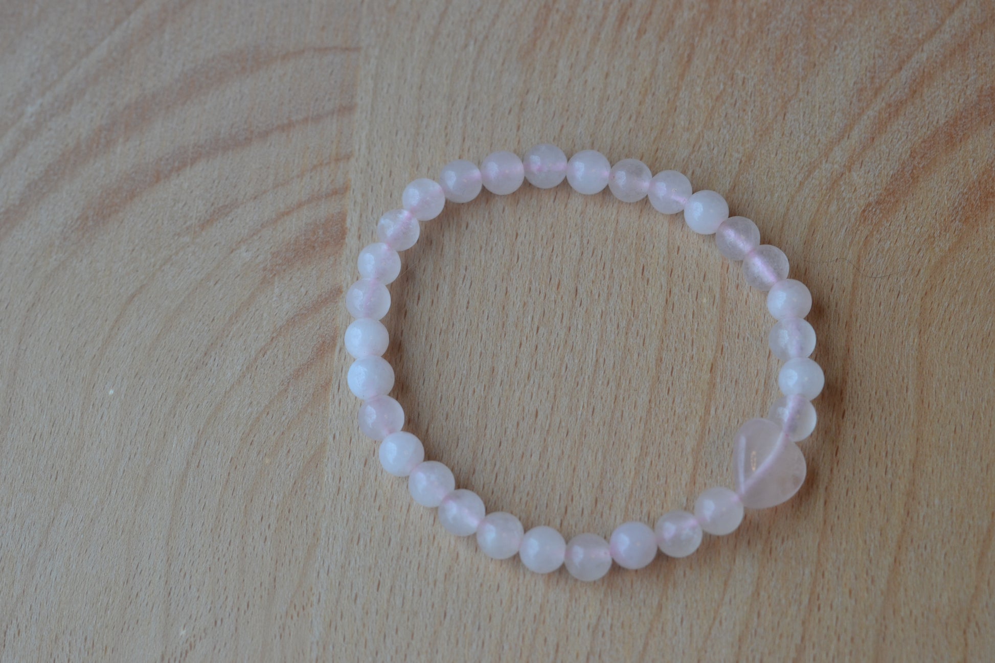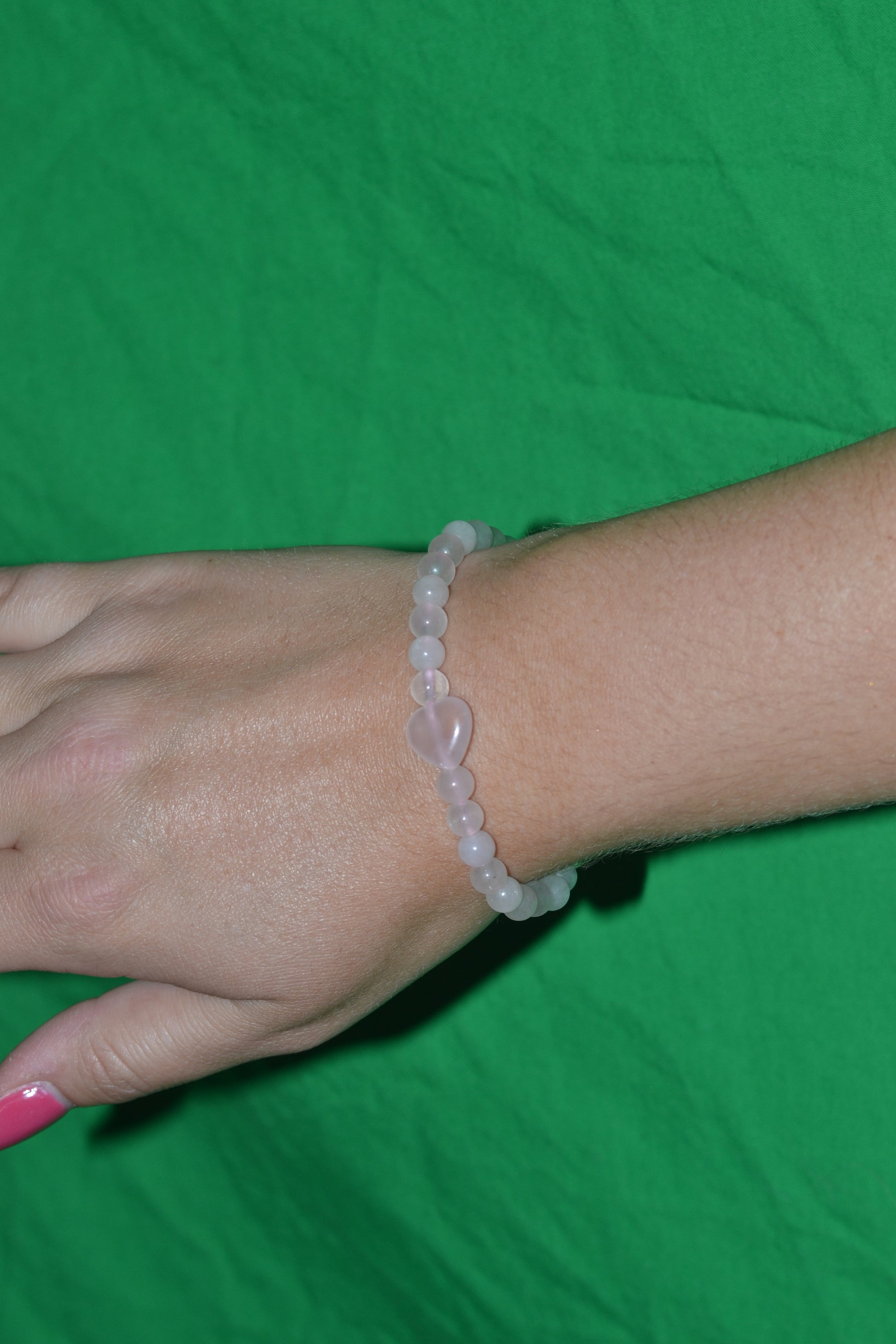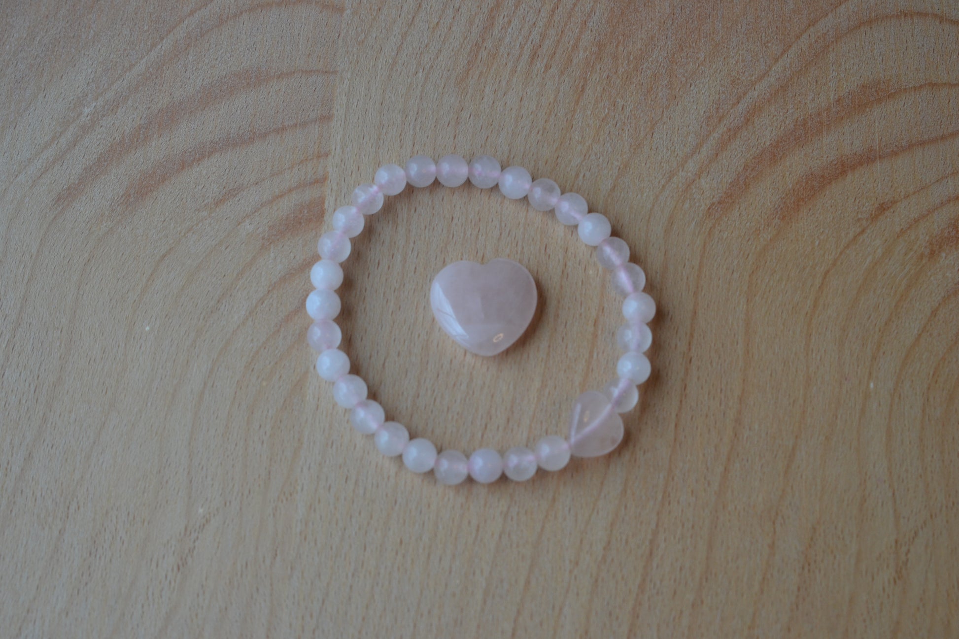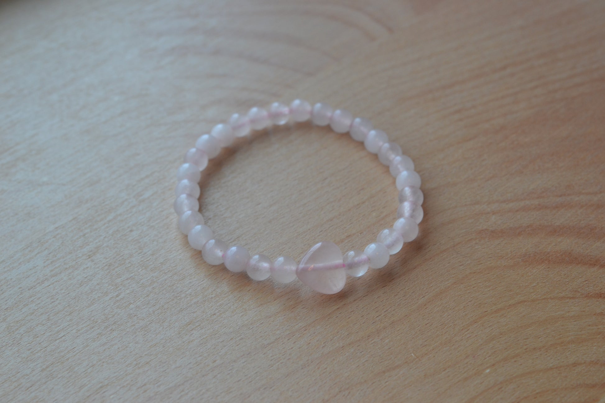 Materials: 4mm rose quartz beads + 1 x 8mm rose quartz center bead