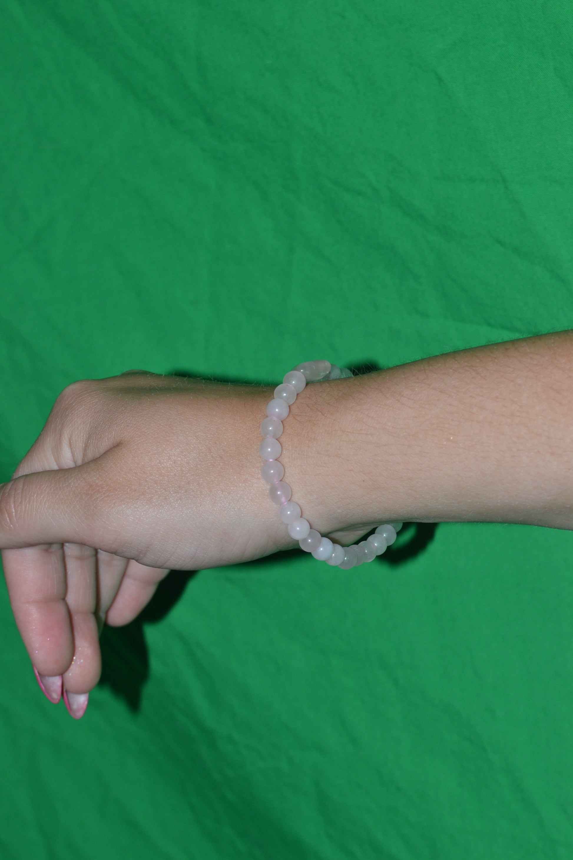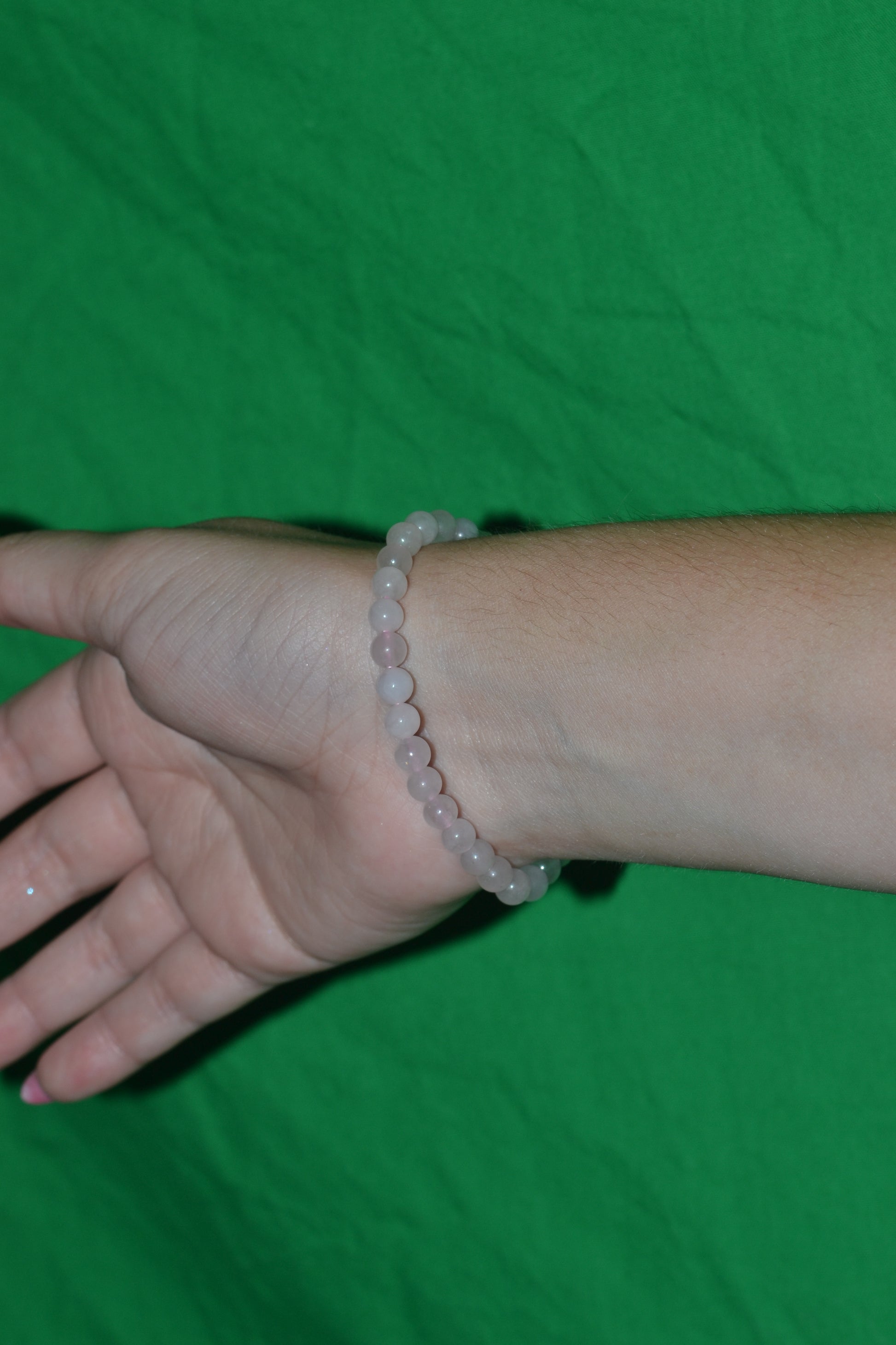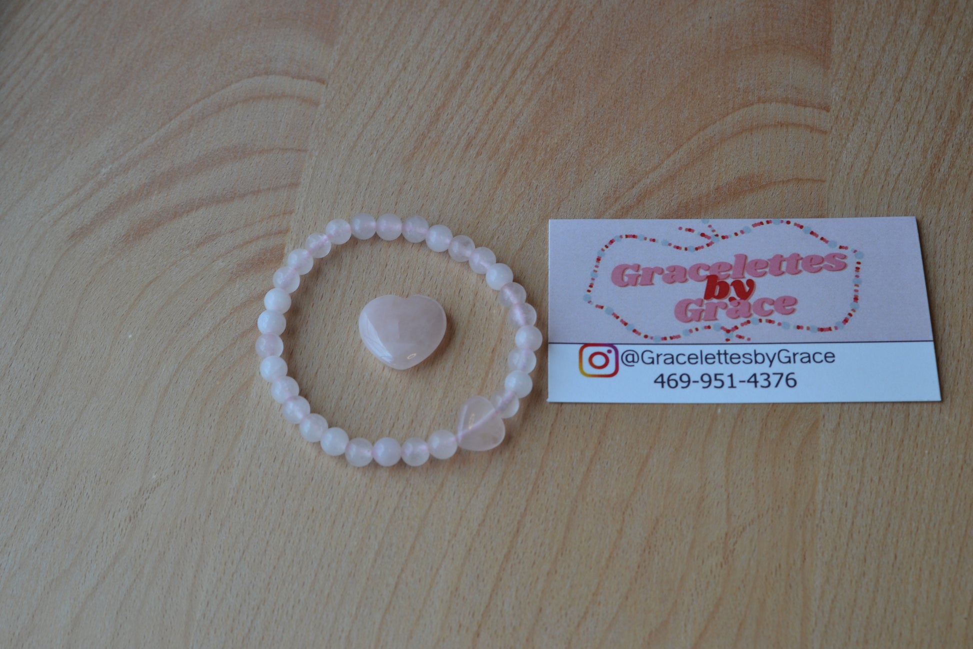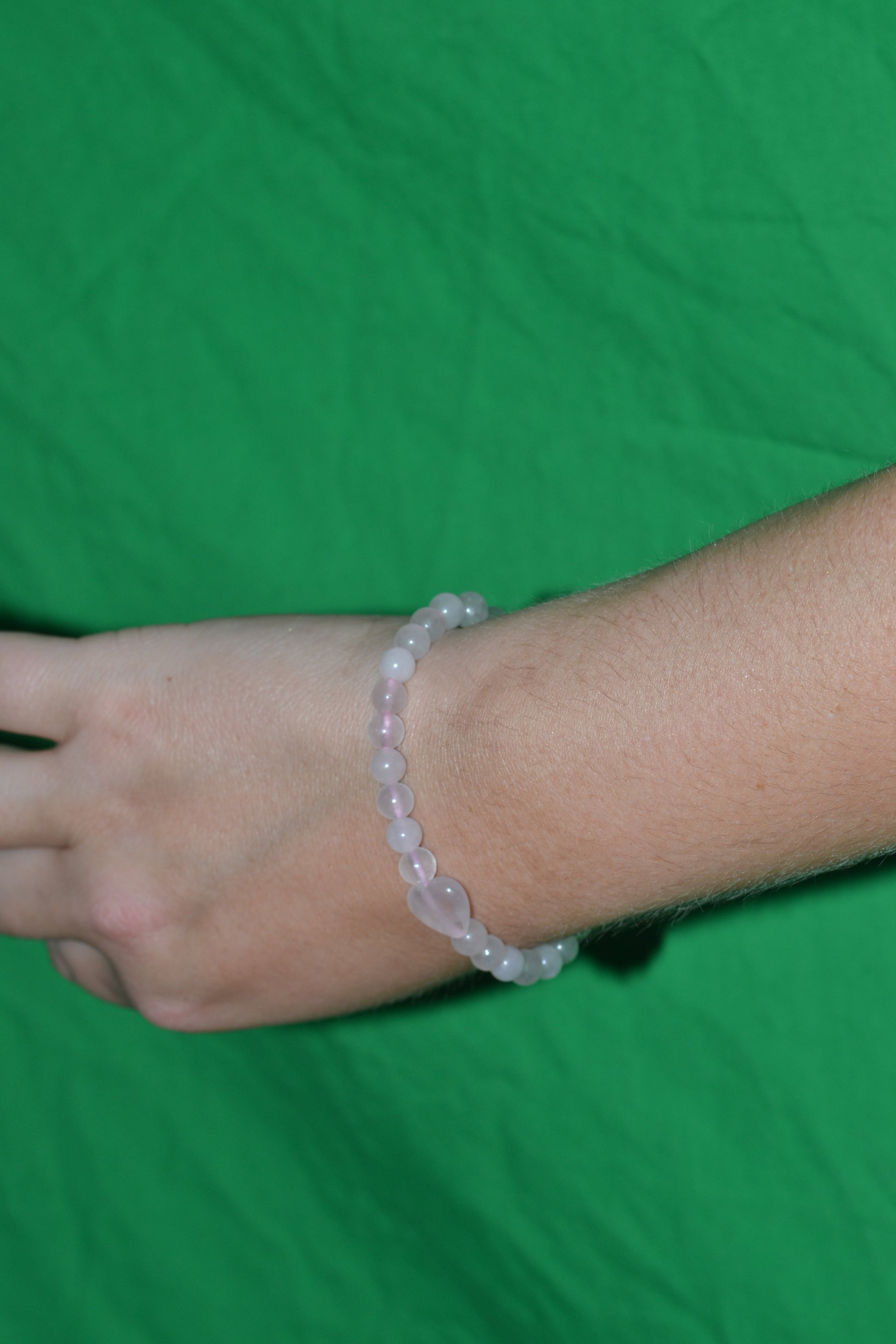 Materials: 4mm rose quartz beads + 1 x 8mm rose quartz center bead