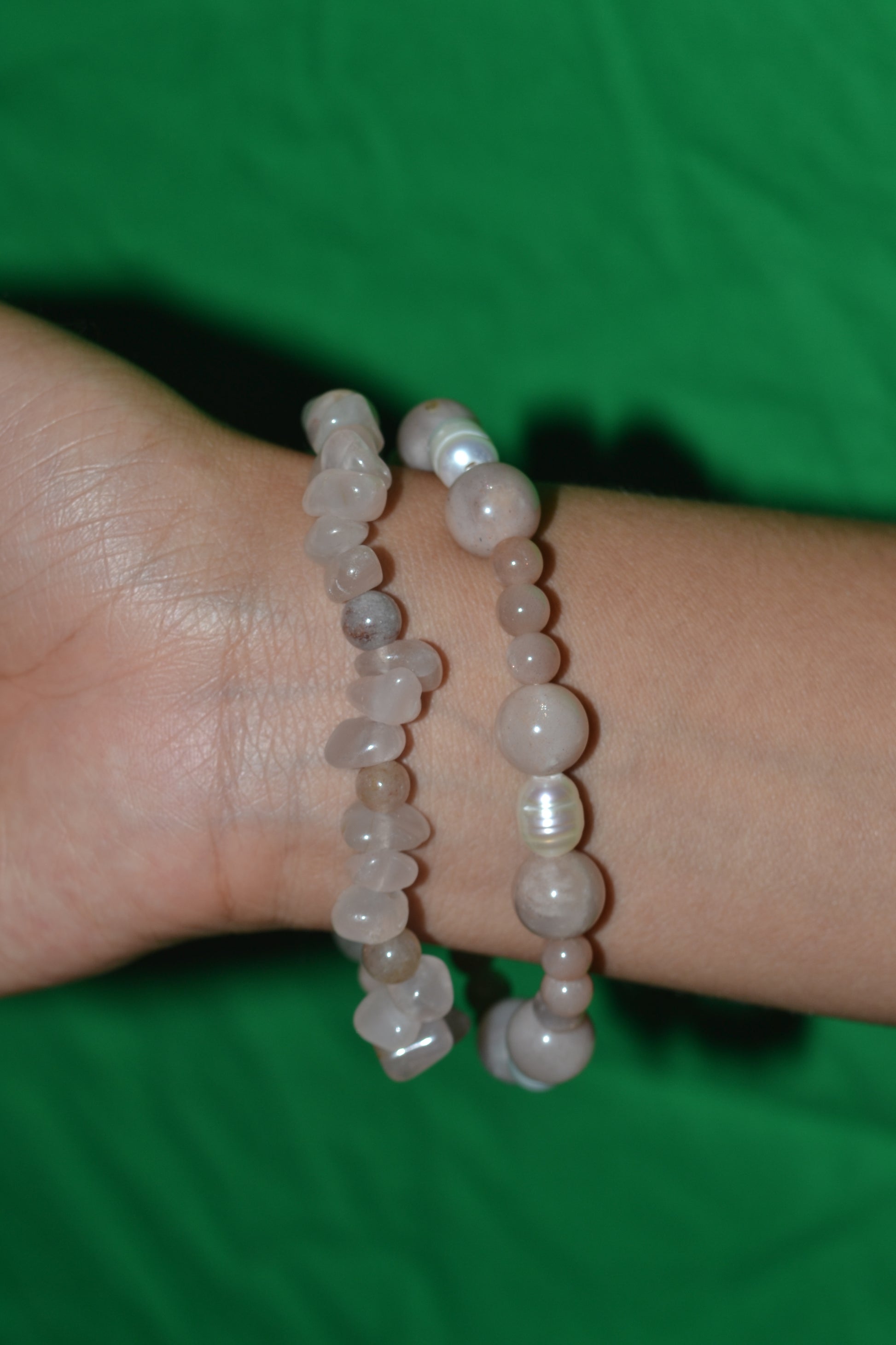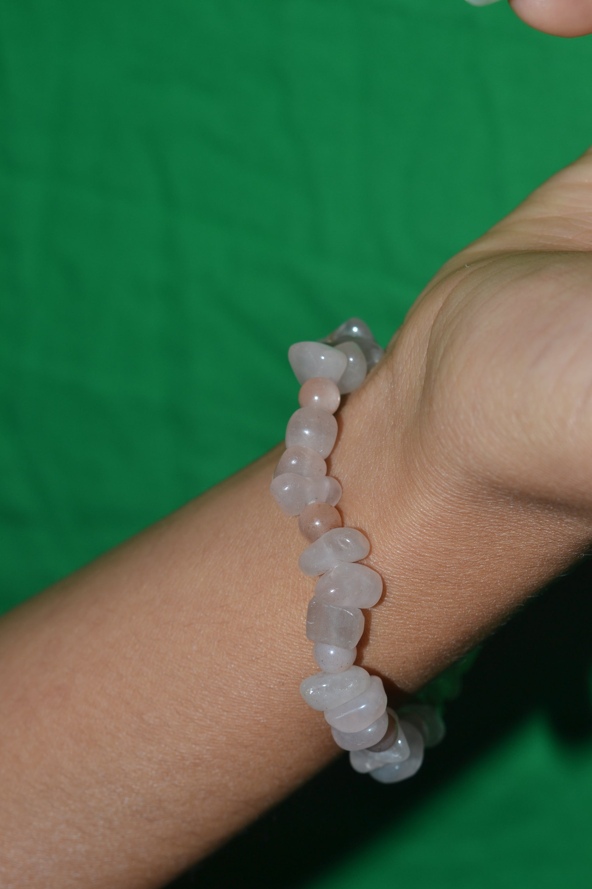 Materials: Rose quartz chip beads, 4mm sunstone beads, one 6mm sunstone focal bead